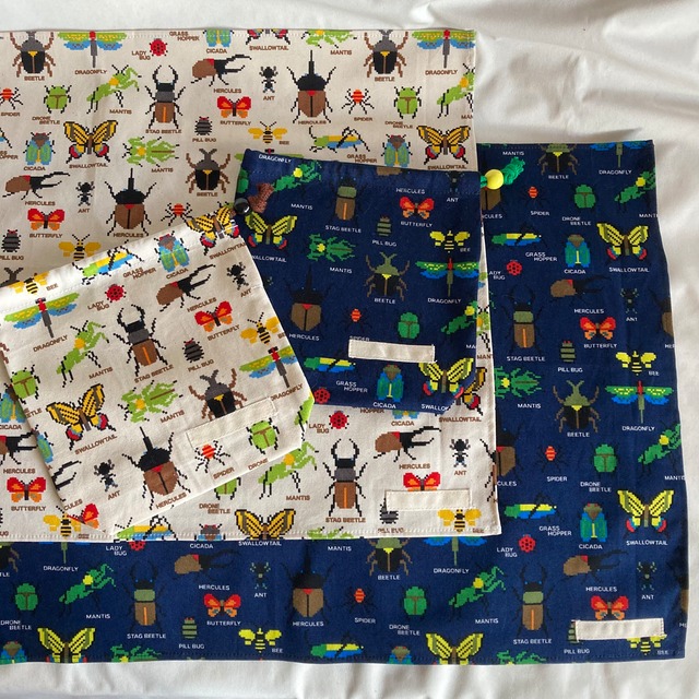 【オーダーOK】入園入学大きいランチョンマット(60×40㎝)給食袋コップ入れ巾着★ピクセルプログラミング昆虫カブトムシクワガタカマキリダンゴムシ★ナフキン弁当ランチクロス小学校机40×60㎝男の子