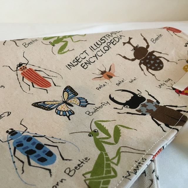 【床につかない!!】入園入学レッスンバッグ手提げ絵本袋リバーシブル57昆虫図鑑かぶと虫クワガタてんとう虫トンボ蝶クモハチマチキルティングポケット持ち手