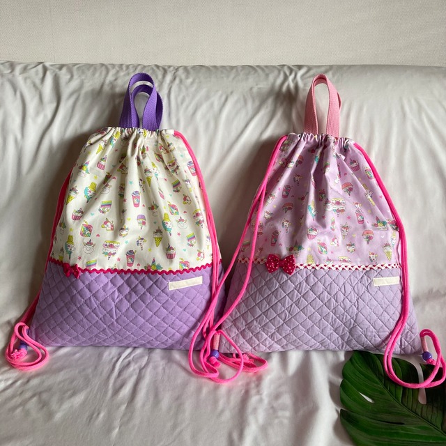 【半額セール】ランドセルの上から背負える!ナップサックナップザック持ち手つき巾着★アイスキャンディーソフトクリーム★入園入学キルティングマチ切り替えポケット小学校