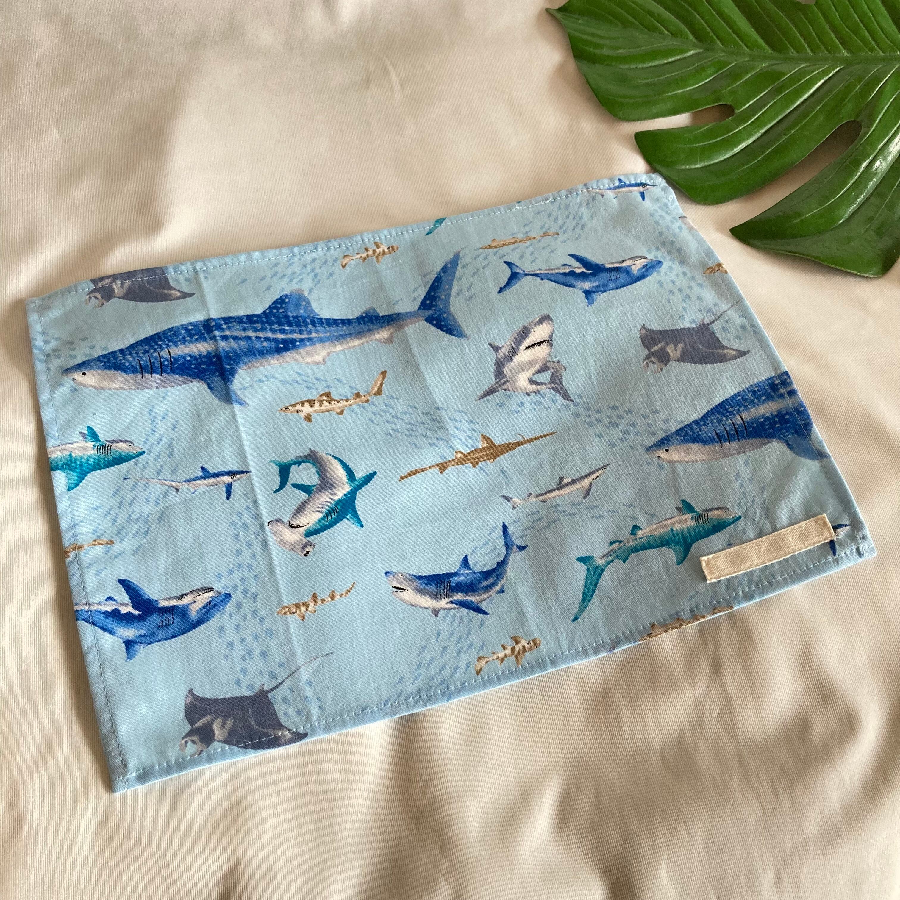 A4ランチョンマット3枚セット入園入学ランチクロスナフキン★さめサメいるかクジラ海の生き物水族館ブルー★縫い付けお名前幼稚園保育園幼児★ラッピングプレゼント誕生日