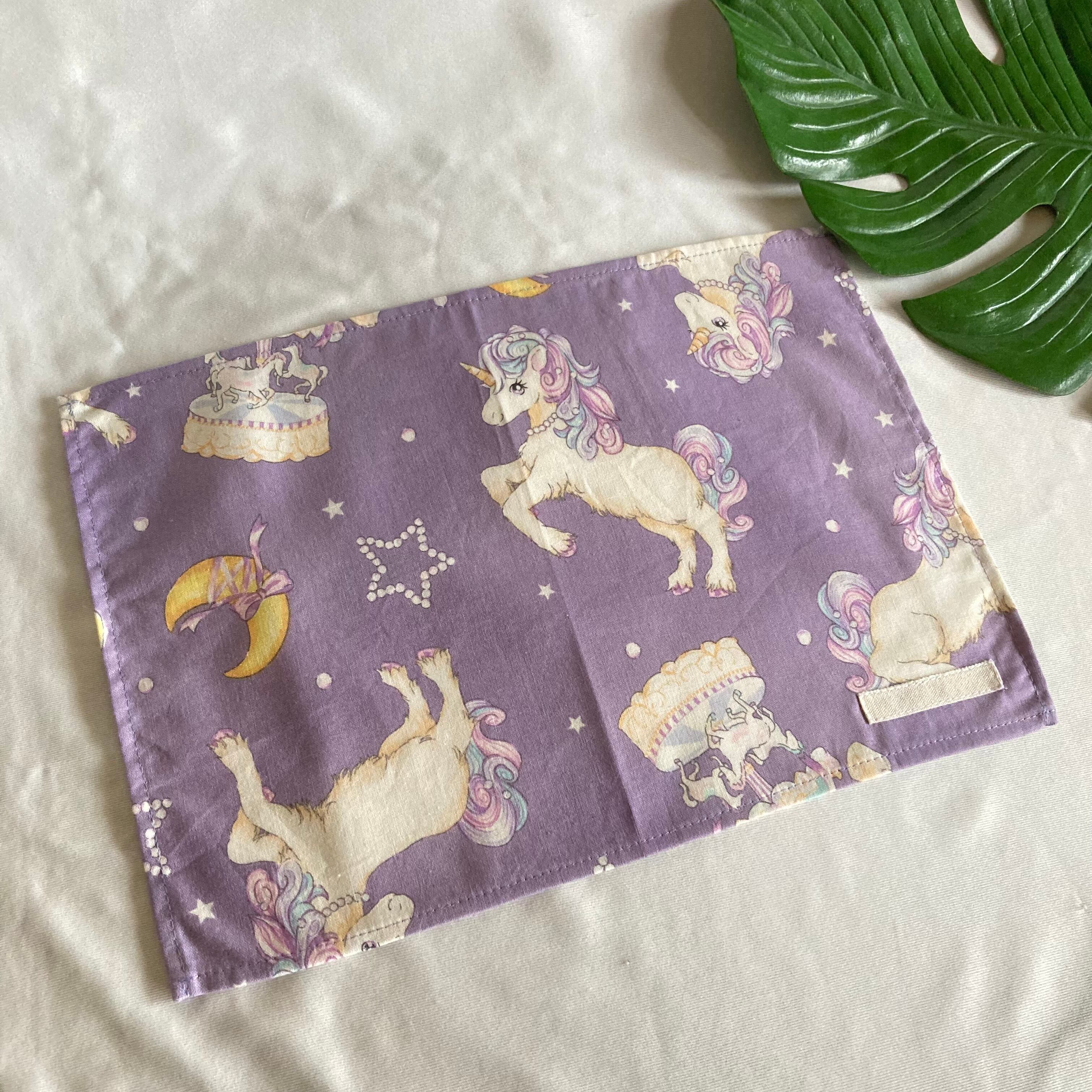 A4ランチョンマット3枚セット★ユニコーンくすみニュアンスパステル女の子リボンレース★入園入学ランチクロスナフキン★縫い付けお名前幼稚園保育園幼児★ラッピングプレゼント誕生日