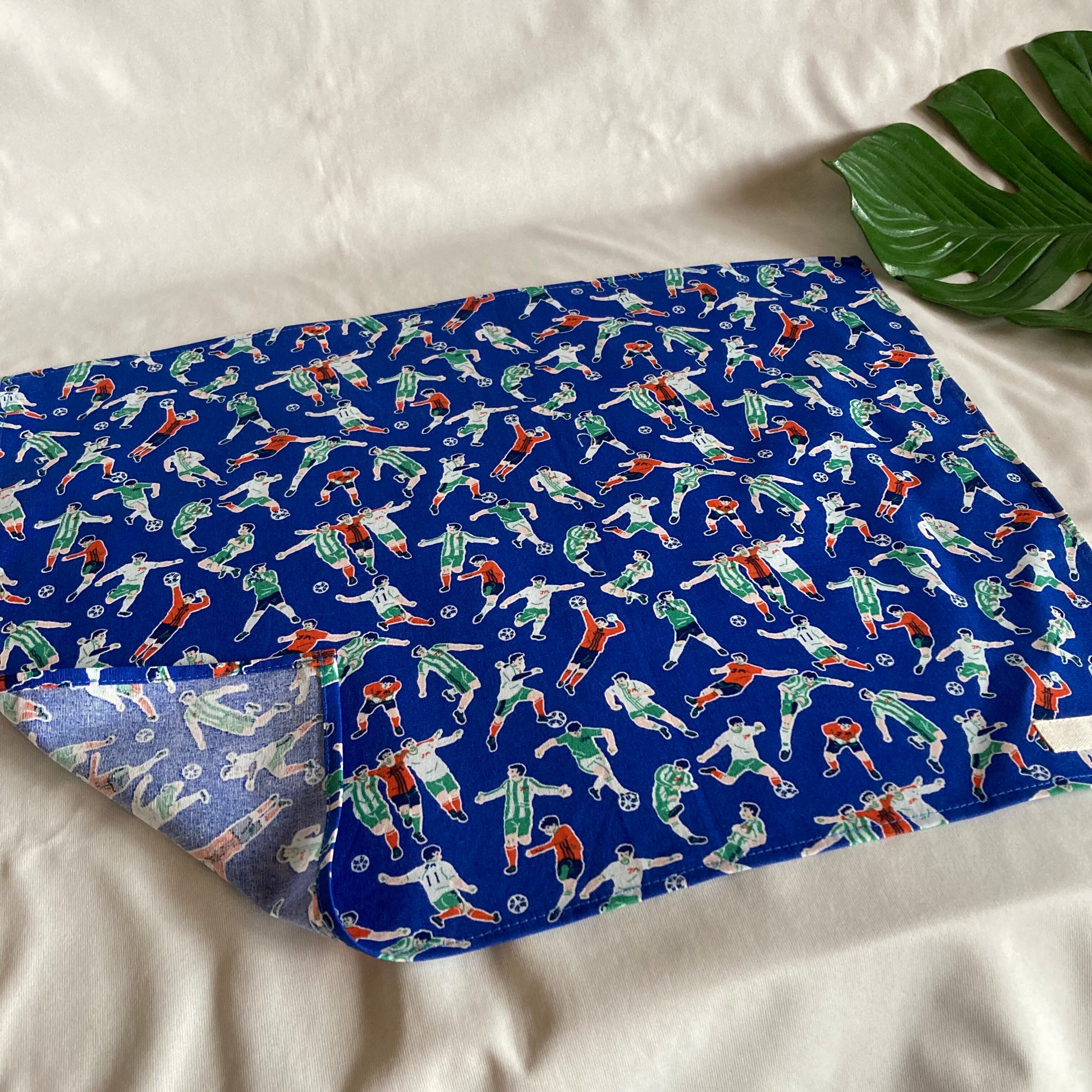 ランチョンマット×2枚セット(35×45㎝)★サッカーボールスポーツ試合スタジアム★給食ナフキンお弁当ランチクロス入園入学★縫い付けお名前小学校45×35㎝★ラッピングプレゼント誕生日くすみニュアンス