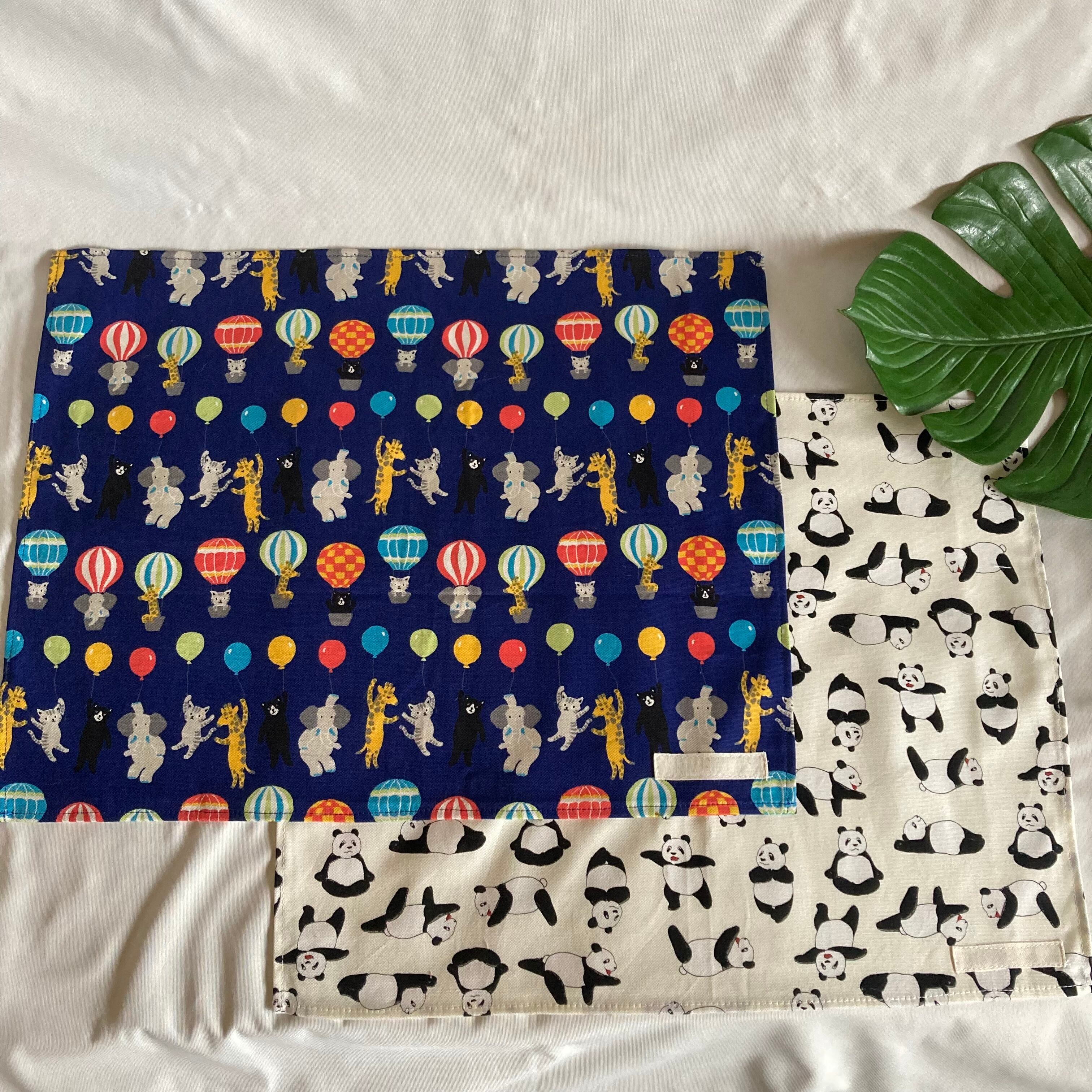 ランチョンマット×2枚セット(35×45㎝)★動物バルーン風船ぱんだパンダ★給食ナフキンお弁当ランチクロス入園入学★縫い付けお名前小学校45×35㎝★ラッピング誕生日くすみニュアンス