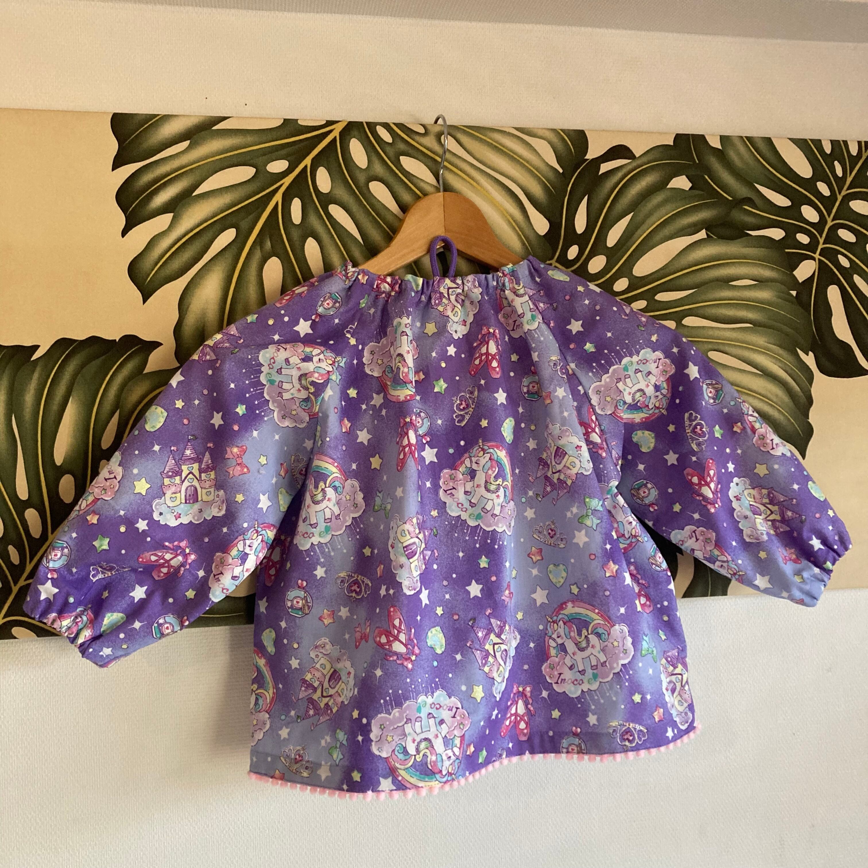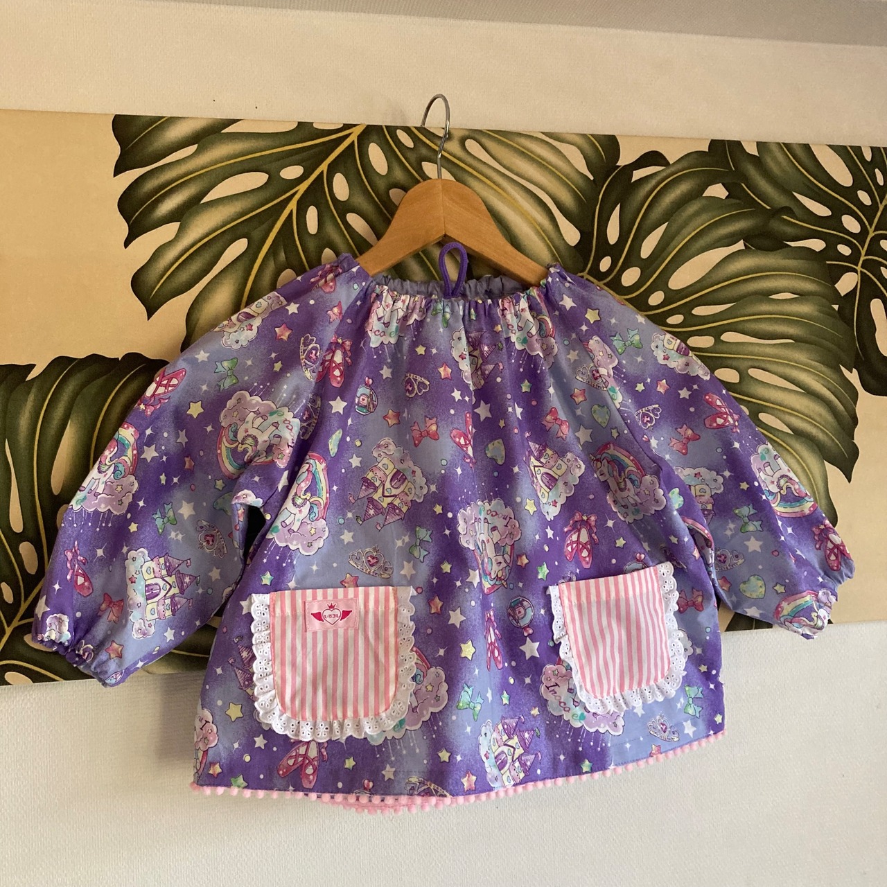 【オーダーOK】★長袖スモック100㎝★お城のユニコーンいろコレ★入園入学幼稚園保育園小学校遊び着食事書道絵具ポケット★北欧くすみニュアンスパステル