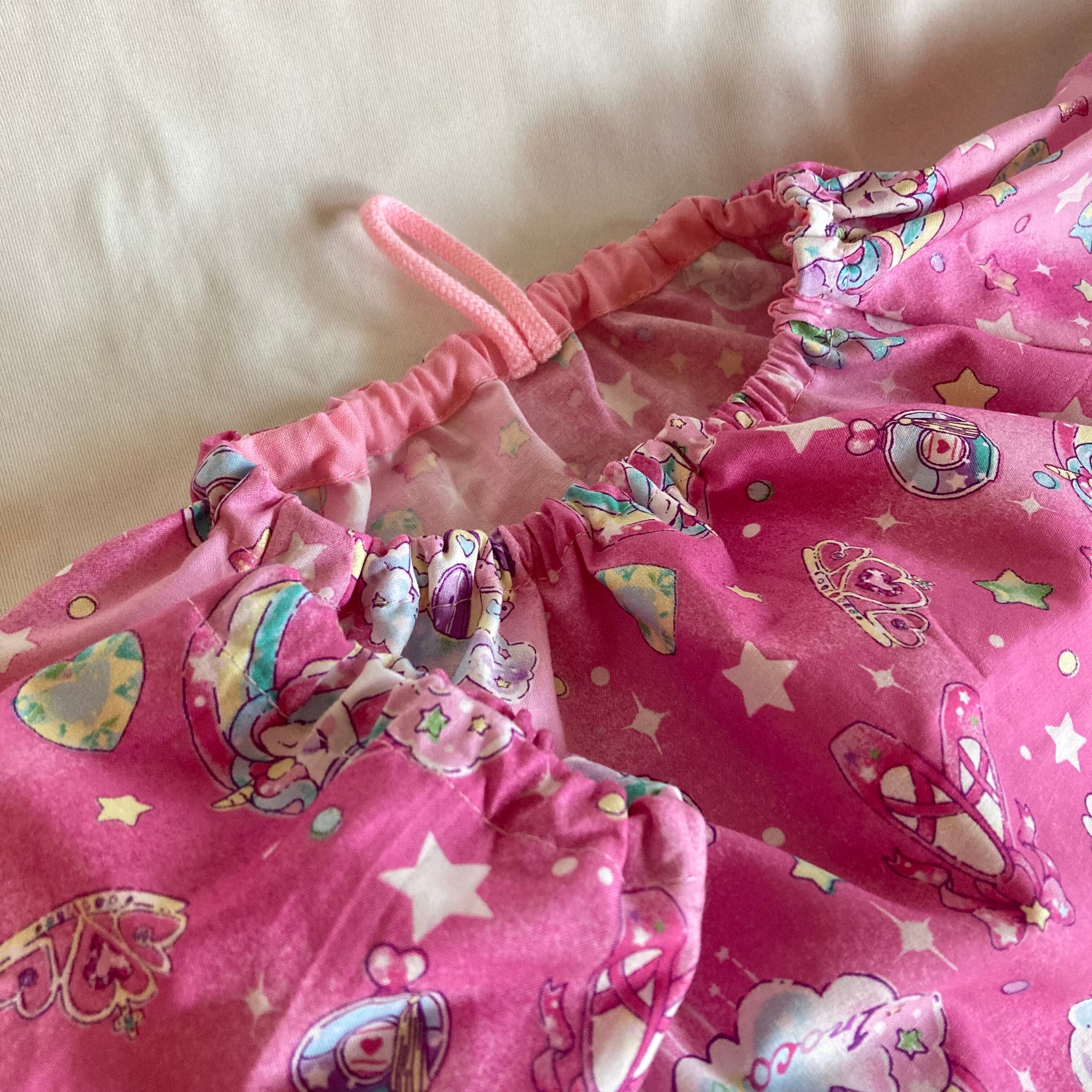 同じ生地で両方から紐を引く巾着もオーダー可能です