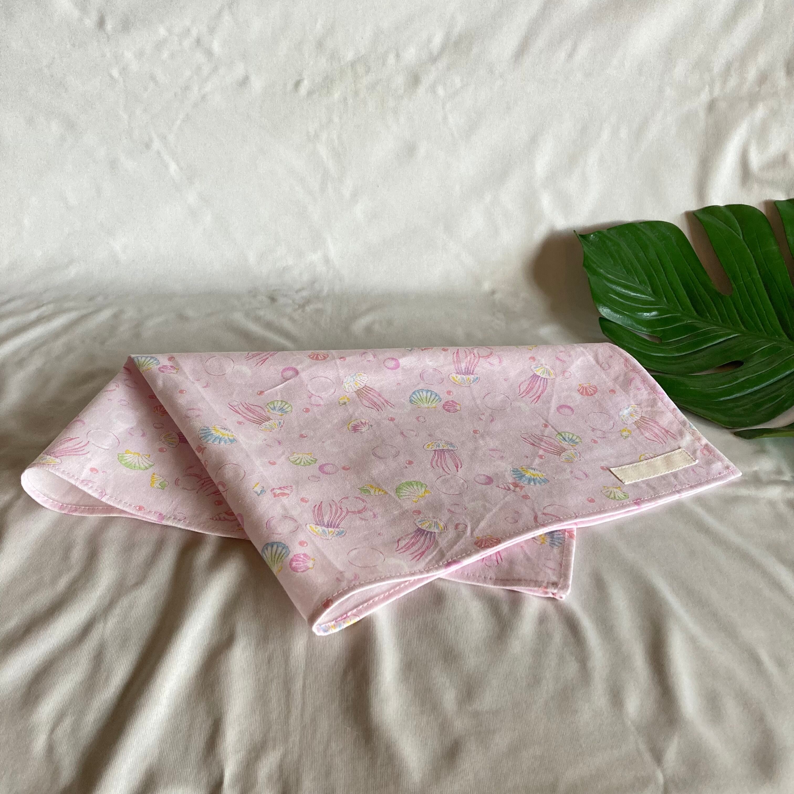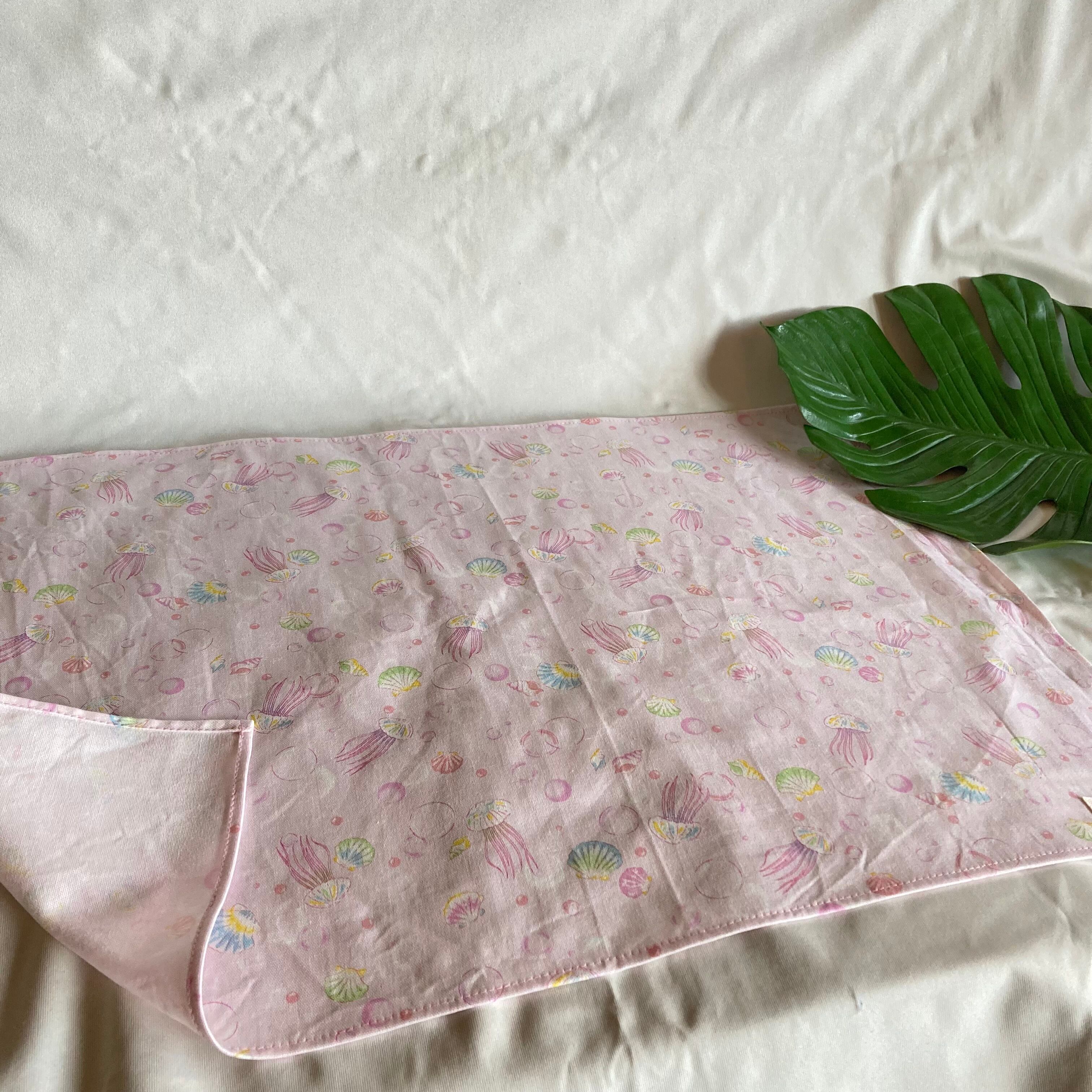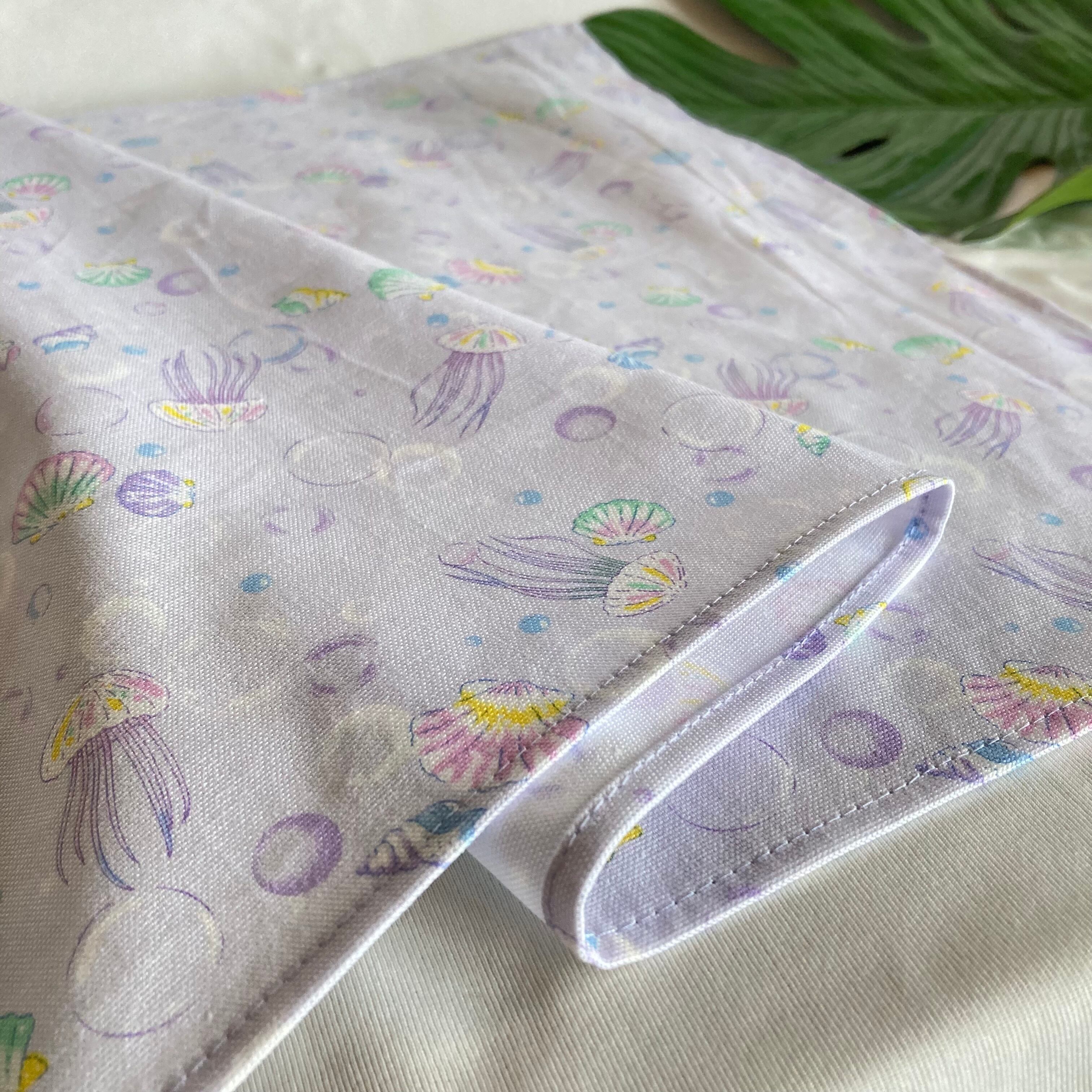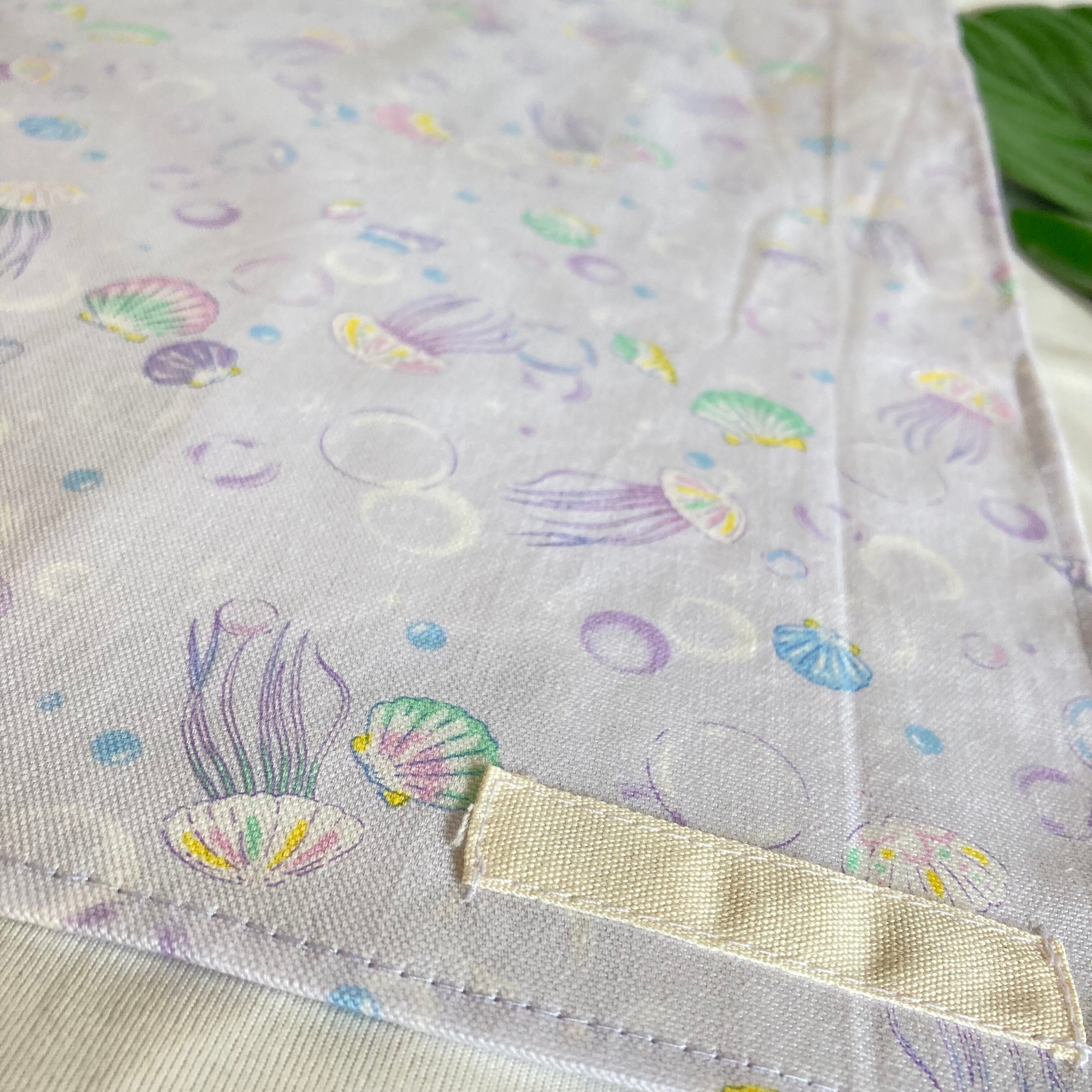 【オーダーOK】入園入学大きいランチョンマット60×40★ジェリーフィッシュくらげ貝★給食ナフキンお弁当小学校縫い付けお名前机40×60海の生き物水族館くすみニュアンスパステル女の子リボンレース