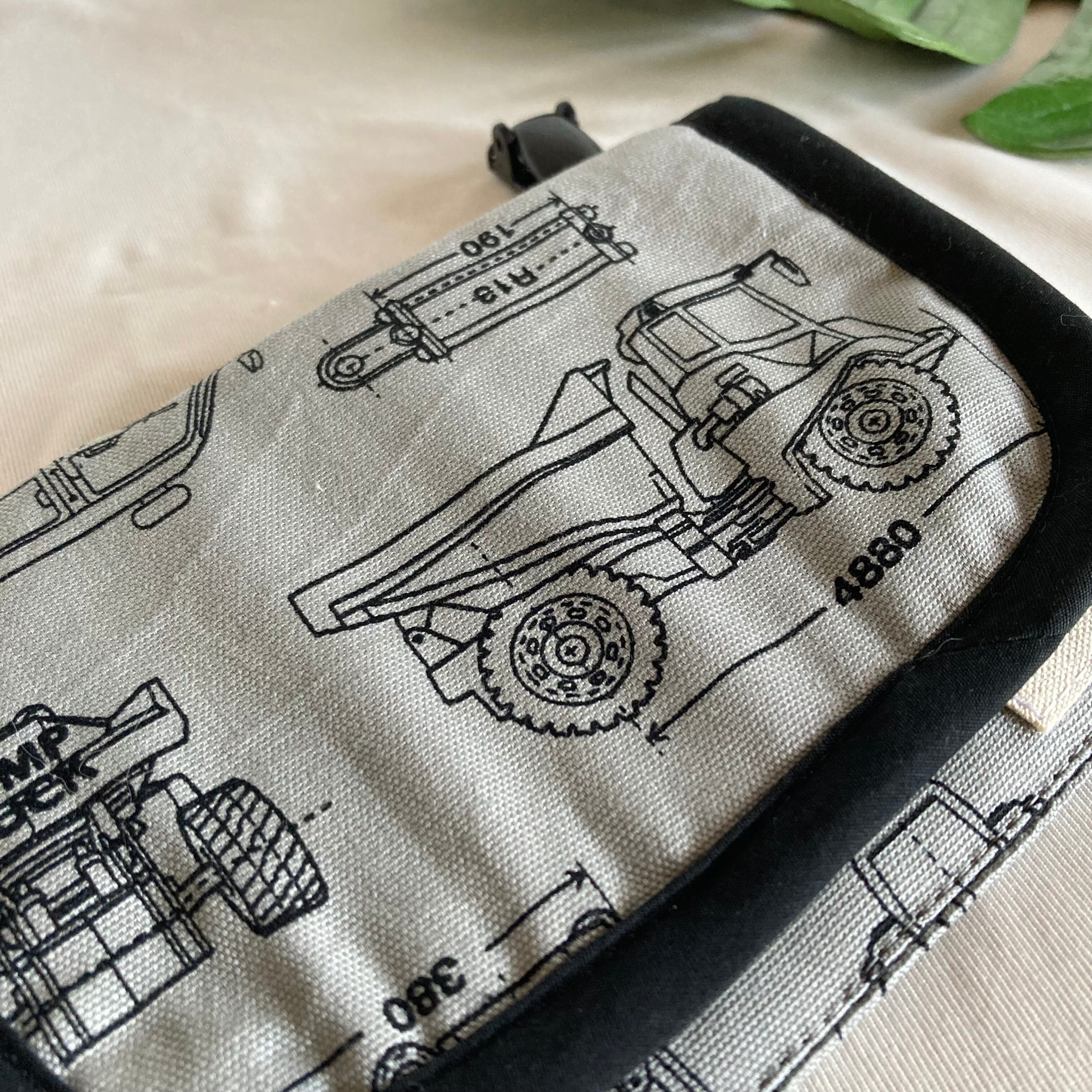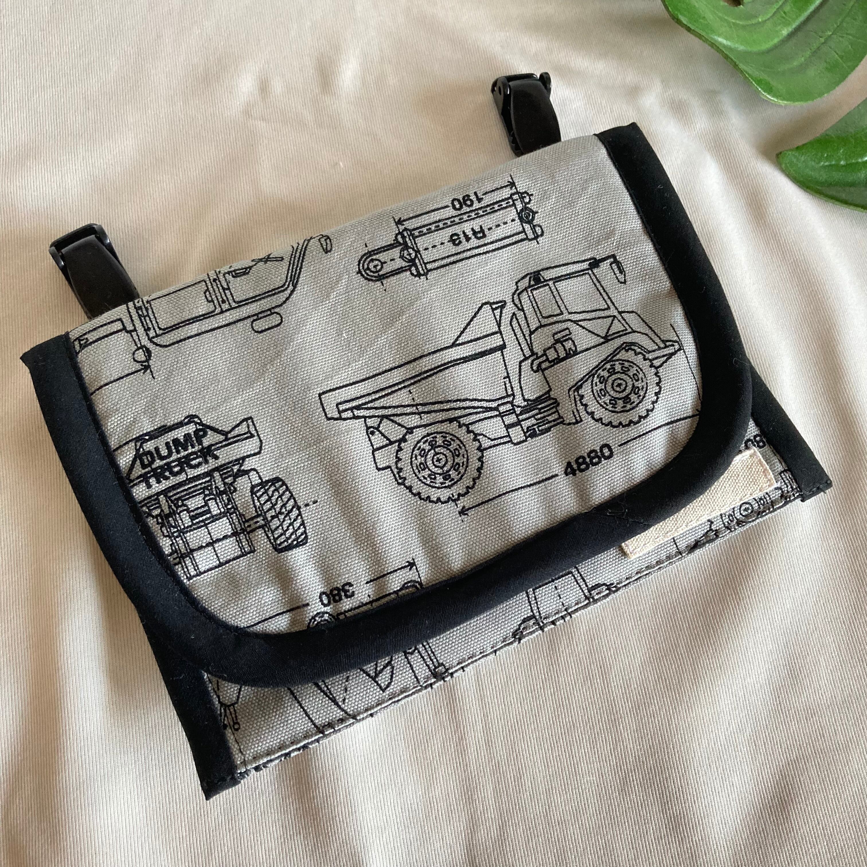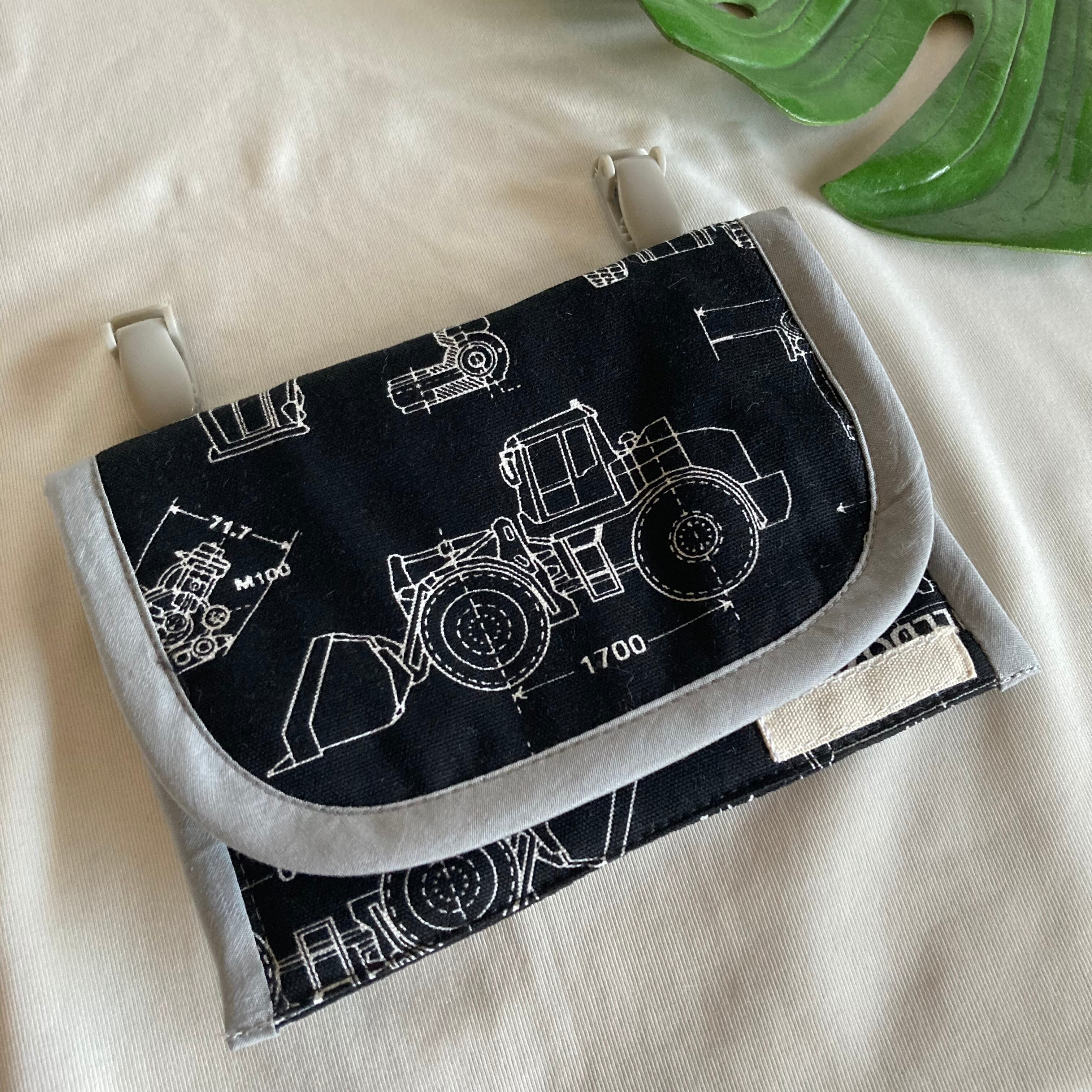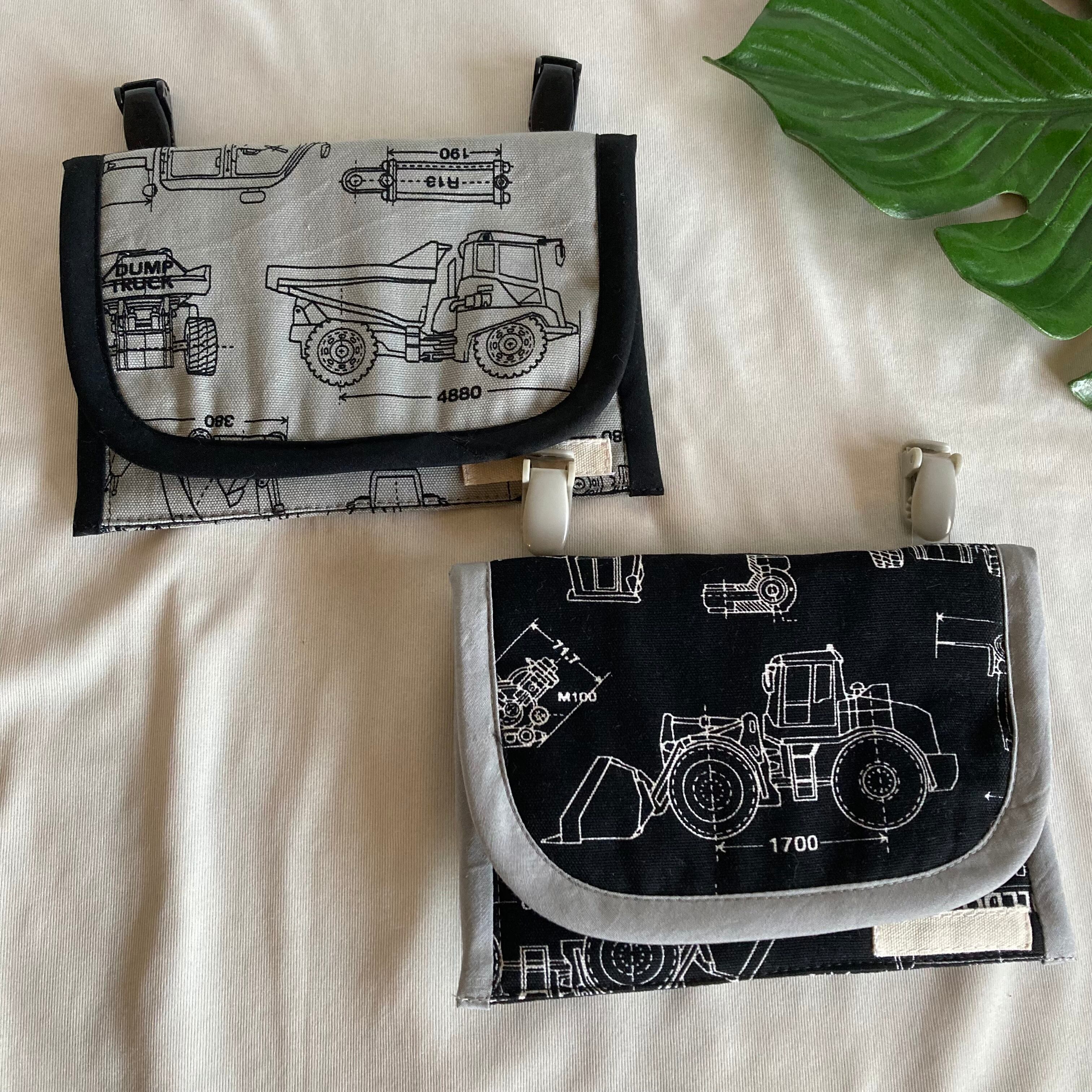 【オーダーOK】裏キルティング移動ポケット★働く車設計図工事車両ヘルメット安全第一★マスクケース入園入学ハンカチティッシュマルチポケットミキサー車ダンプカーお出かけポーチ★縫い付けお名前小学校
