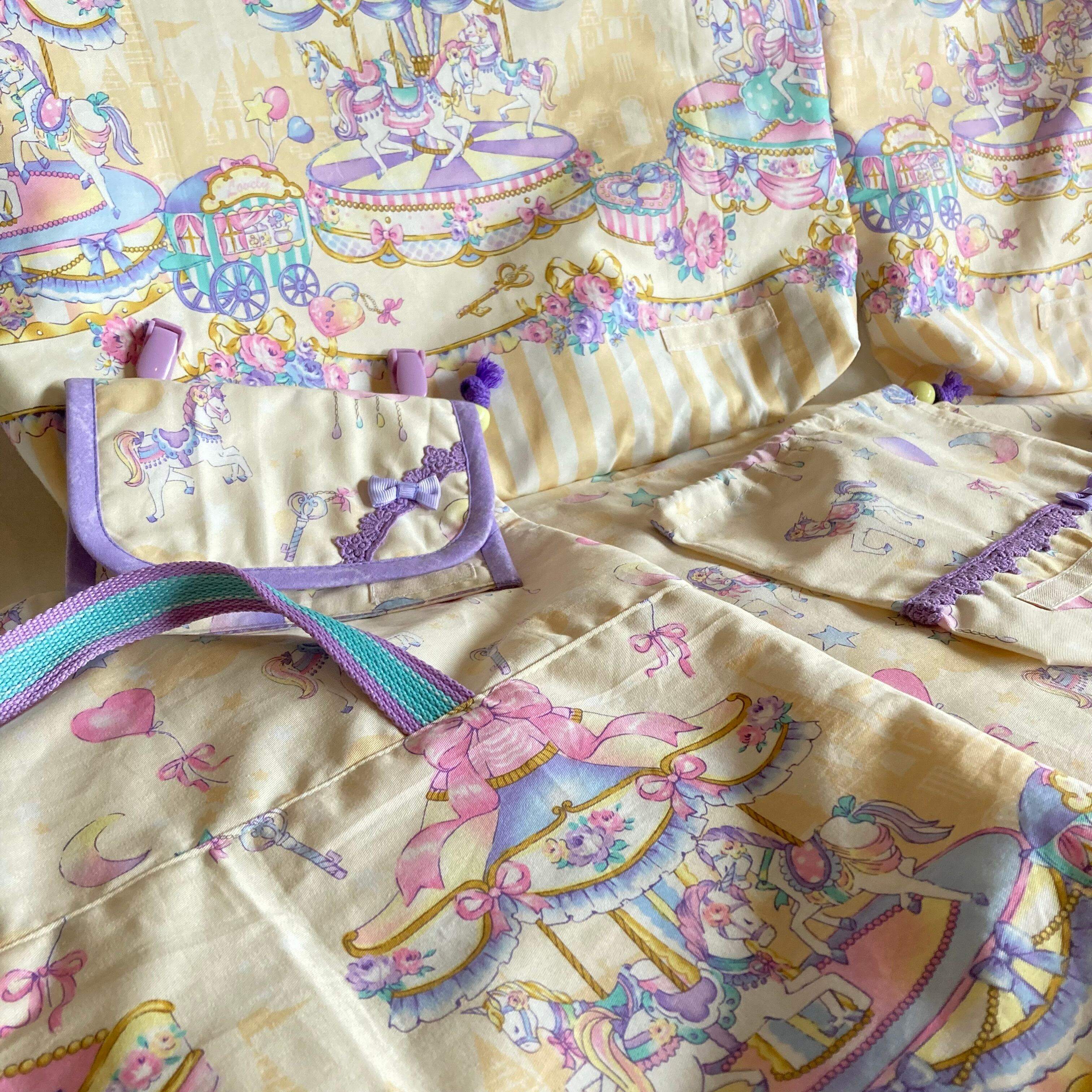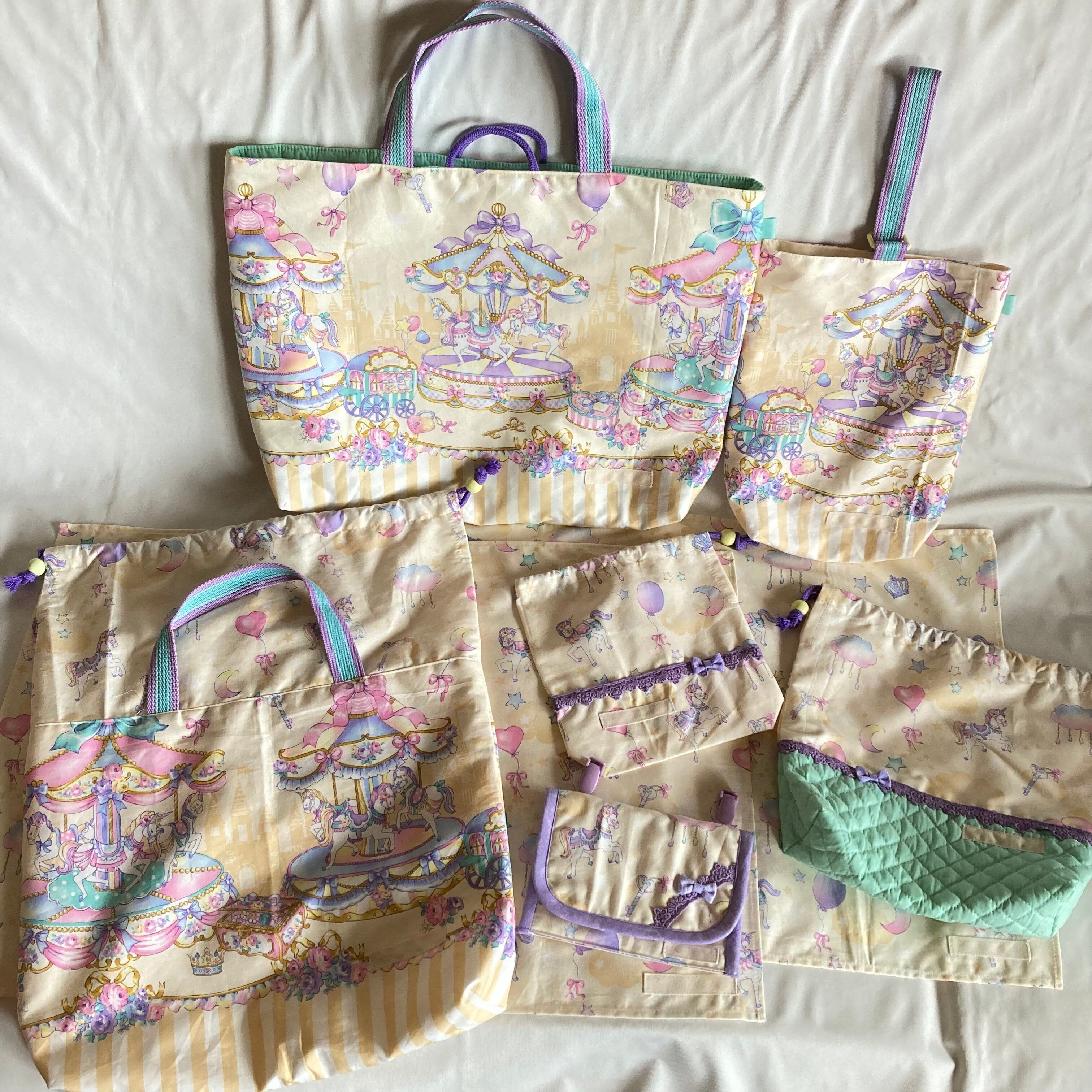 【オーダーOK】入園入学セット16原宿ドールズファンタジーユニコーンくすみニュアンスY★手提げレッスンバッグ絵本袋シューズケースコップ入れ上履き給食お着替え巾着ランチョンマット移動ポケット