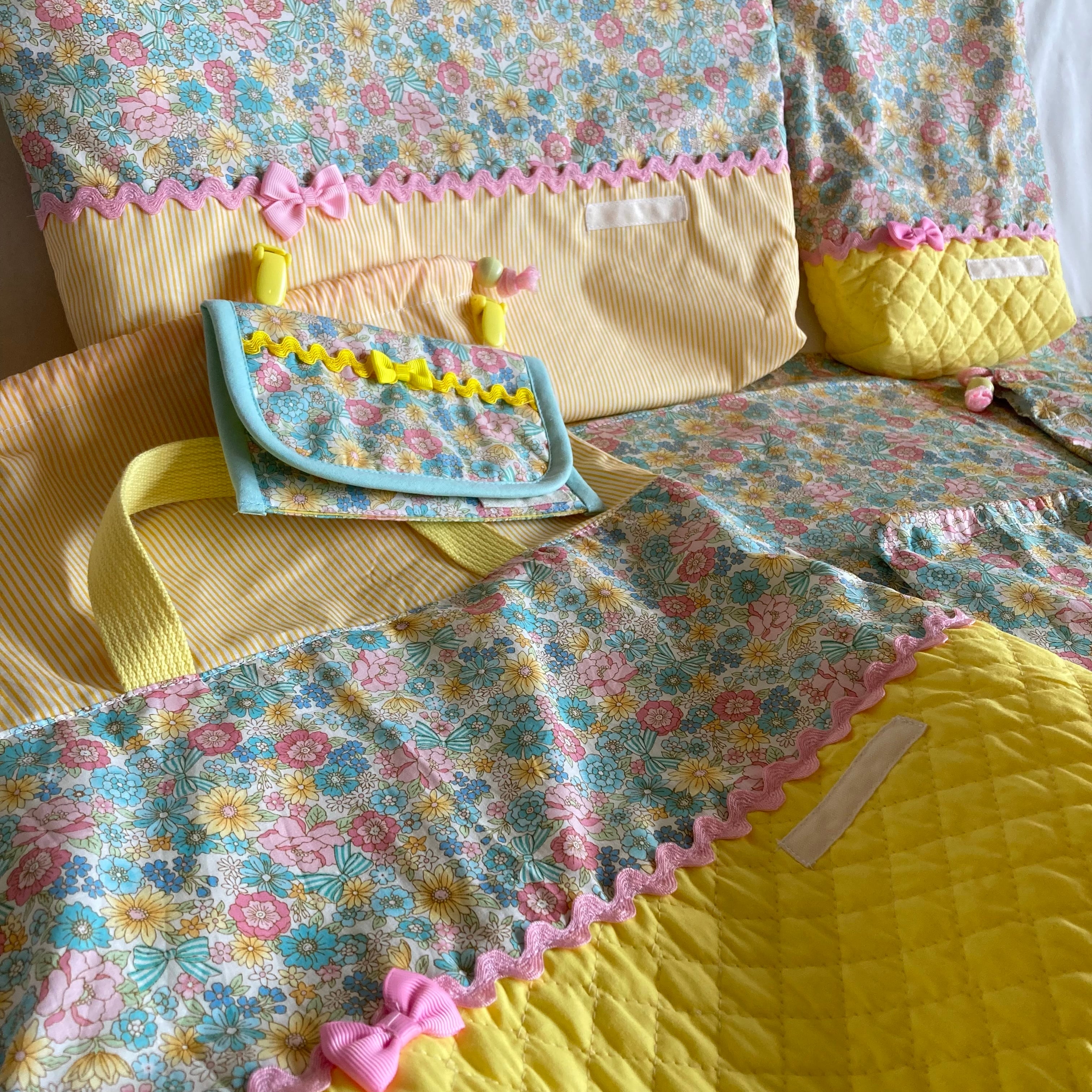 【素材】お花とリボンPTミント系、ストライプイエロー、キルティングイエロー、ブレード・リボンで飾りました★