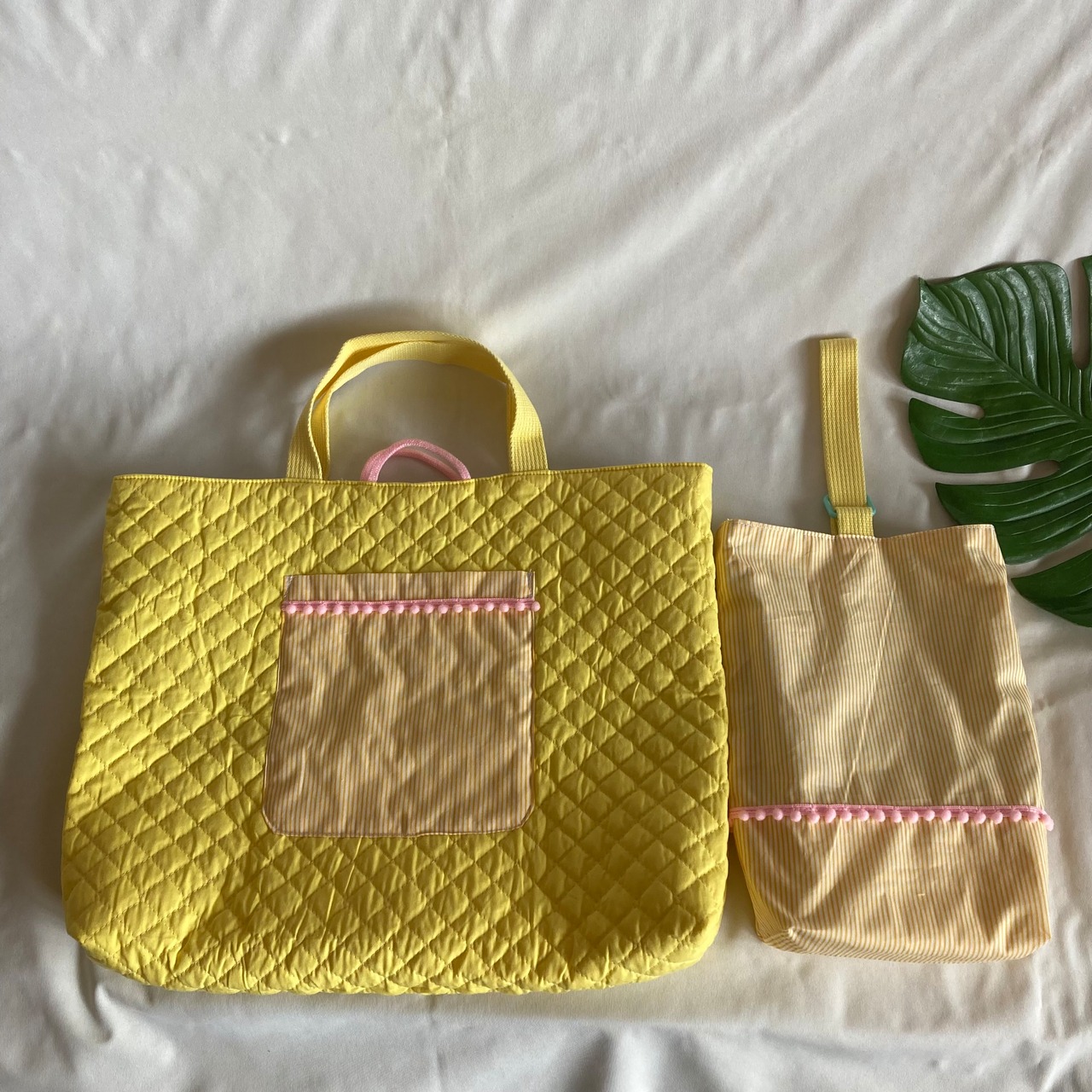 シンプルなキルティング側には、大きめのポケット(16cm×16cm)がついているので、便利★