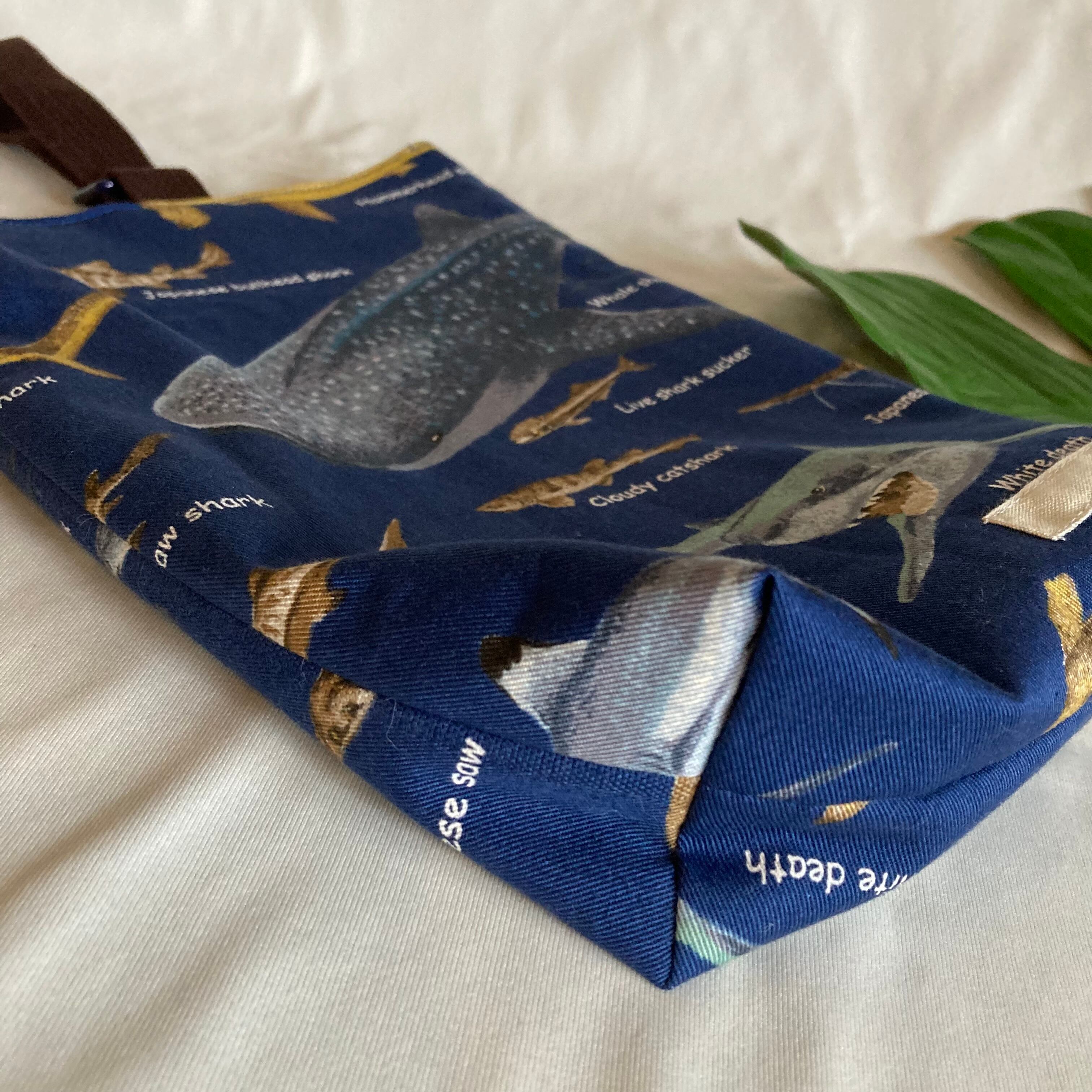 【オーダーOK】入園入学シューズケース上履き袋リバーシブル上靴★迫力のジンベイザメホホジロザメさめ海の生き物水族館★縫い付けお名前小学校マチ★ラッピングプレゼント誕生日クリスマスDカン持ち手