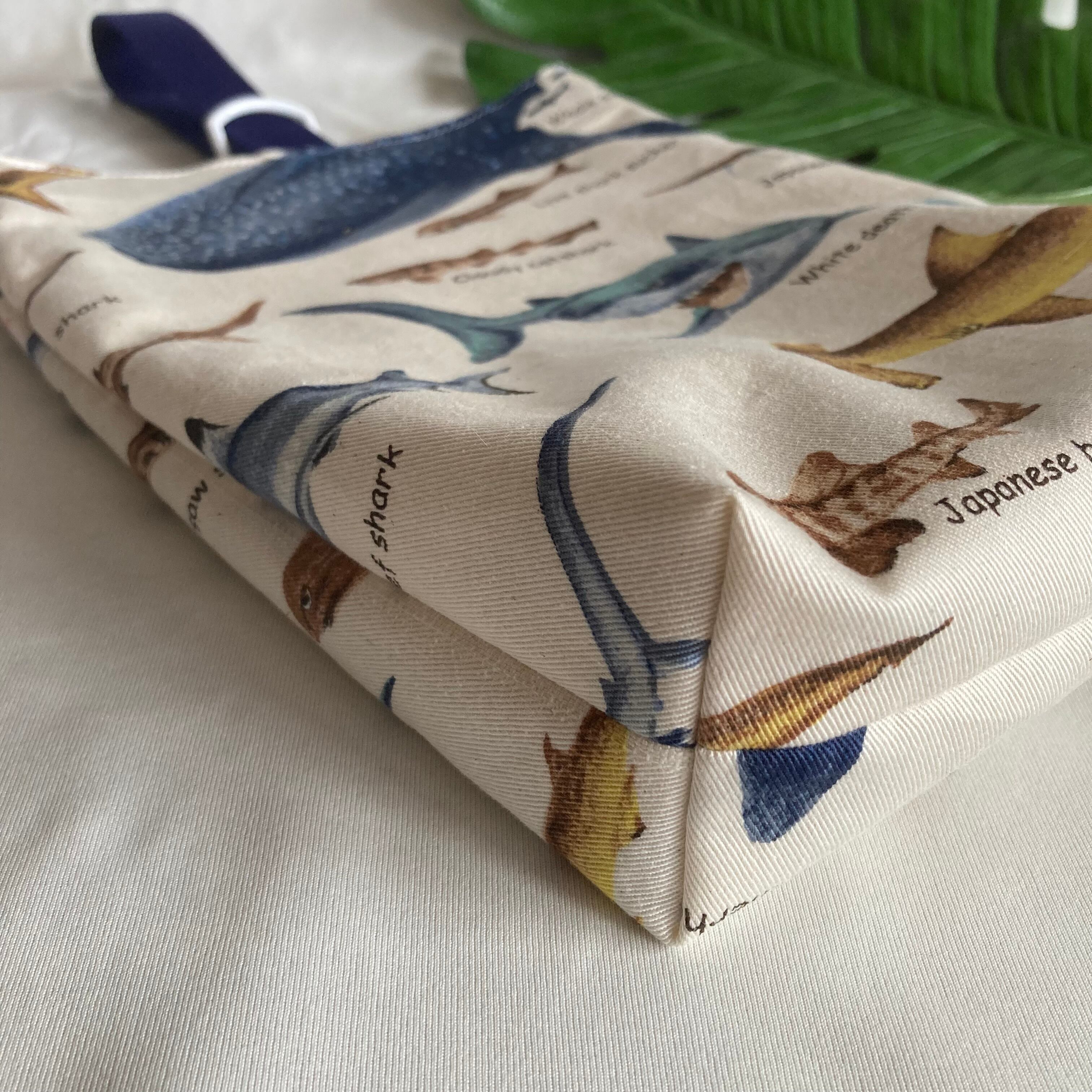 【オーダーOK】入園入学シューズケース上履き袋リバーシブル上靴★ジンベイザメホホジロザメさめ海の生き物水族館★縫い付けお名前小学校マチ★ラッピングプレゼント誕生日クリスマスDカン持ち手