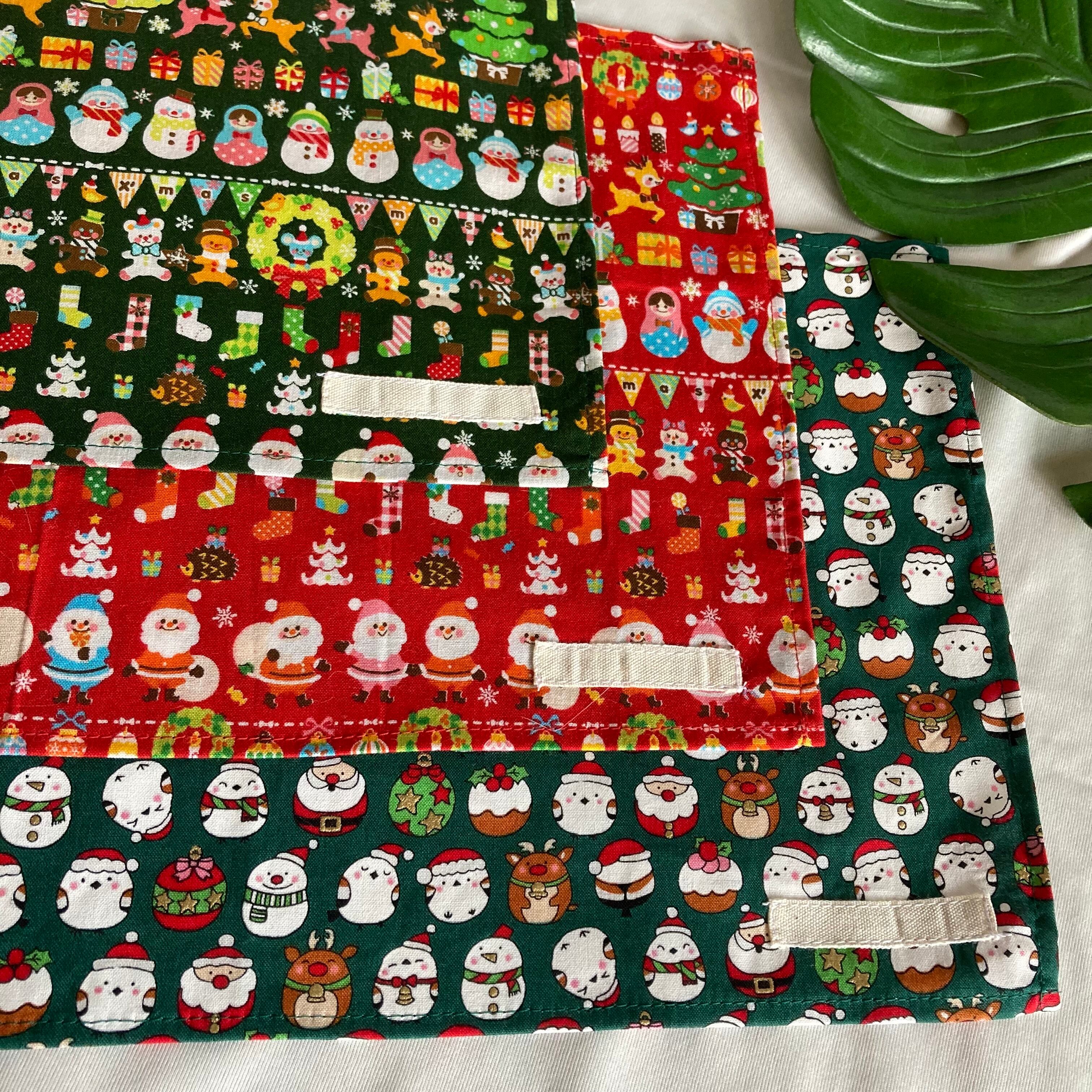 A4ランチョンマット3枚セット入園入学ランチクロスナフキン★クリスマスサンタMerryChristmas☆彡E雪だるまツリートナカイ★縫い付けお名前幼稚園保育園幼児★ラッピングプレゼント誕生日