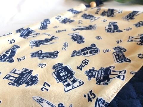 【半額セール】入園入学ランチバッグお弁当入れ巾着★ビンテージTOYおもちゃロボットロケット宇宙マチキルティング給食