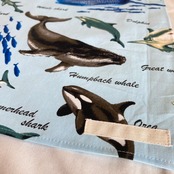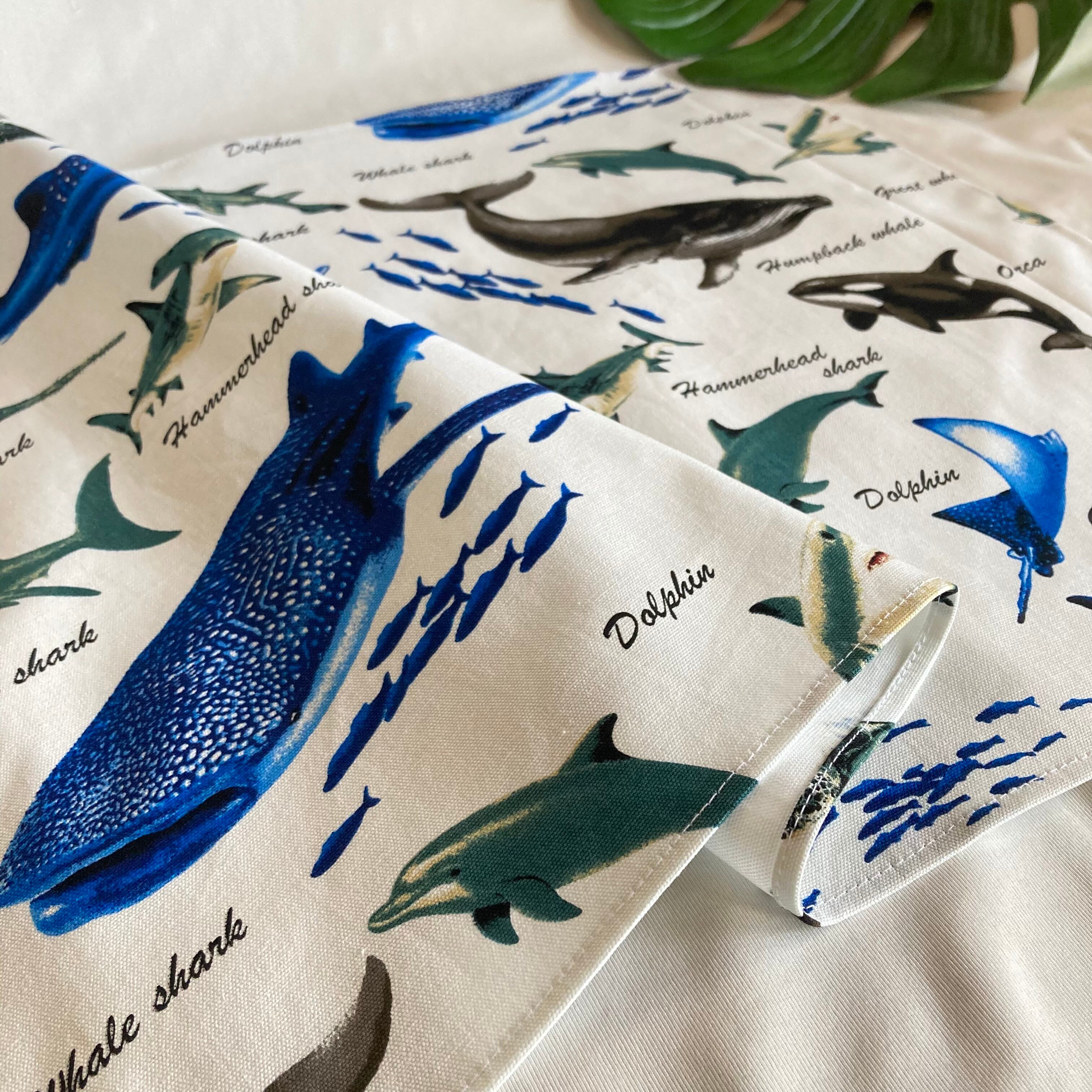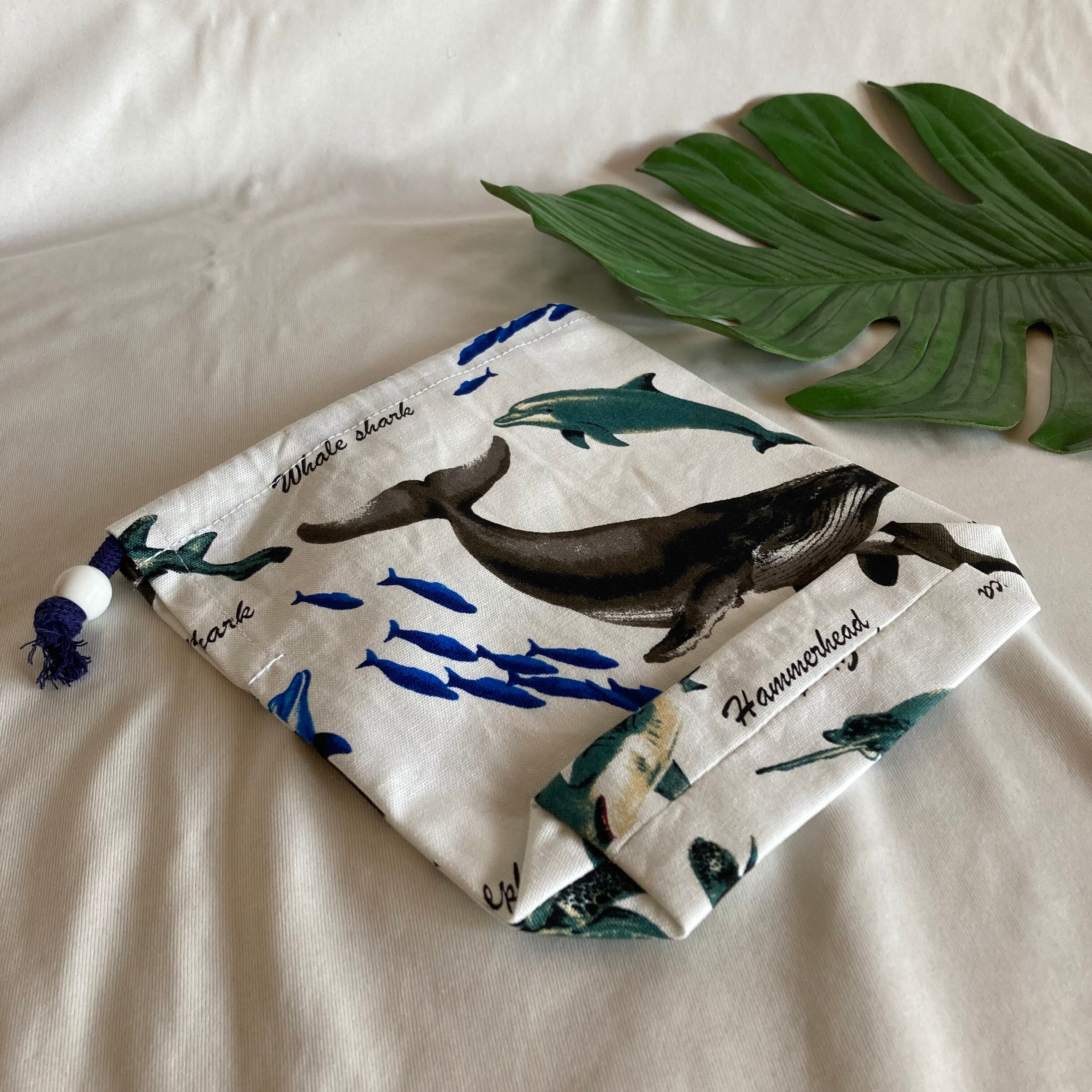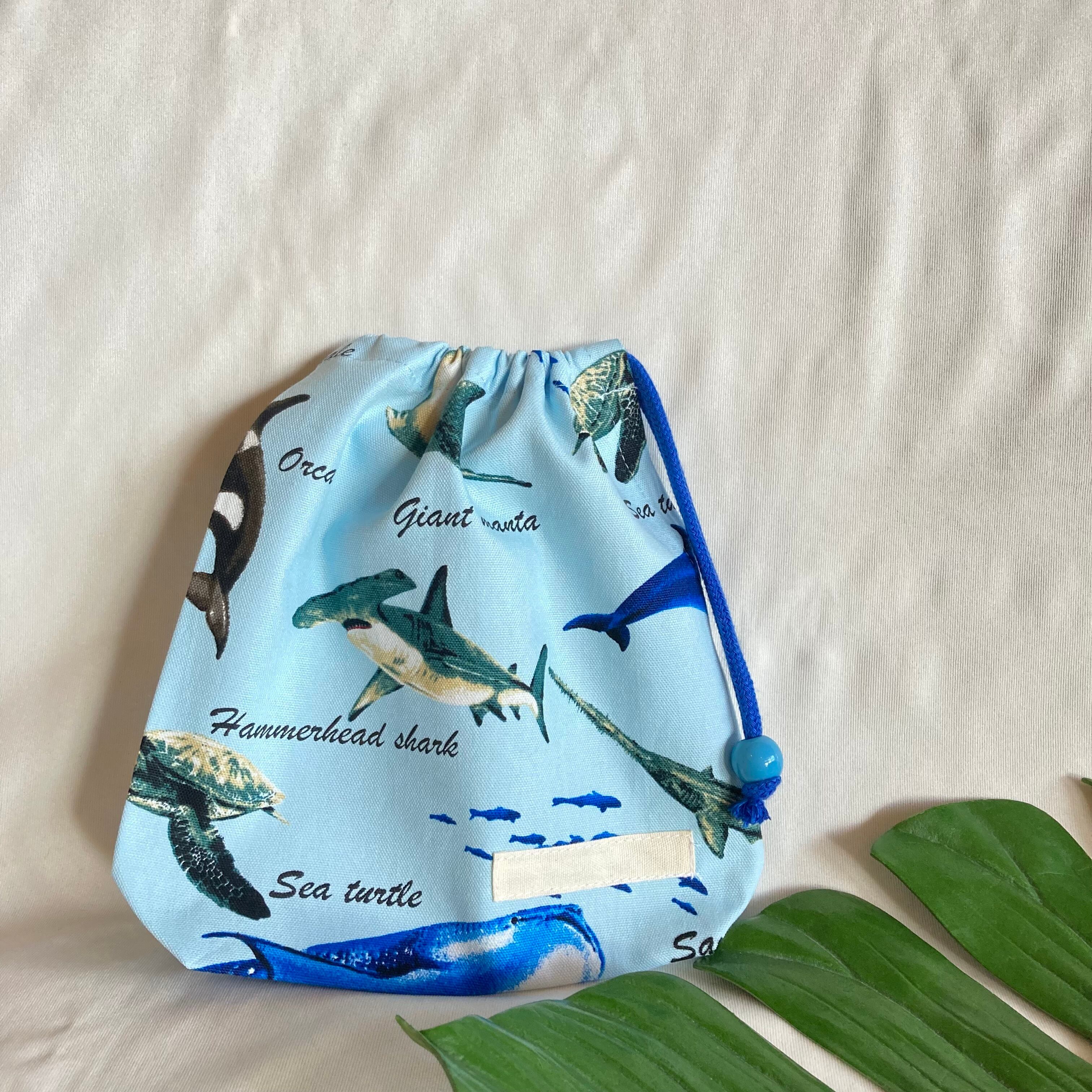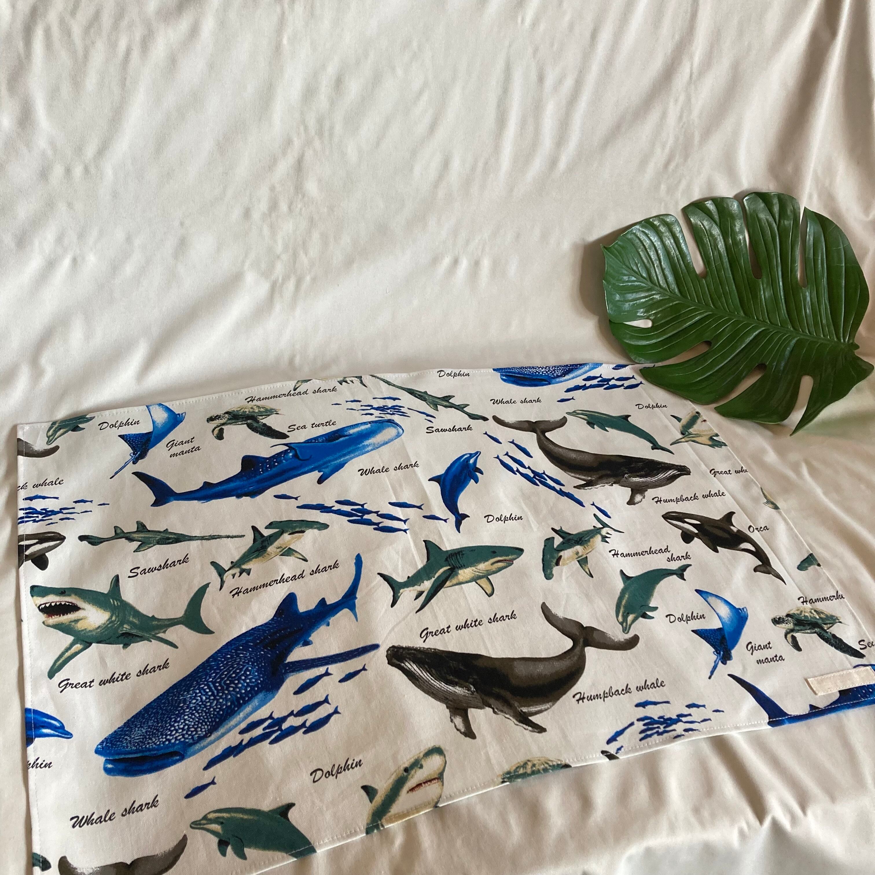 【オーダーOK】入園入学大きいランチョンマット(60×40㎝)給食袋コップ入れ巾着★海の生き物水族館サメくじらシャチいるかエイ魚カメマンタ★ナフキン弁当ランチクロス小学校机40×60㎝名前男の子