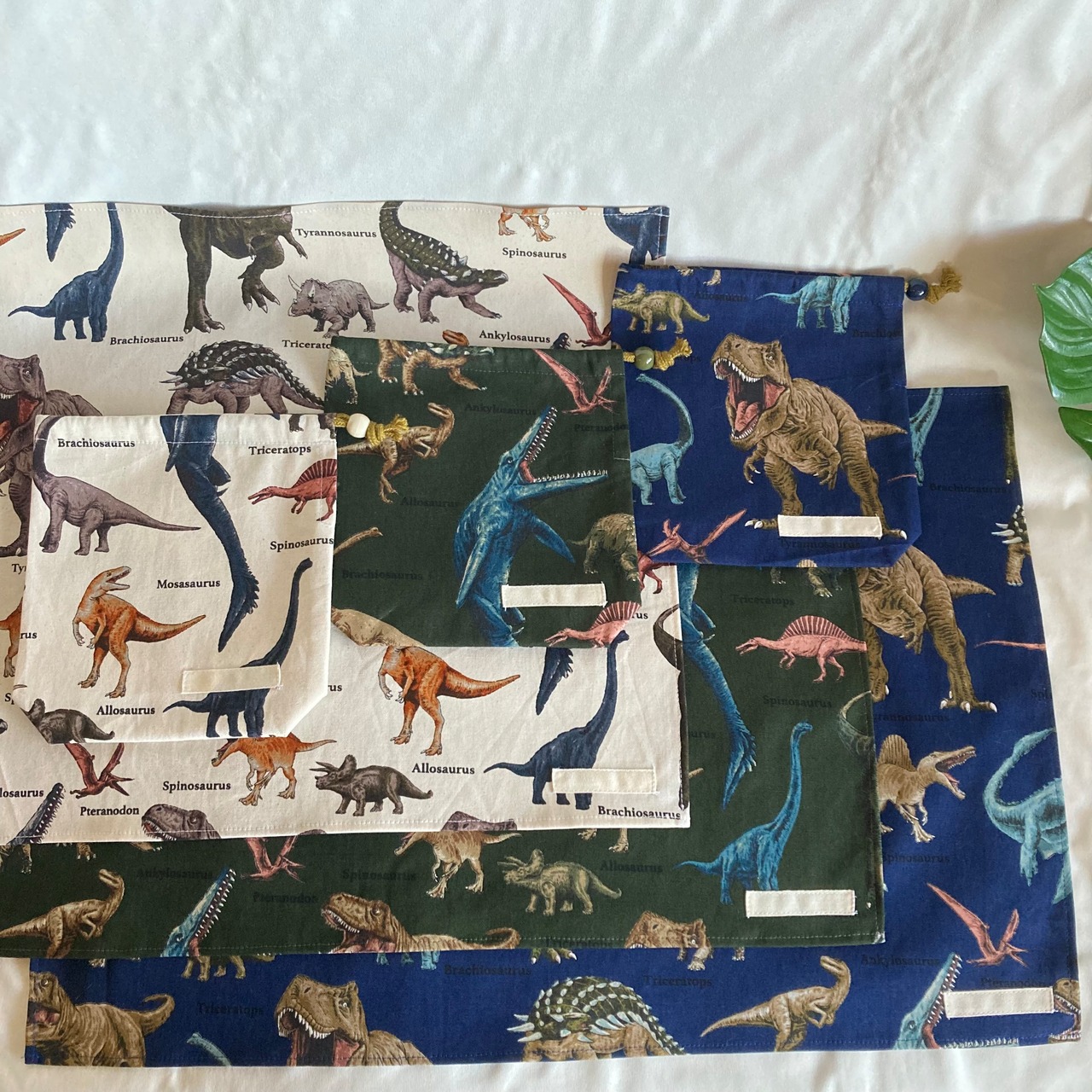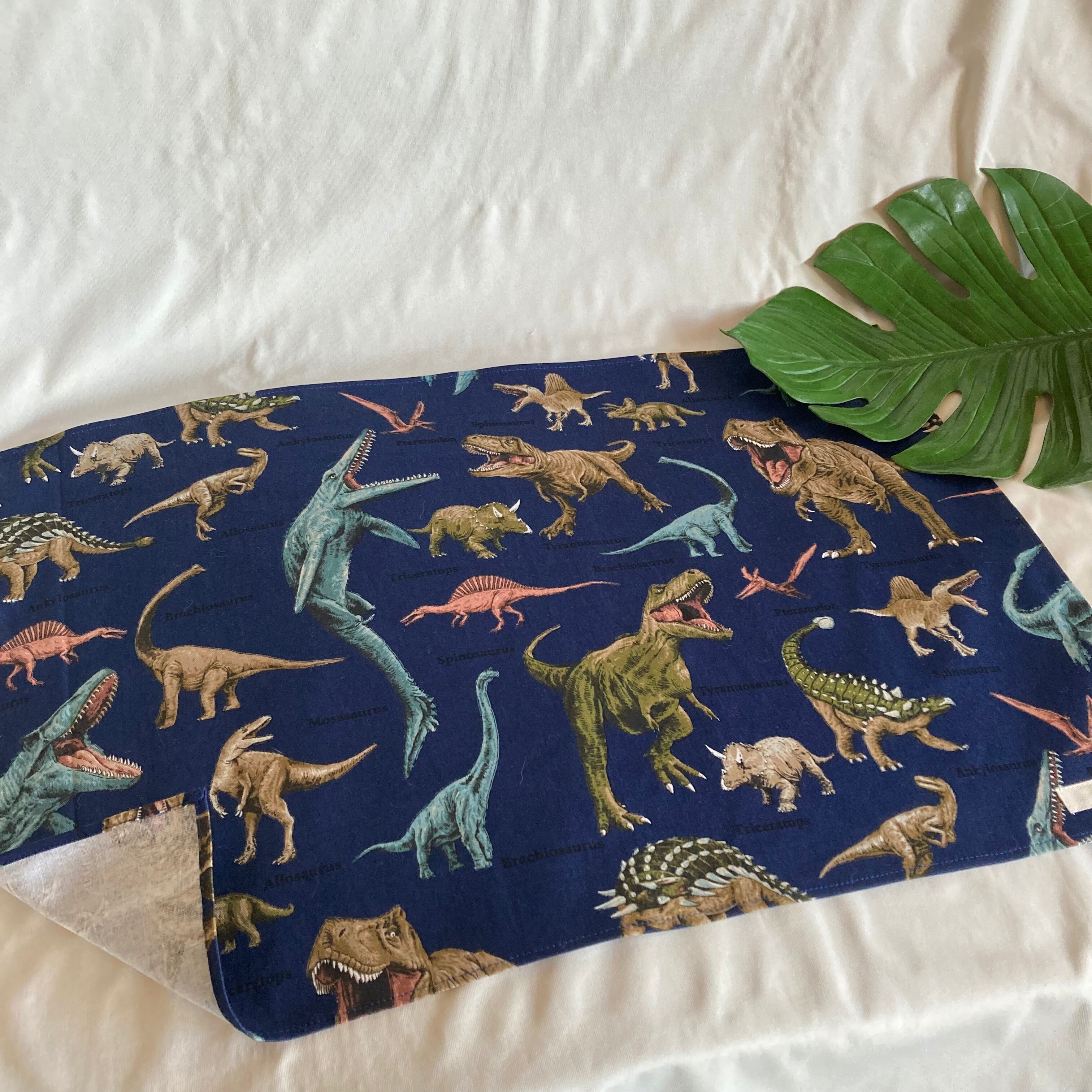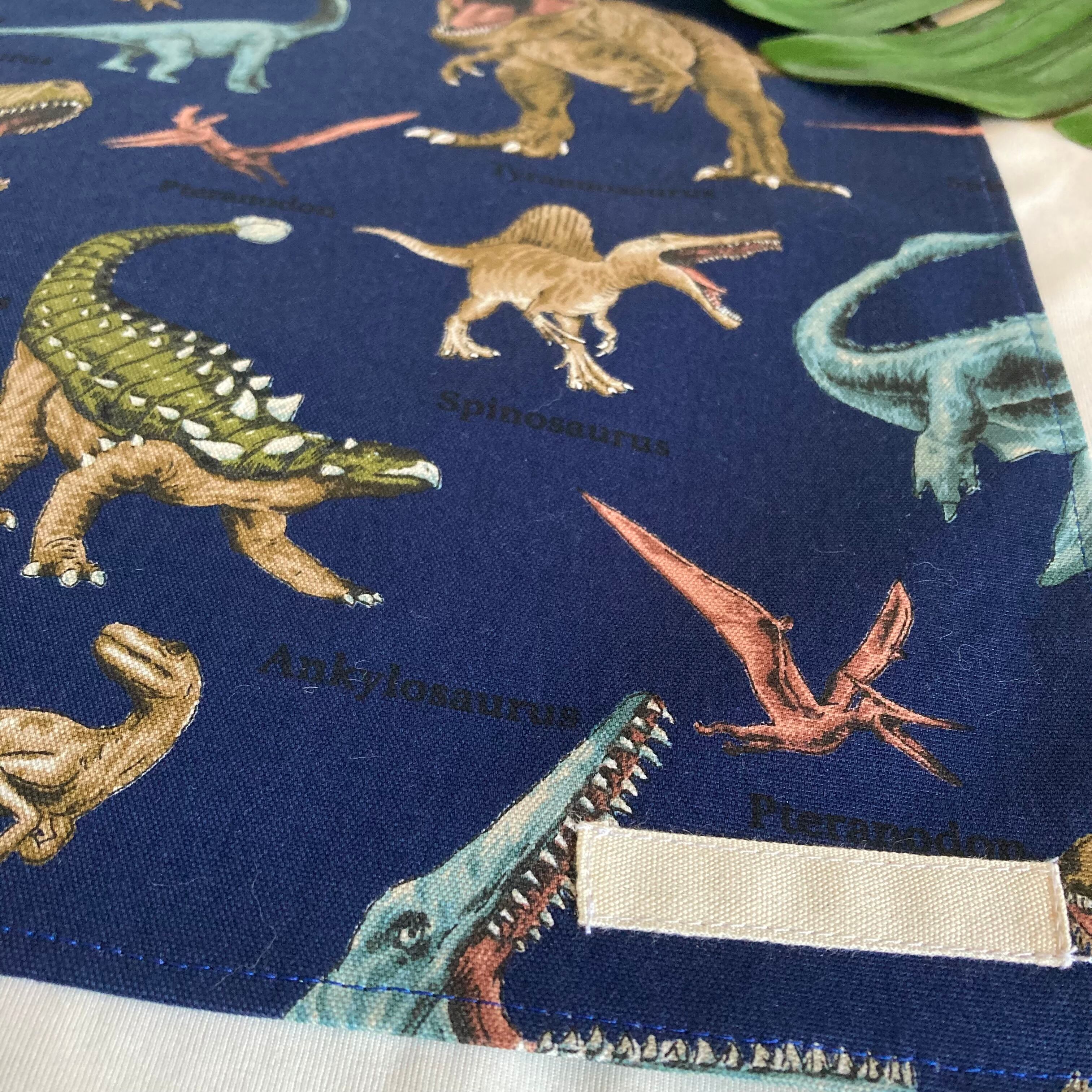 【オーダーOK】入園入学大きいランチョンマット(60×40㎝)給食袋コップ入れ巾着★恐竜海竜古代生物化石モササウルスティラノサウルス★ナフキン弁当ランチクロス小学校机40×60㎝名前男の子