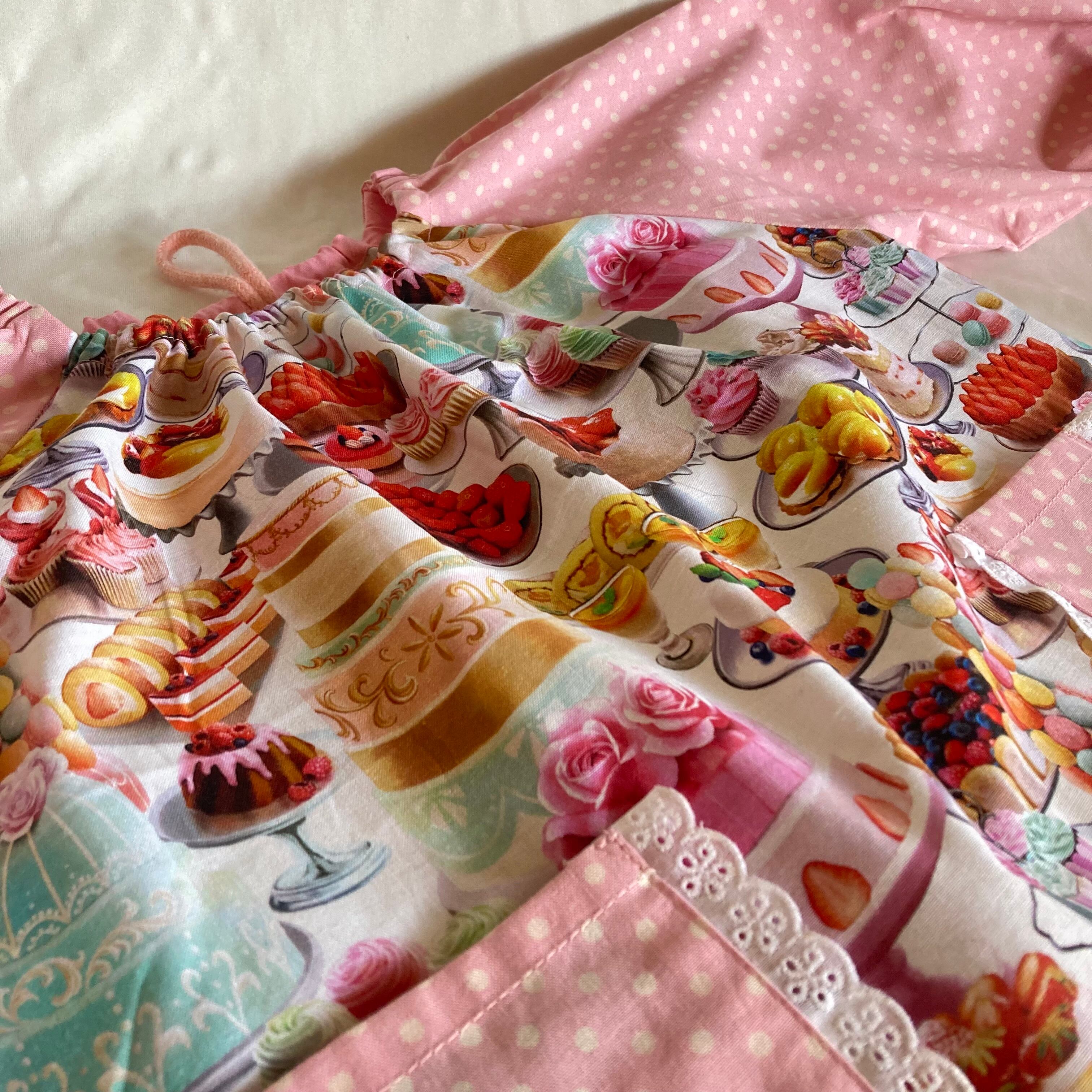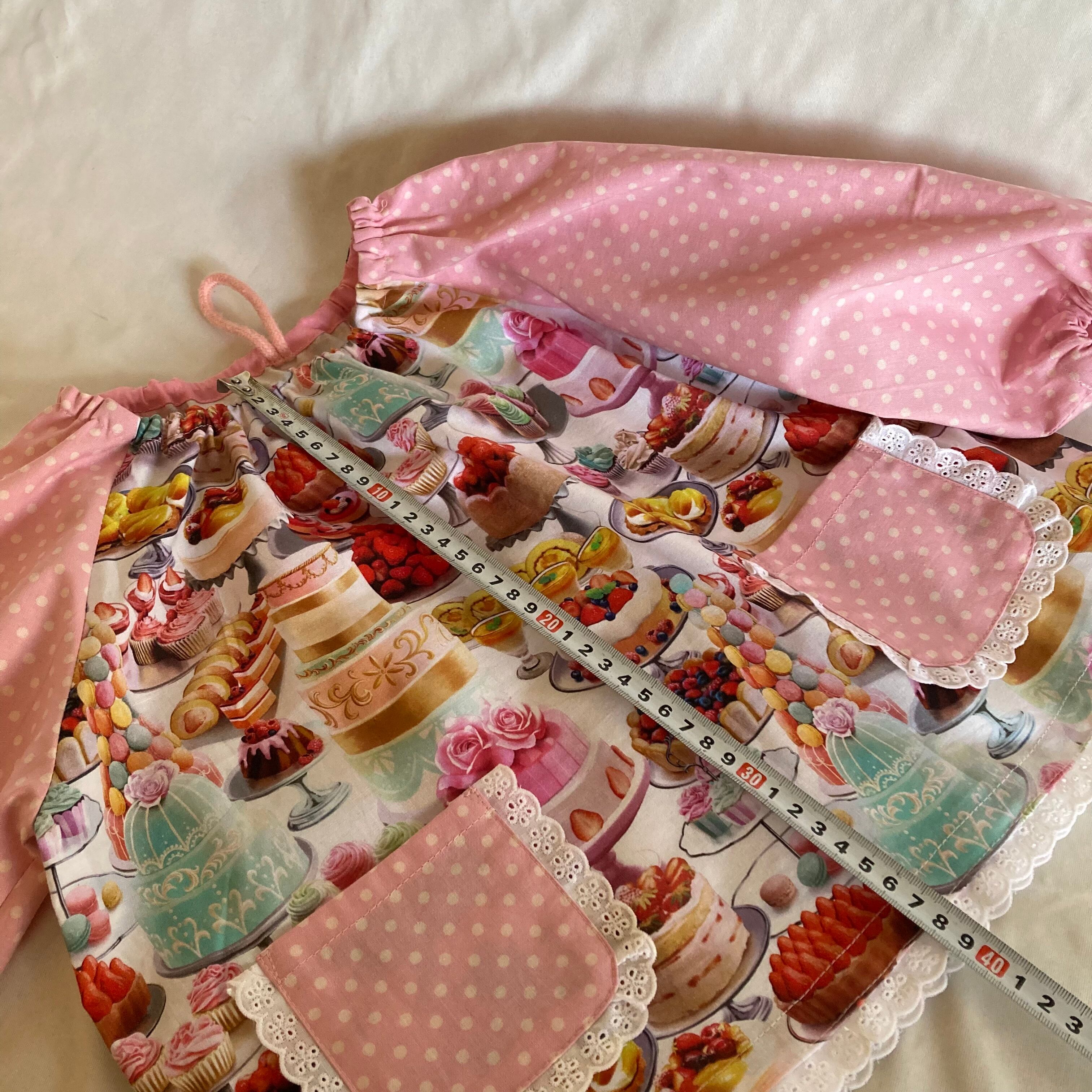 【オーダーOK】★長袖スモック100㎝★スイーツケーキフルーツパフェ★入園入学幼稚園保育園小学校遊び着食事書道絵具ポケット★北欧くすみニュアンスパステル