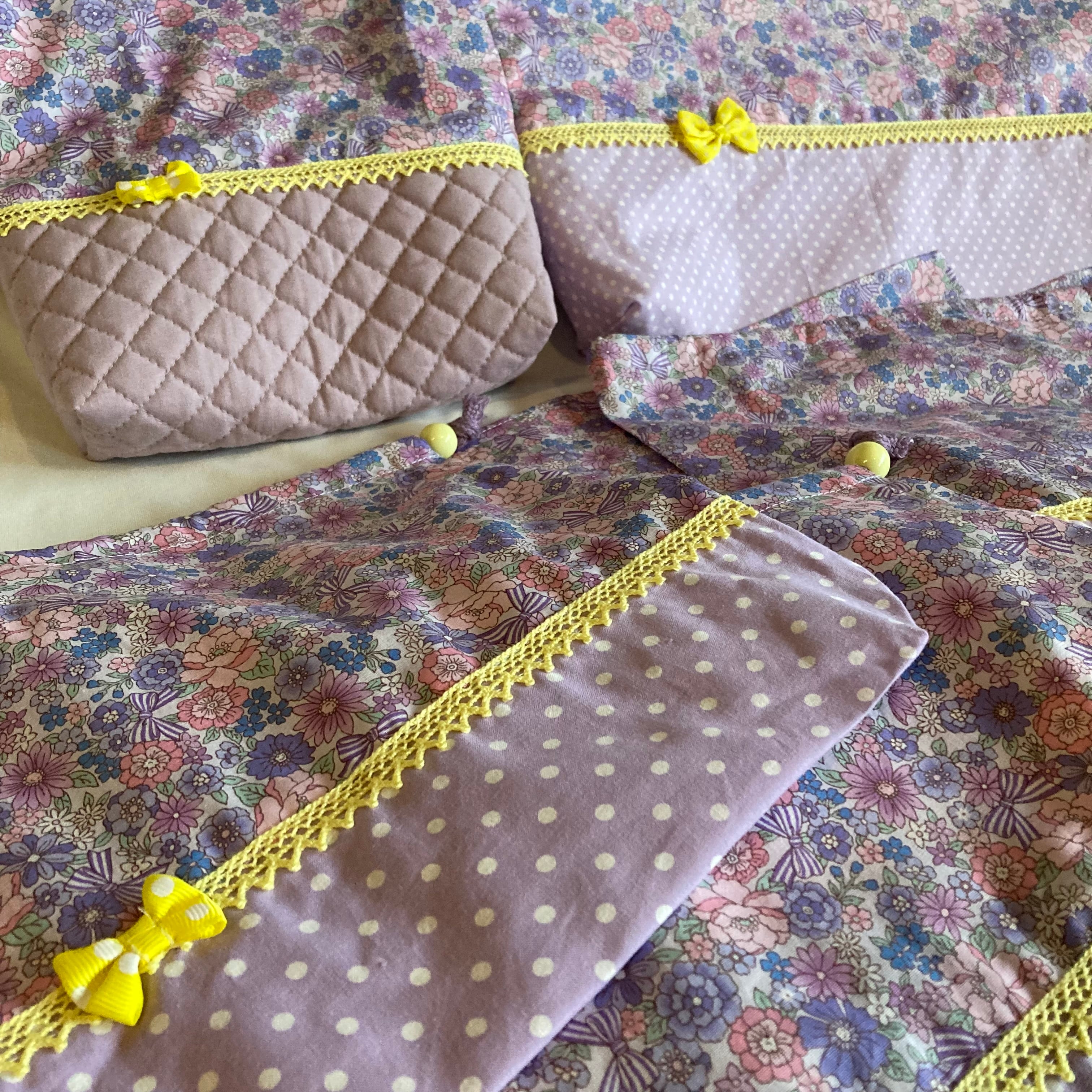 【T様オーダー品】入園入学セット★デイジーお花柄★レッスンバッグ・シューズ入れ・ナップサック・お弁当入れ巾着・コップ入れ巾着・移動ポケット・ランチョンマット2枚