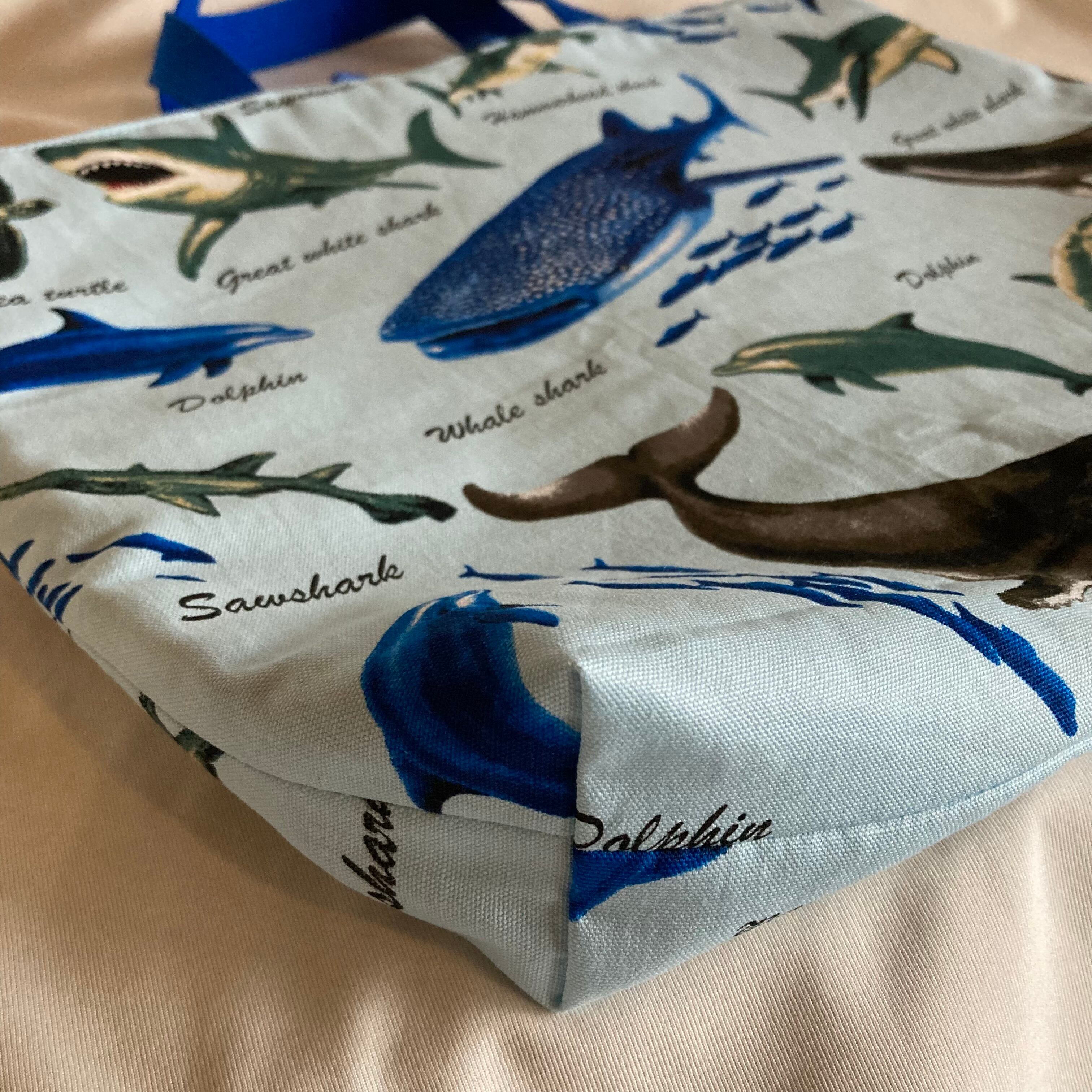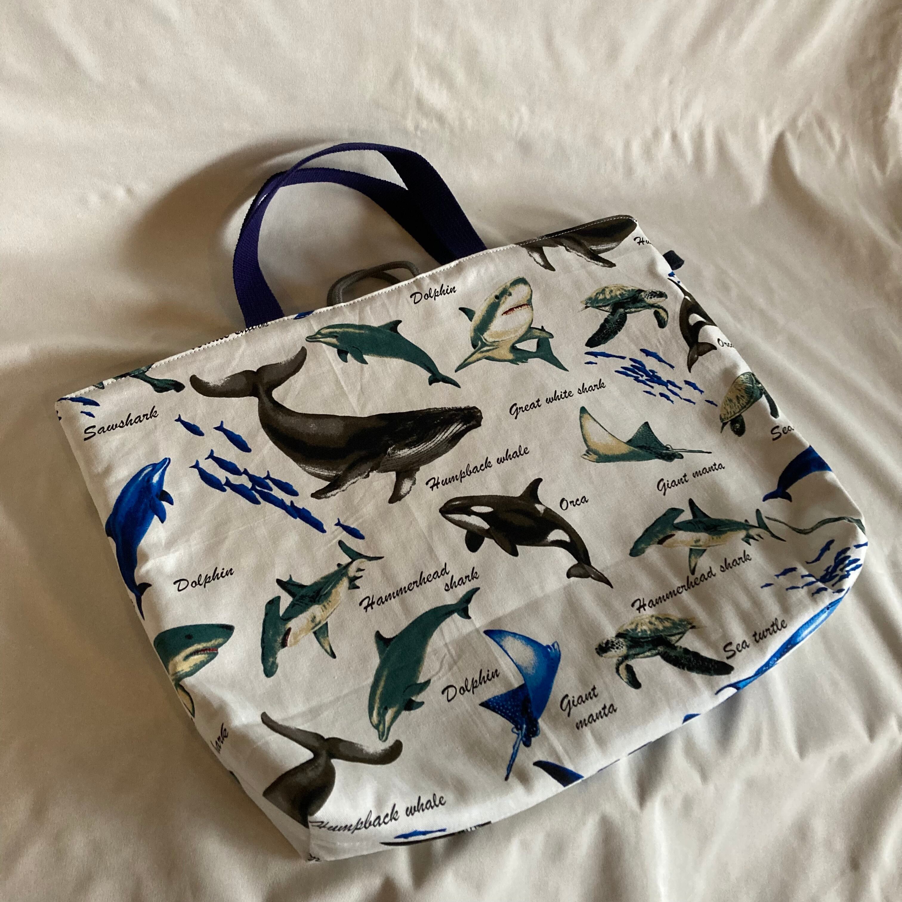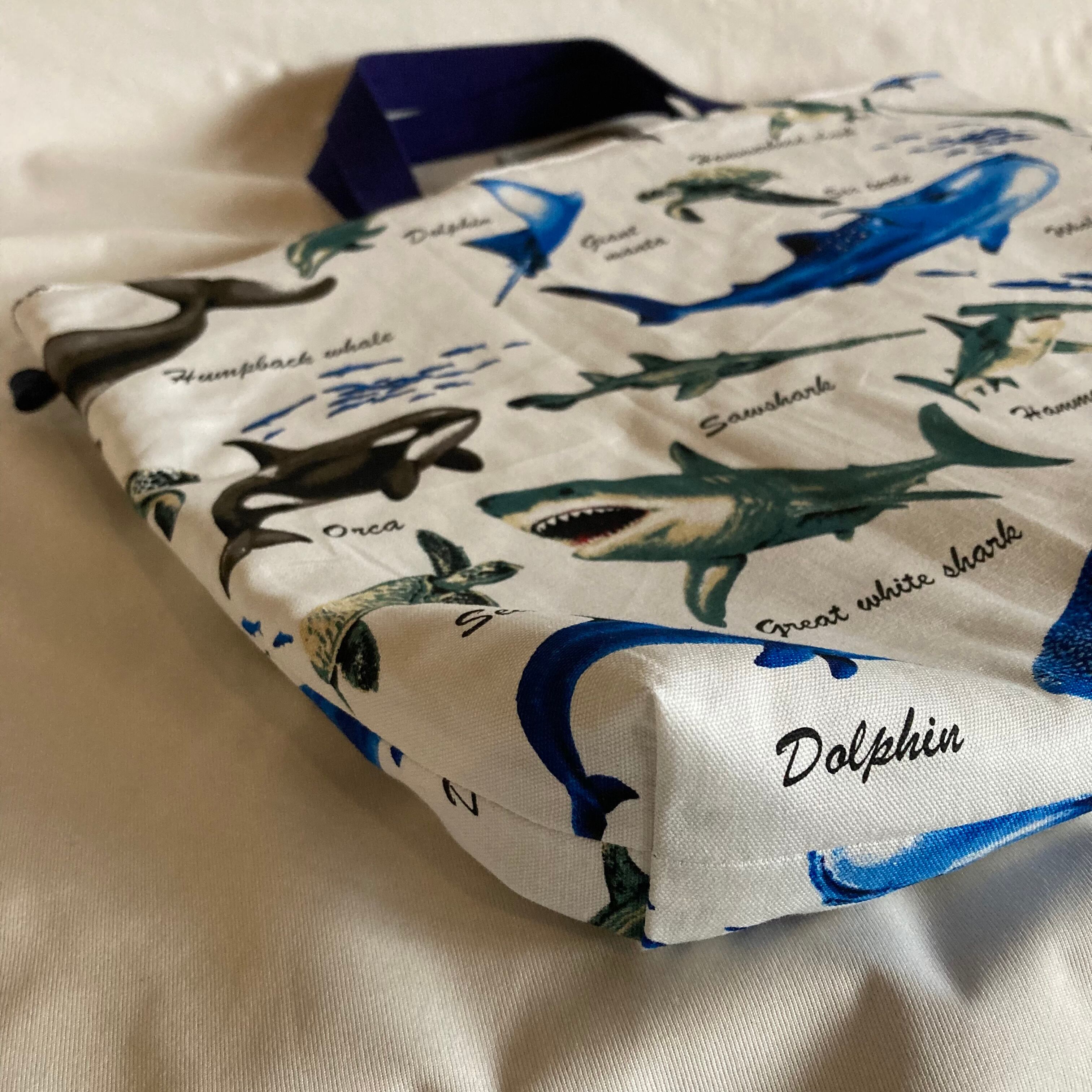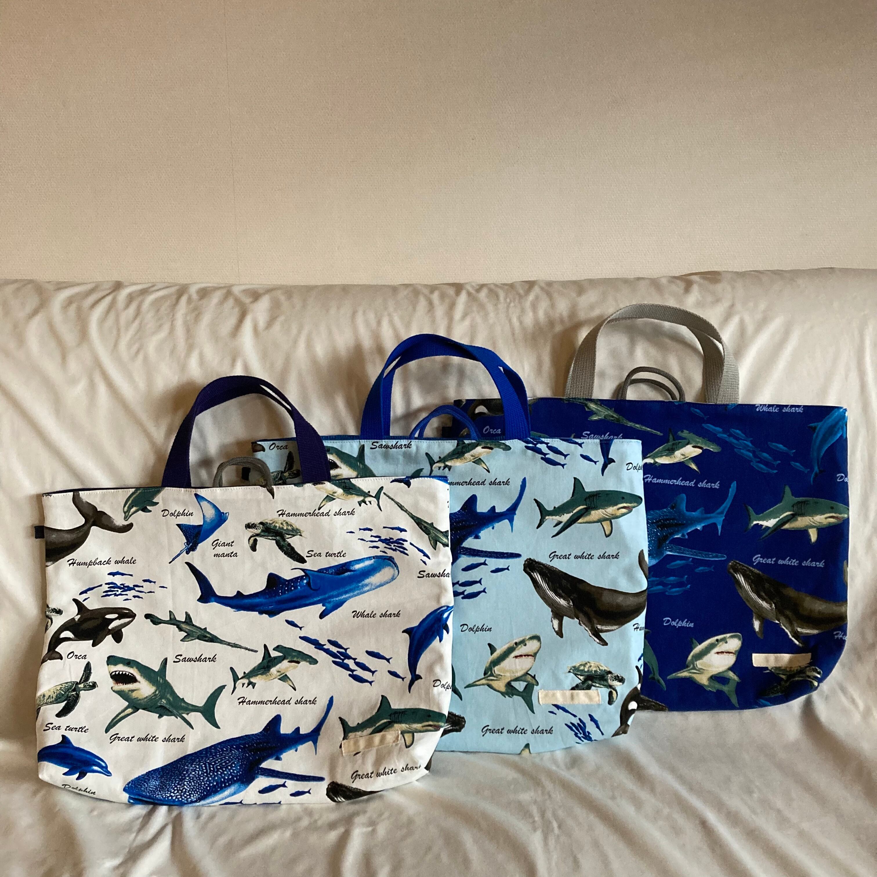 【床につかない!!】入園入学レッスンバッグ手提げ絵本袋リバーシブル★迫力の海の生き物水族館サメシャチいるかくじらカ魚★名前キルティングマチレースポケット小学校習い事ラッピングプレゼント持ち手