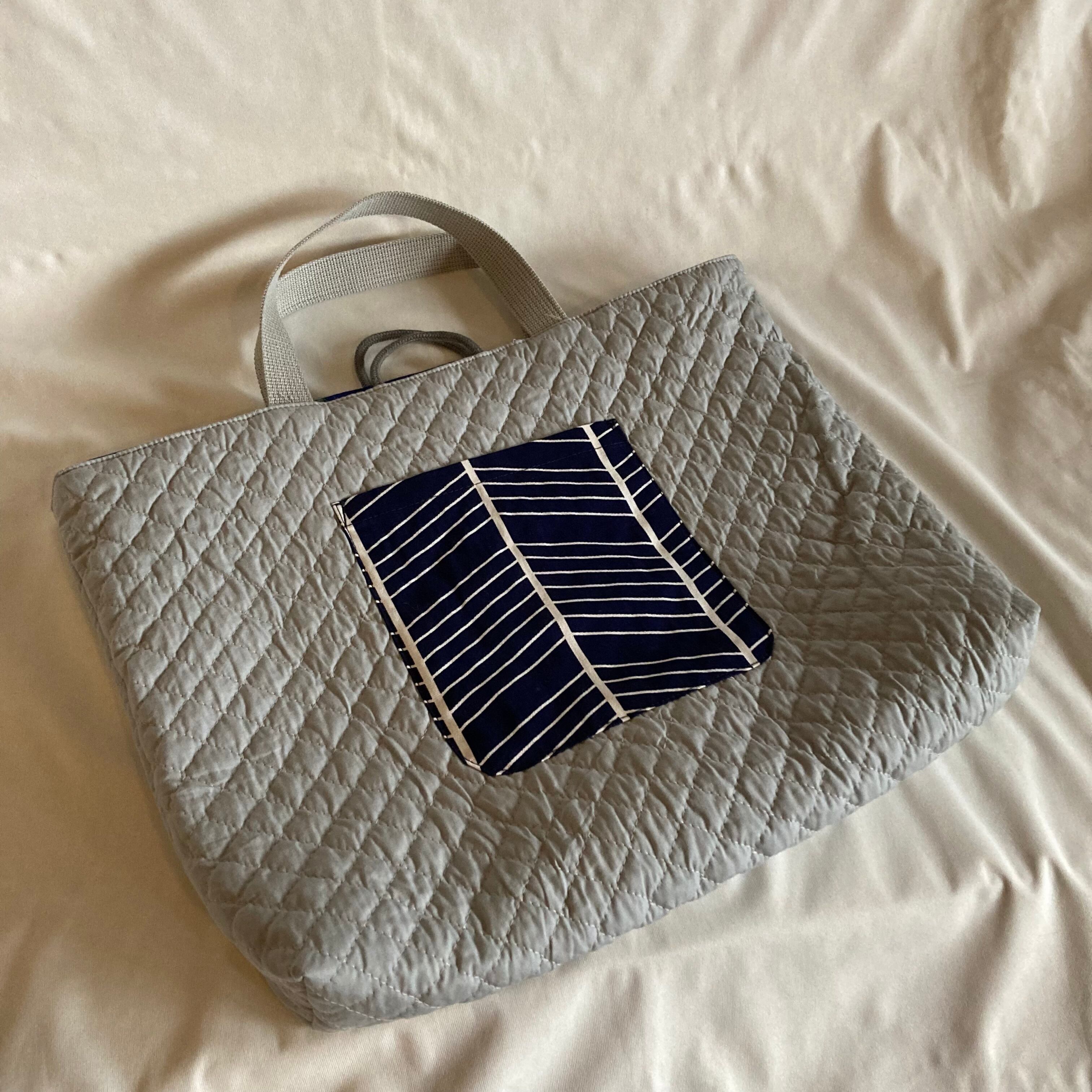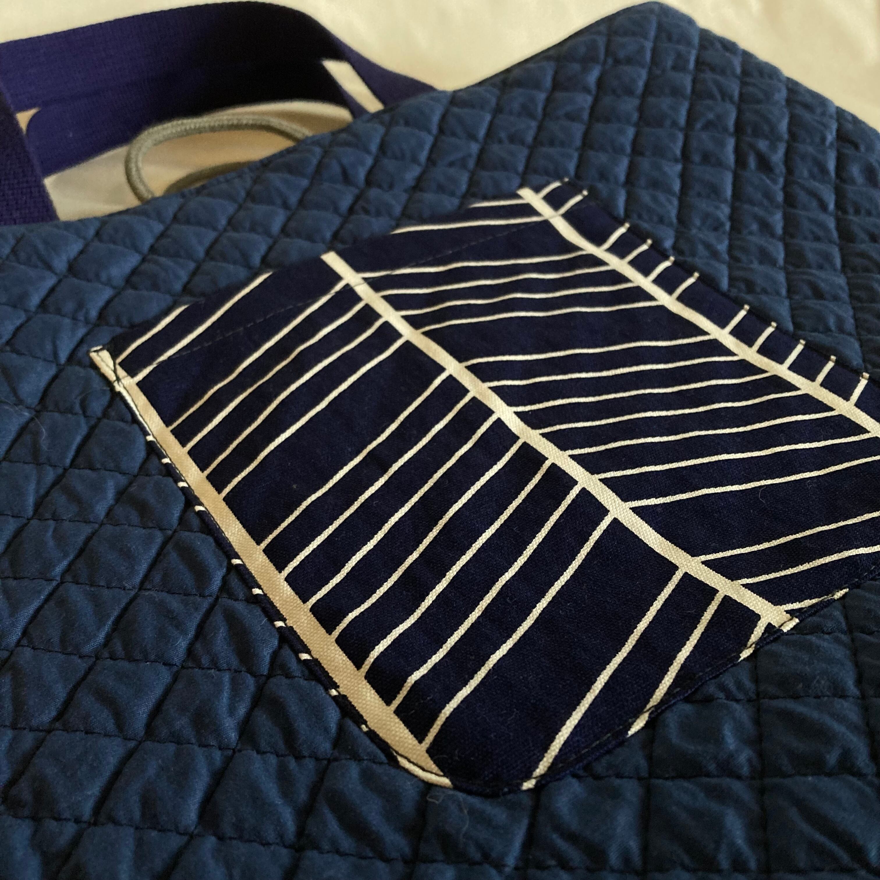 シンプルなキルティング側には、大きめのポケット(16cm×16cm)がついているので、便利★