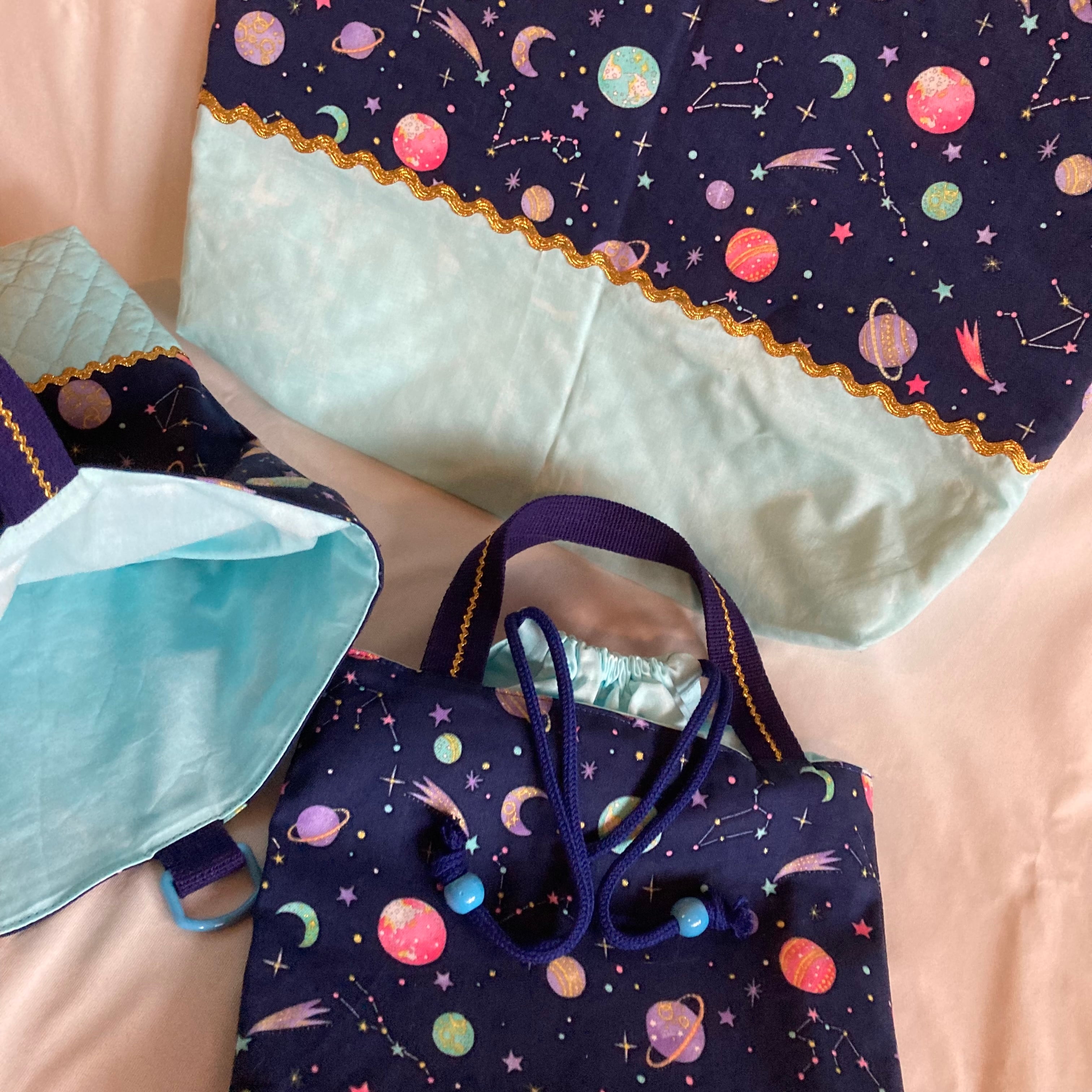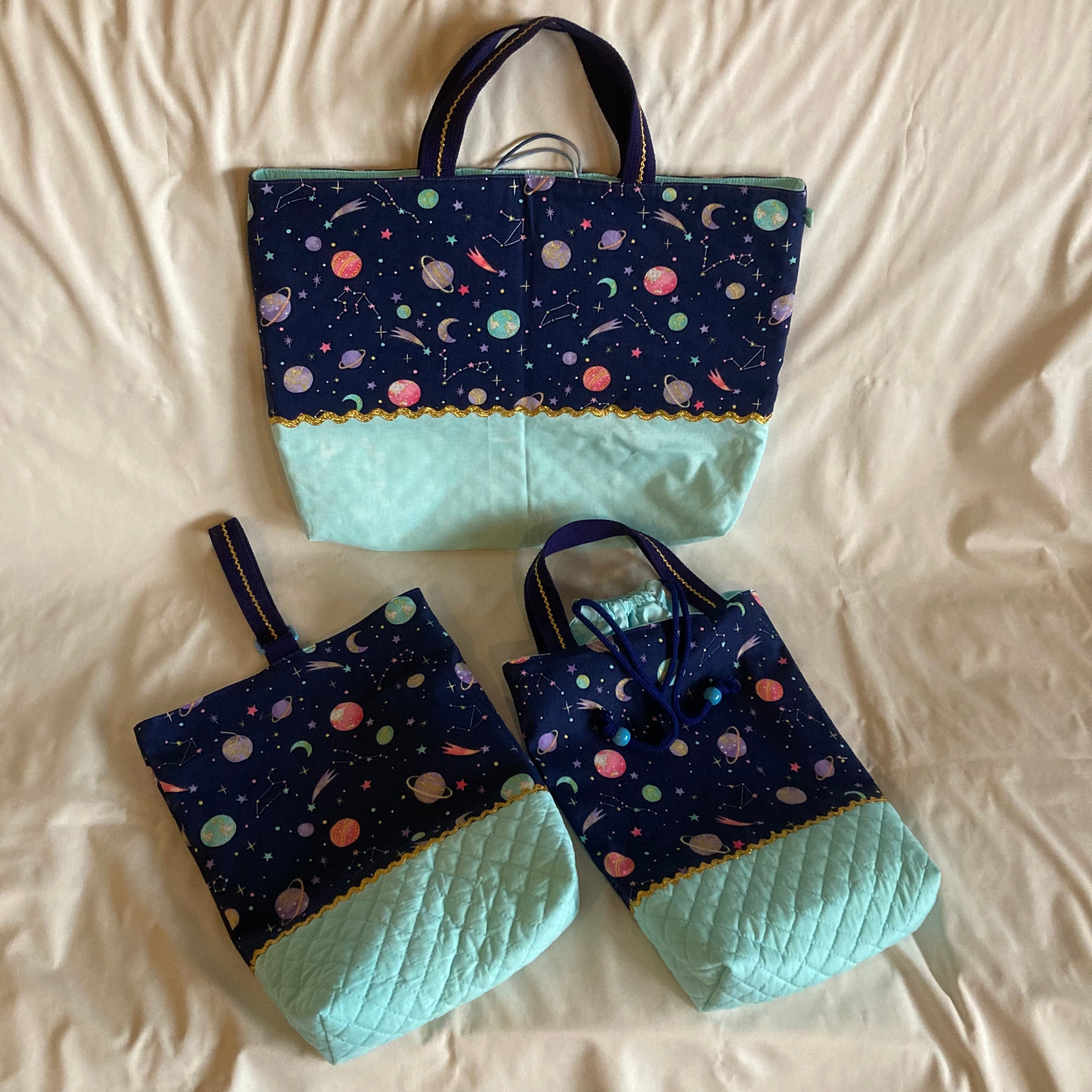 【専用オーダー品】レッスンバッグ手提げ上履き入れ体操着入れ★きらきら宇宙ネイビー
