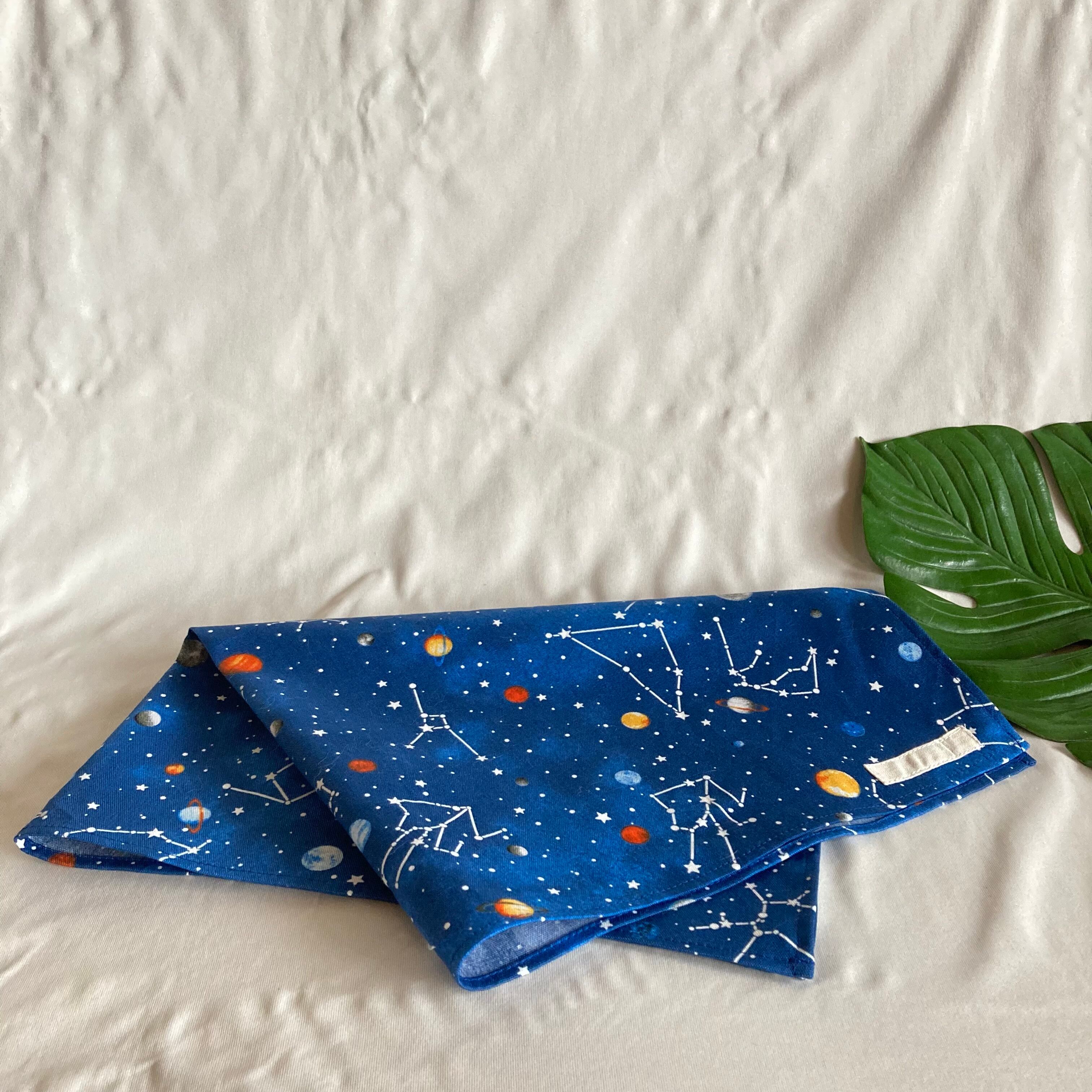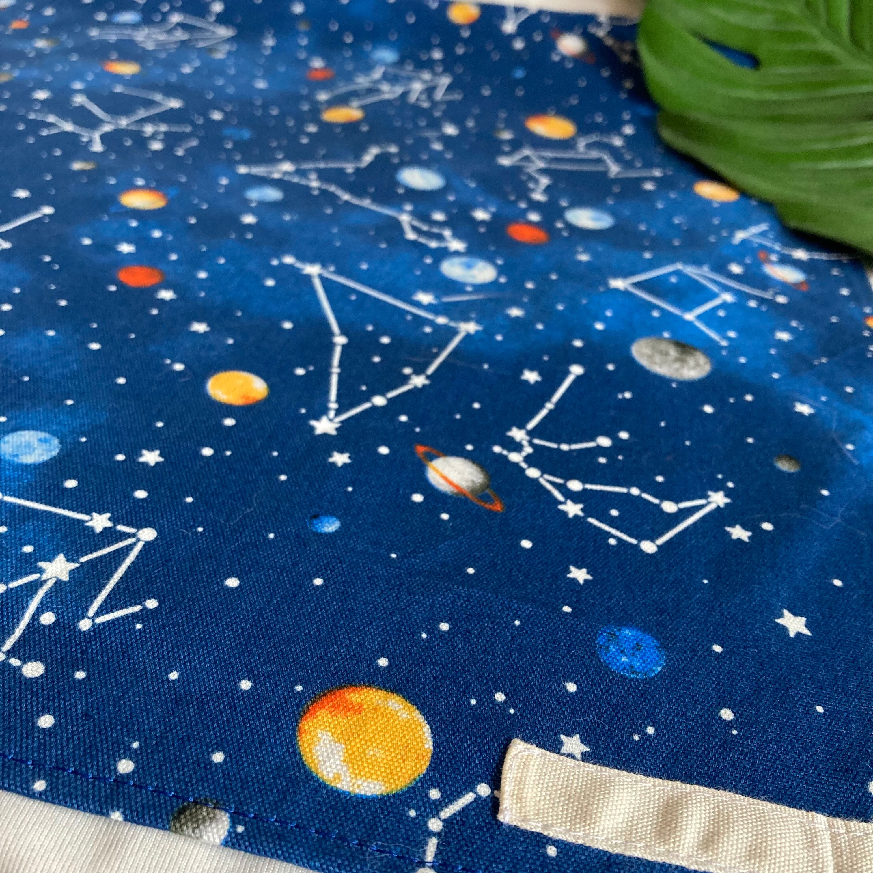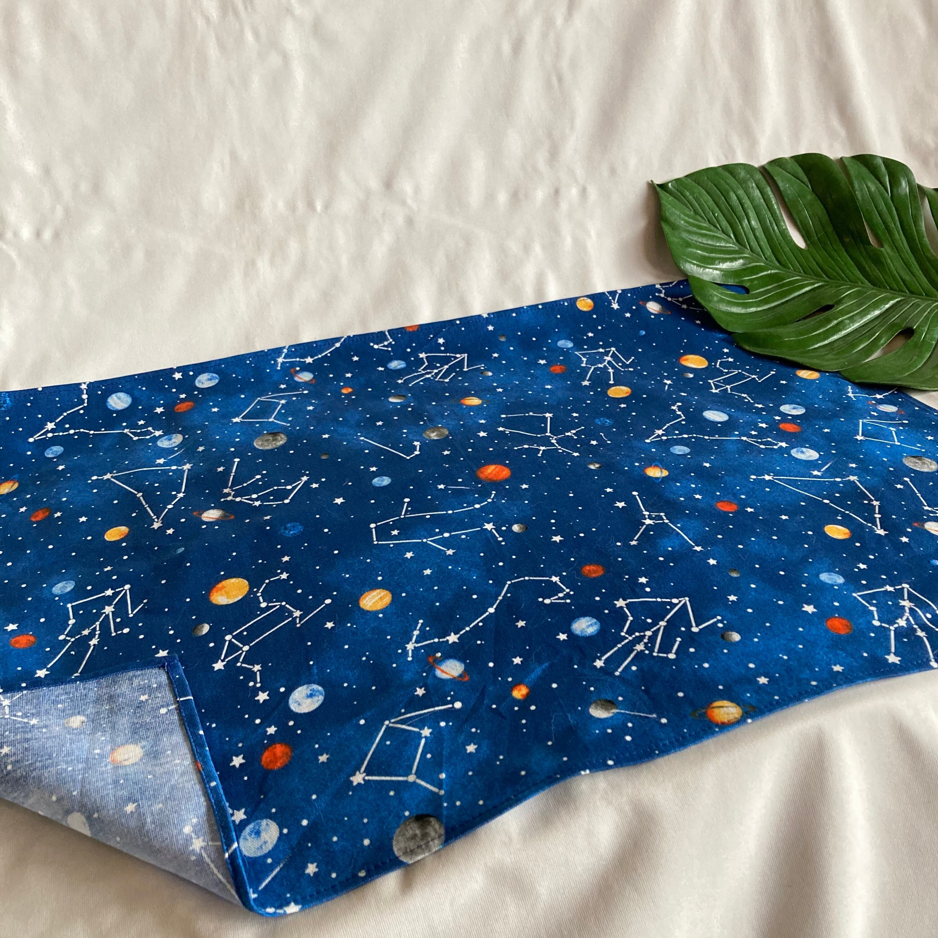 【オーダーOK】入園入学大きいランチョンマット60×40★星座地球宇宙惑星銀河ブルー★給食ナフキンお弁当★縫い付けお名前小学校机40×60㎝★ラッピングプレゼント誕生日クリスマスギフトくすみ