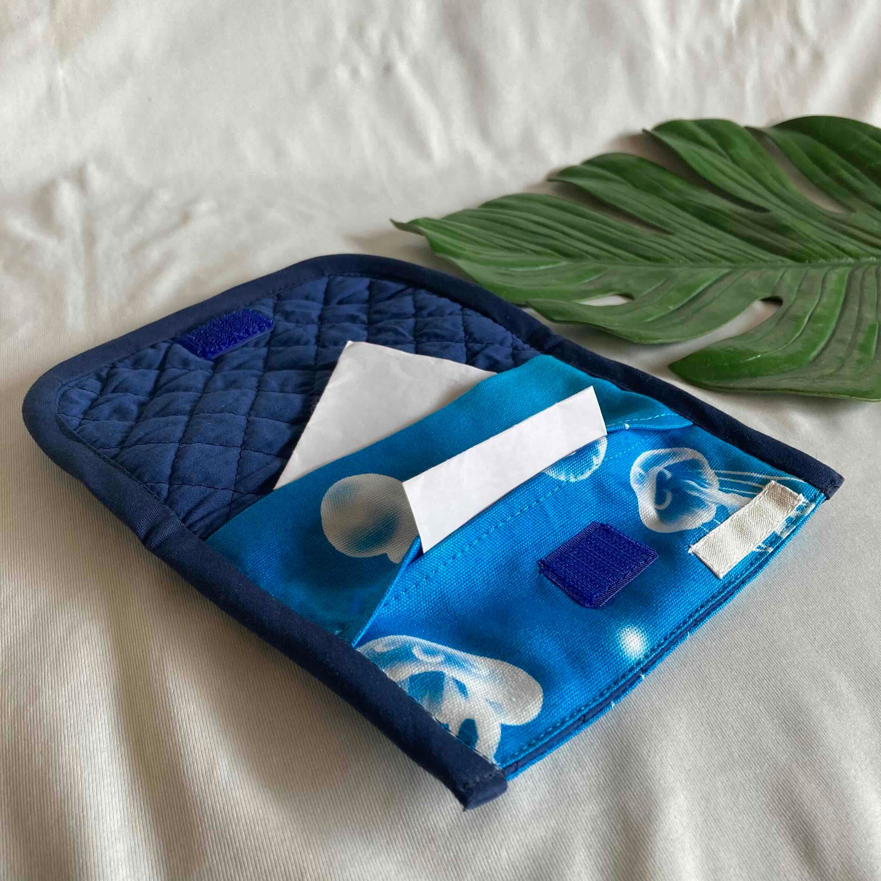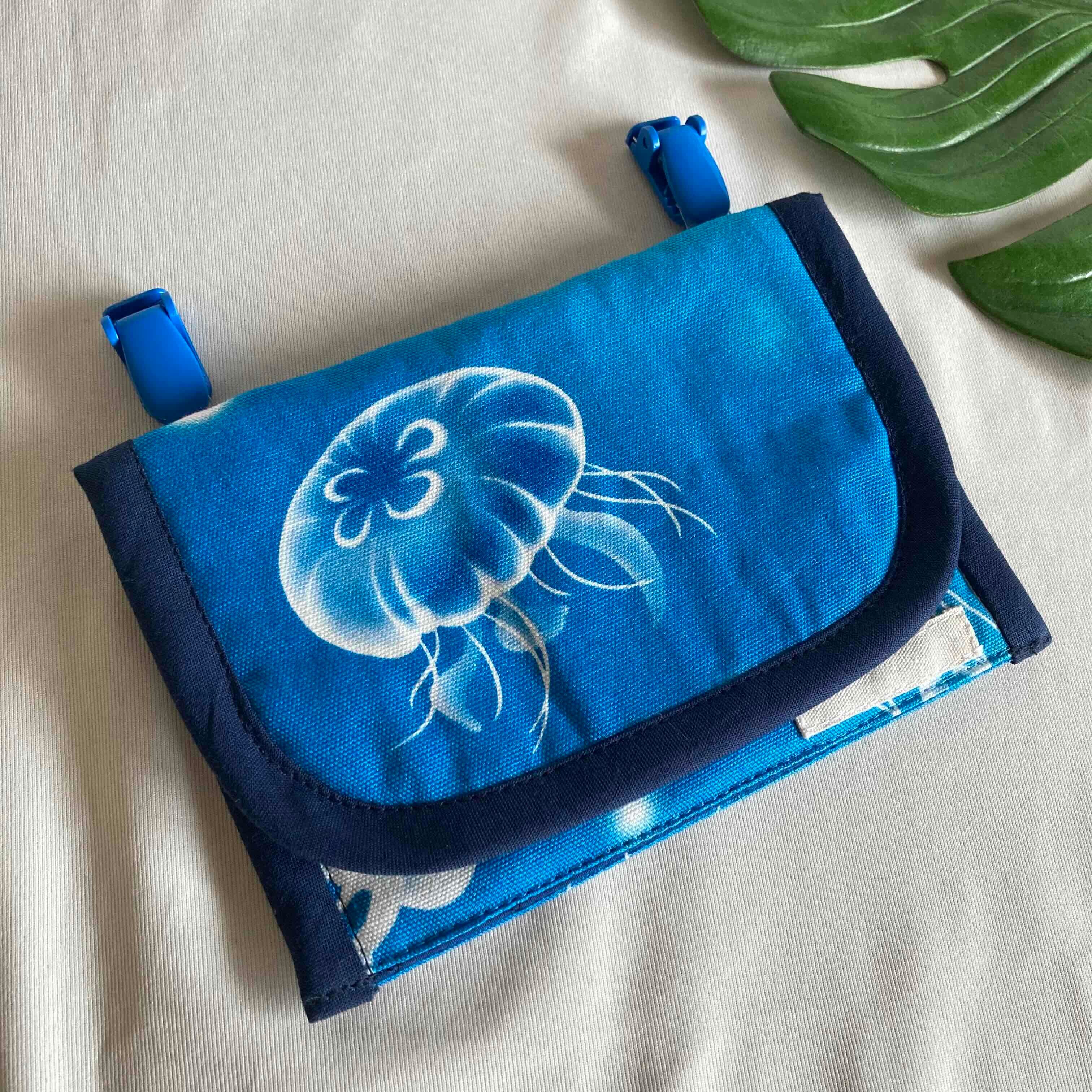 【オーダーOK】裏キルティング移動ポケット★クラゲくらげジェリーフィッシュ★マルチポケット縫い付けお名前マジックテープ安全ピンティッシュハンカチマルチポケットお出かけポケット習い事海の生き物