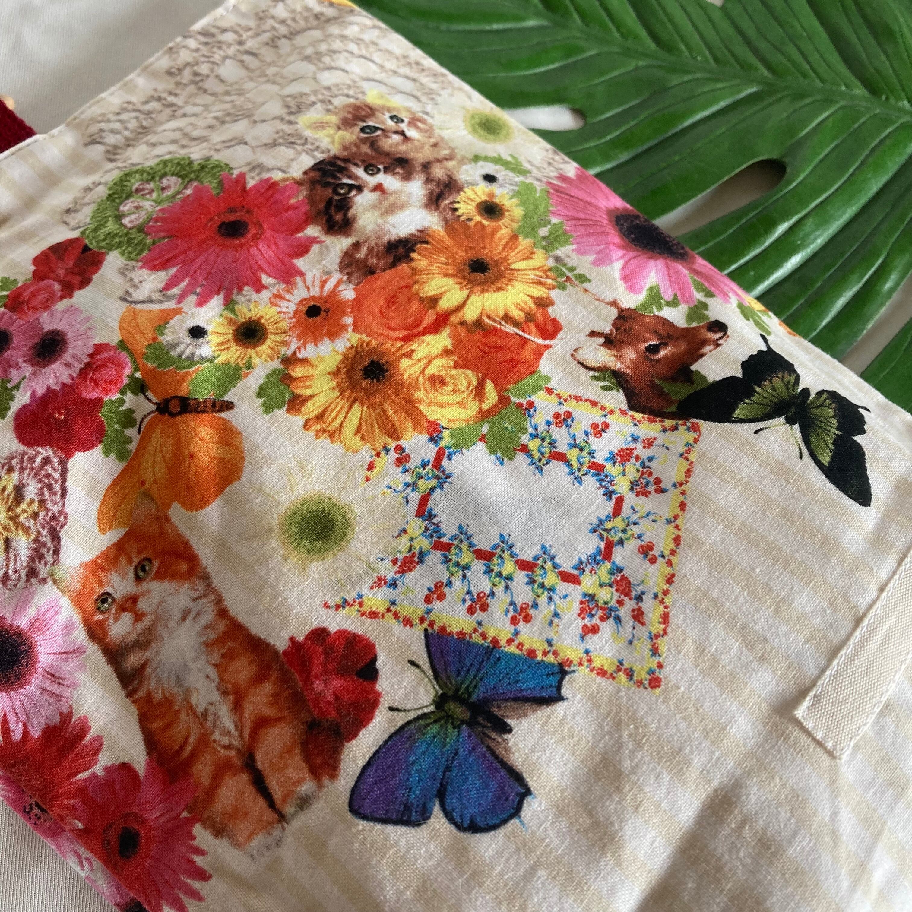 【オーダーOK】入園入学シューズケース上履き袋リバーシブル上靴★花蝶猫鹿マチ持ち手動物Dカンくすみニュアンスパステル