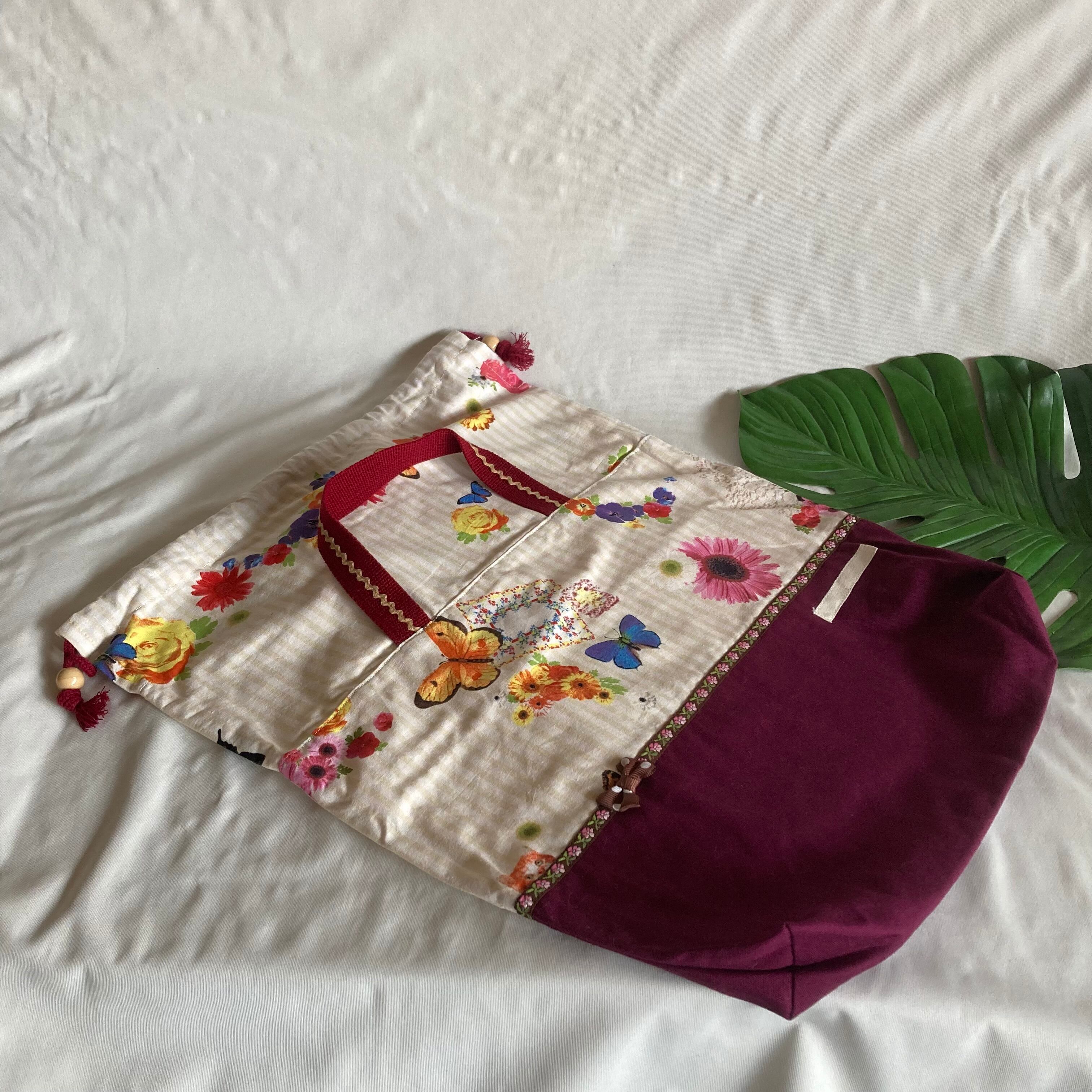 【サイズ】ヨコ37cm×タテ27cm (マチ、上部の巾着部分含まず) 底ヨコ31cm×マチ6cm