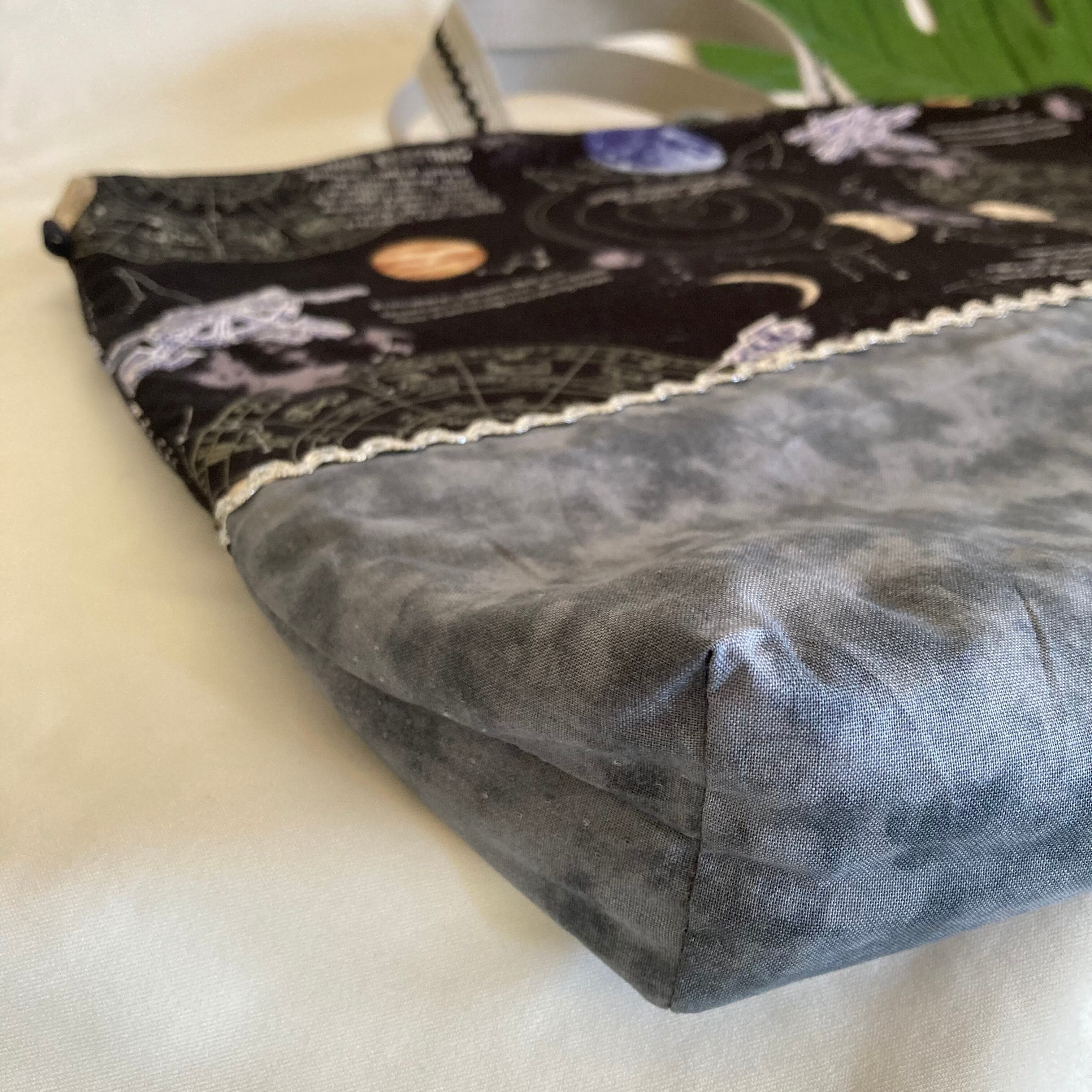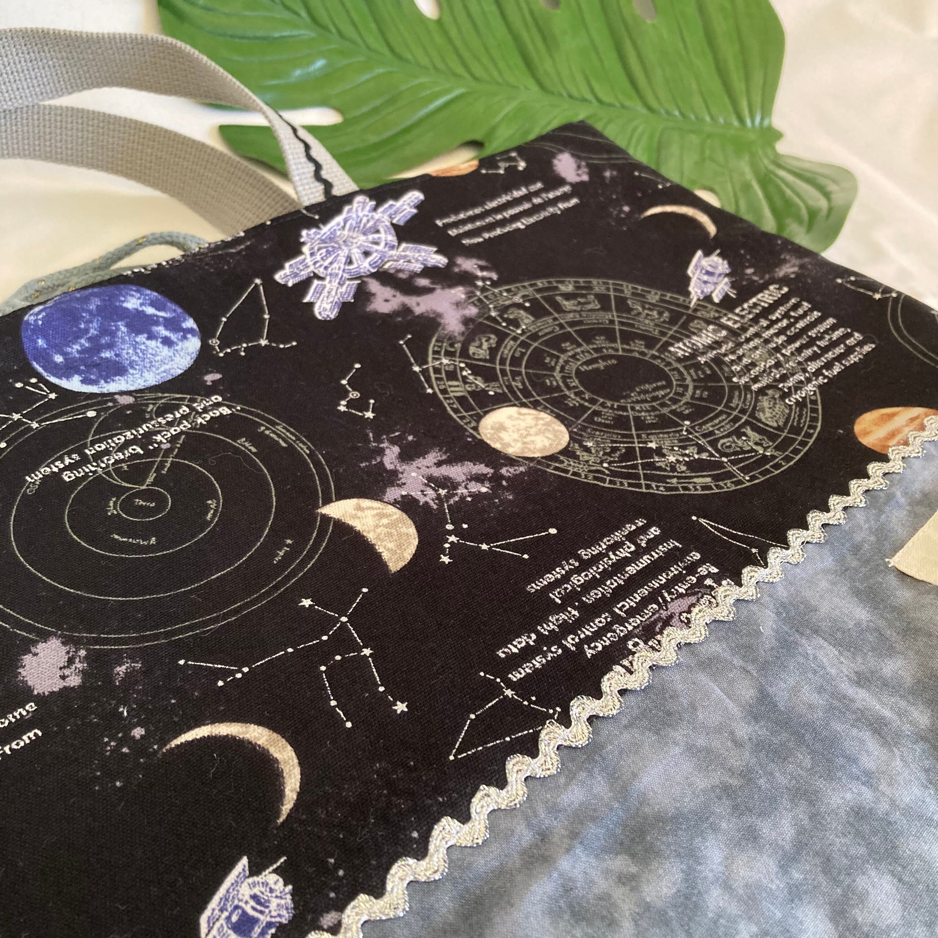 床につかない!入園入学レッスンバッグ手提げ絵本袋リバーシブル32宇宙銀河星座ロケット惑星星座★縫い付けお名前小学校キルティングマチポケット★ラッピングプレゼント誕生日クリスマスポケット習い事幼児むら染