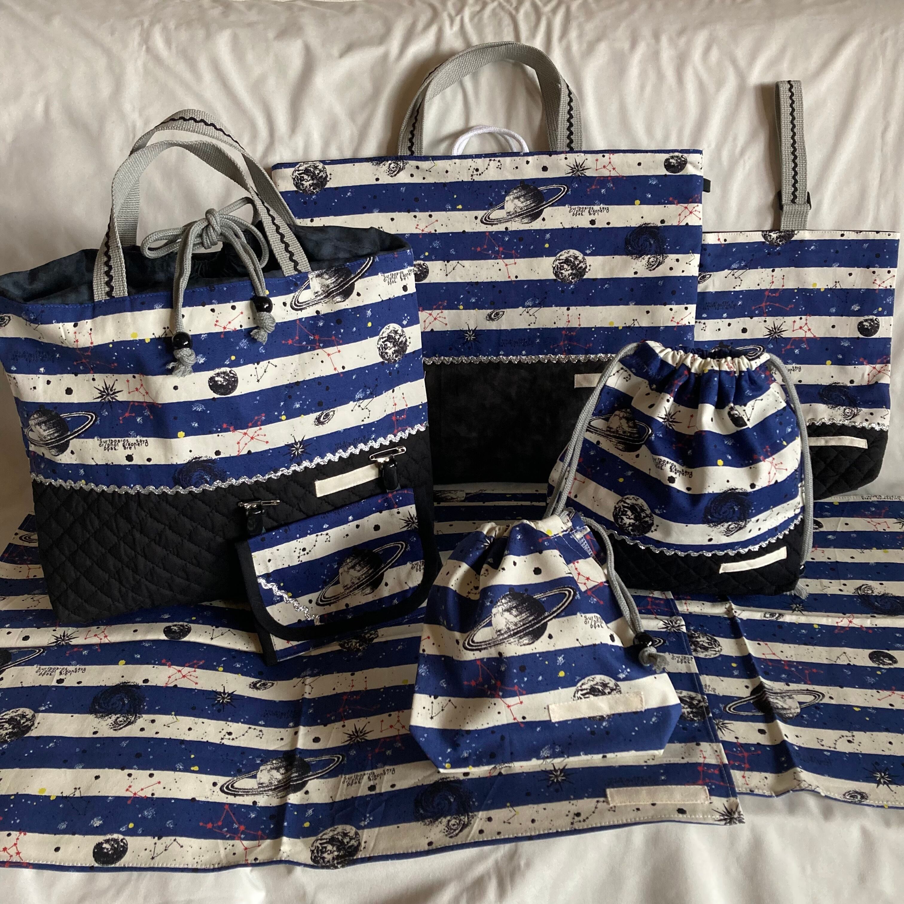 【オーダーOK】入園入学リバーシブル★シューズケース上履き袋27宇宙ボーダー惑星地球男の子キルティングマチ切り替え