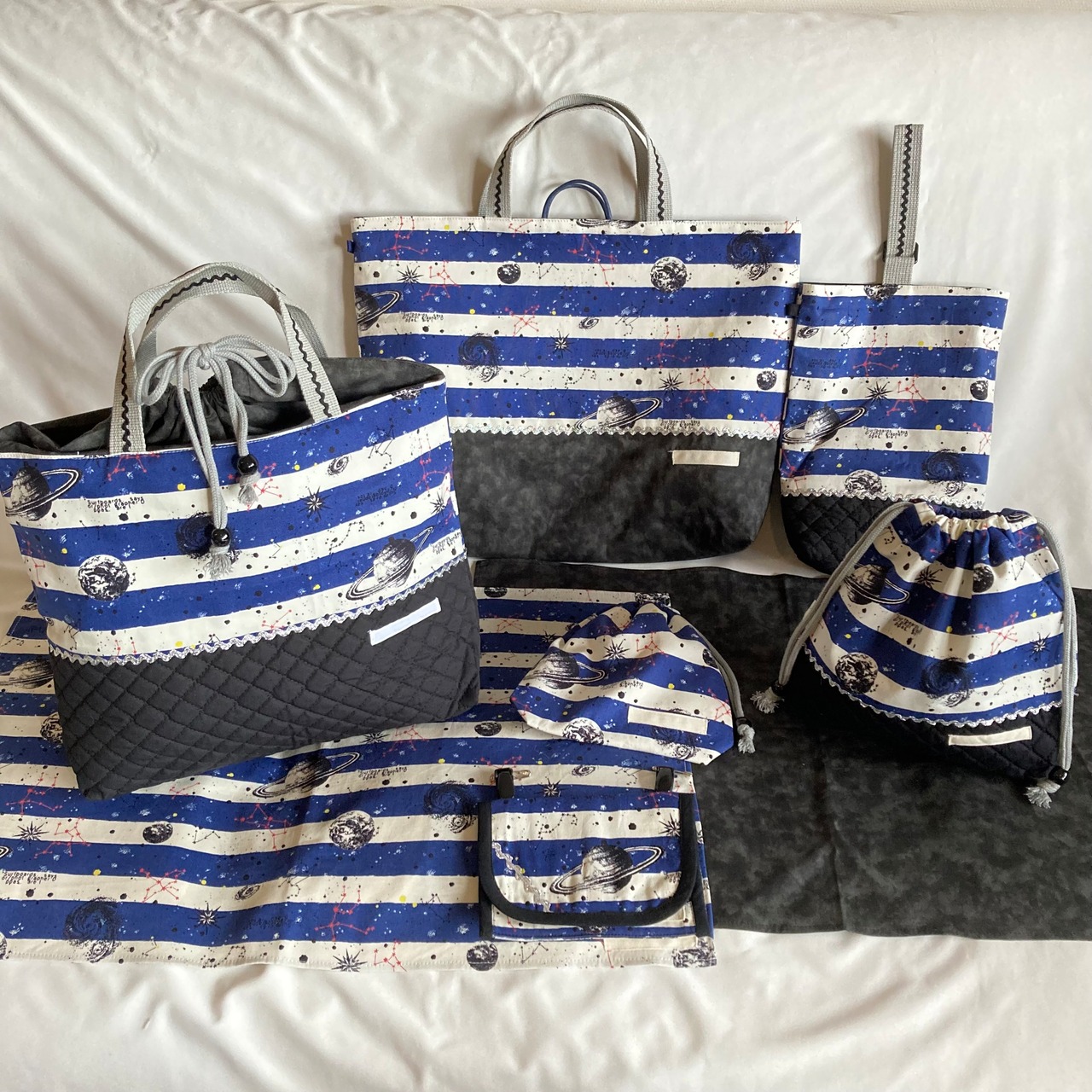 【オーダーOK】入園入学体操着お着替え袋内袋持ち手つき巾着27宇宙ボーダー