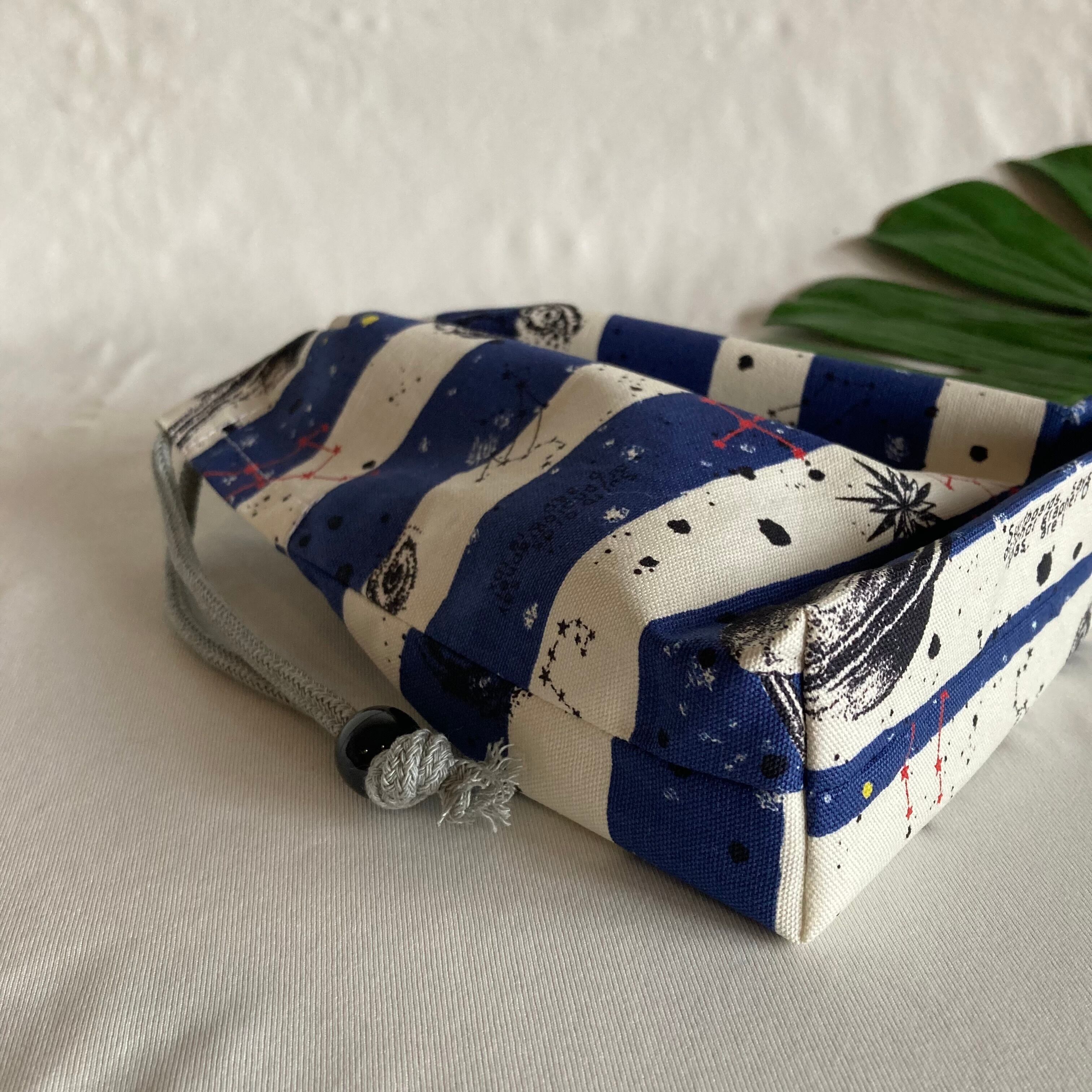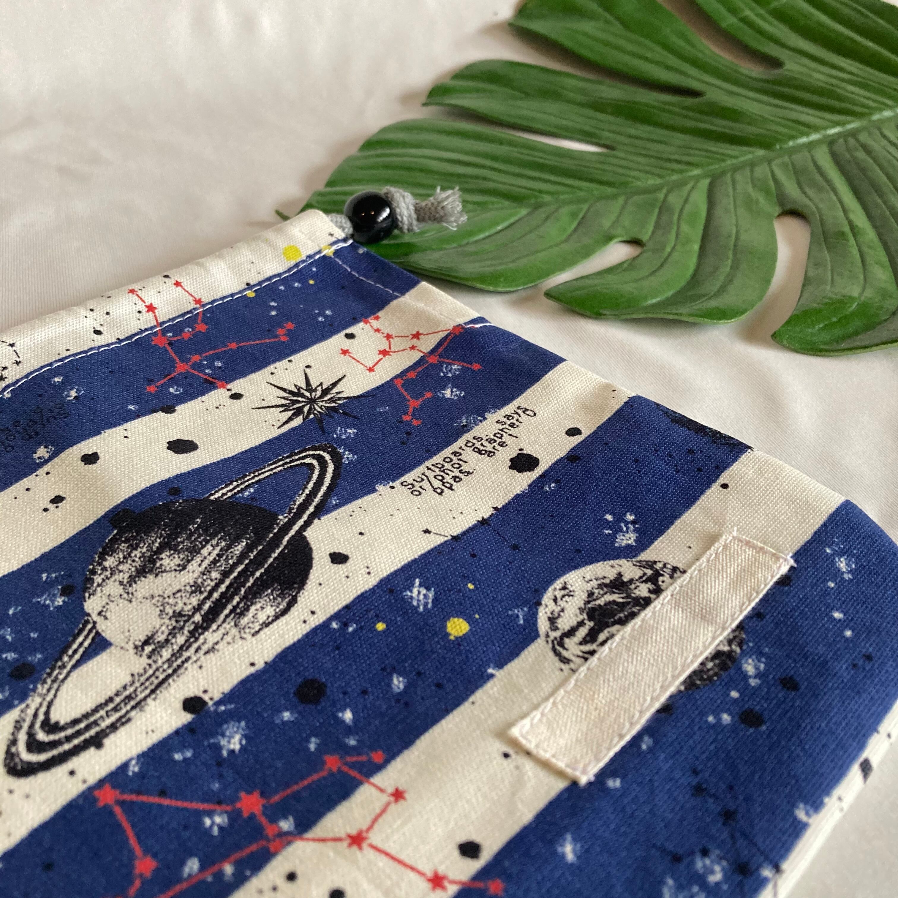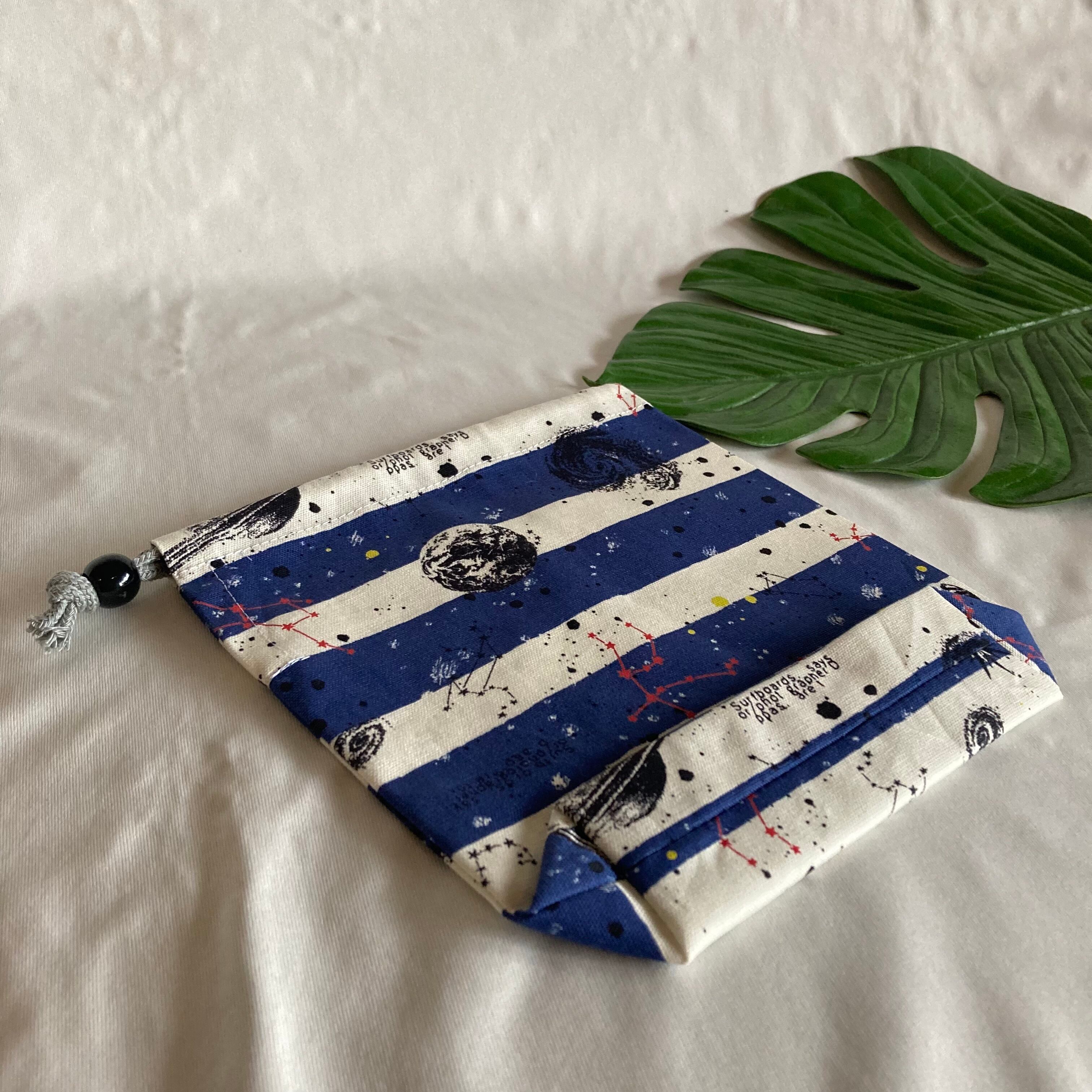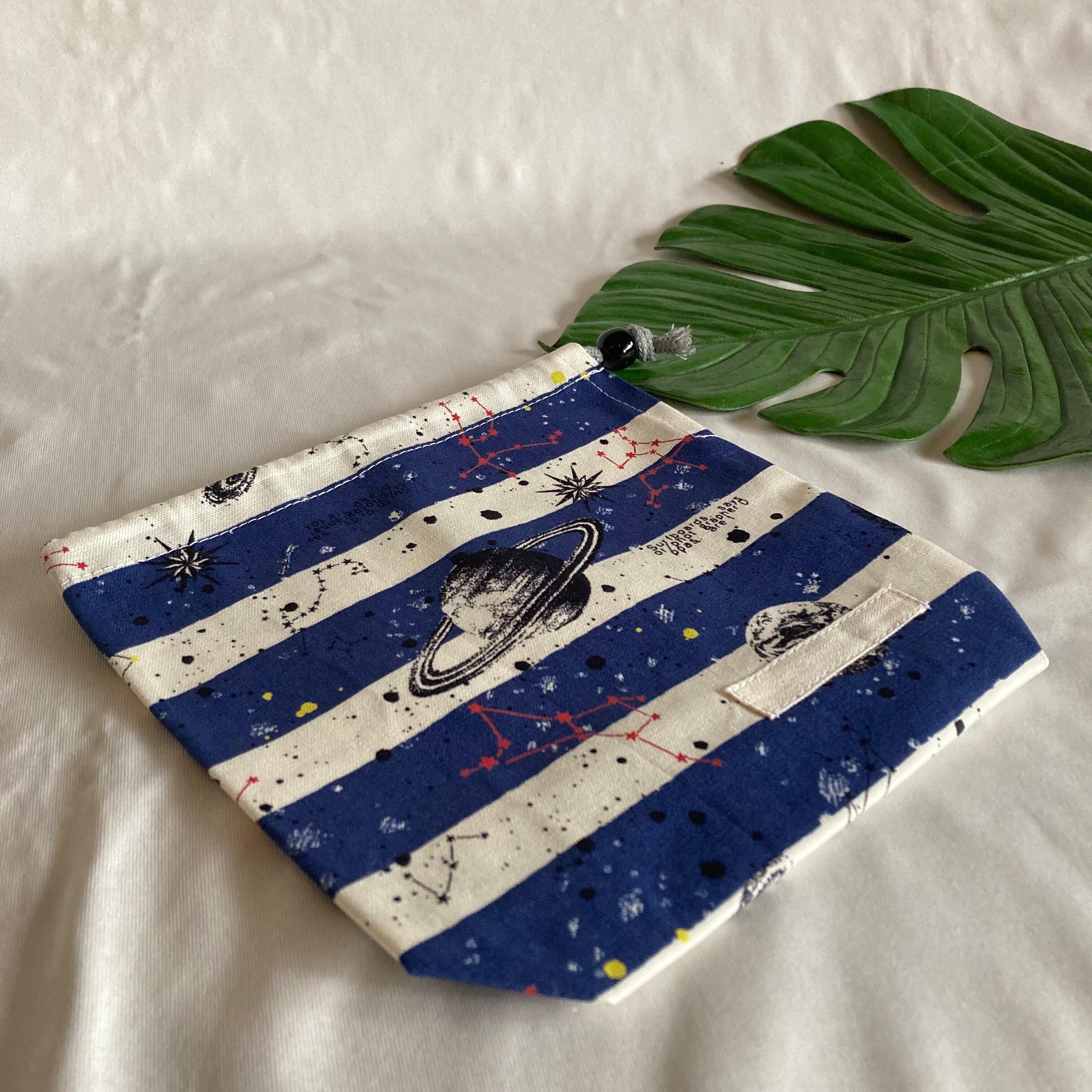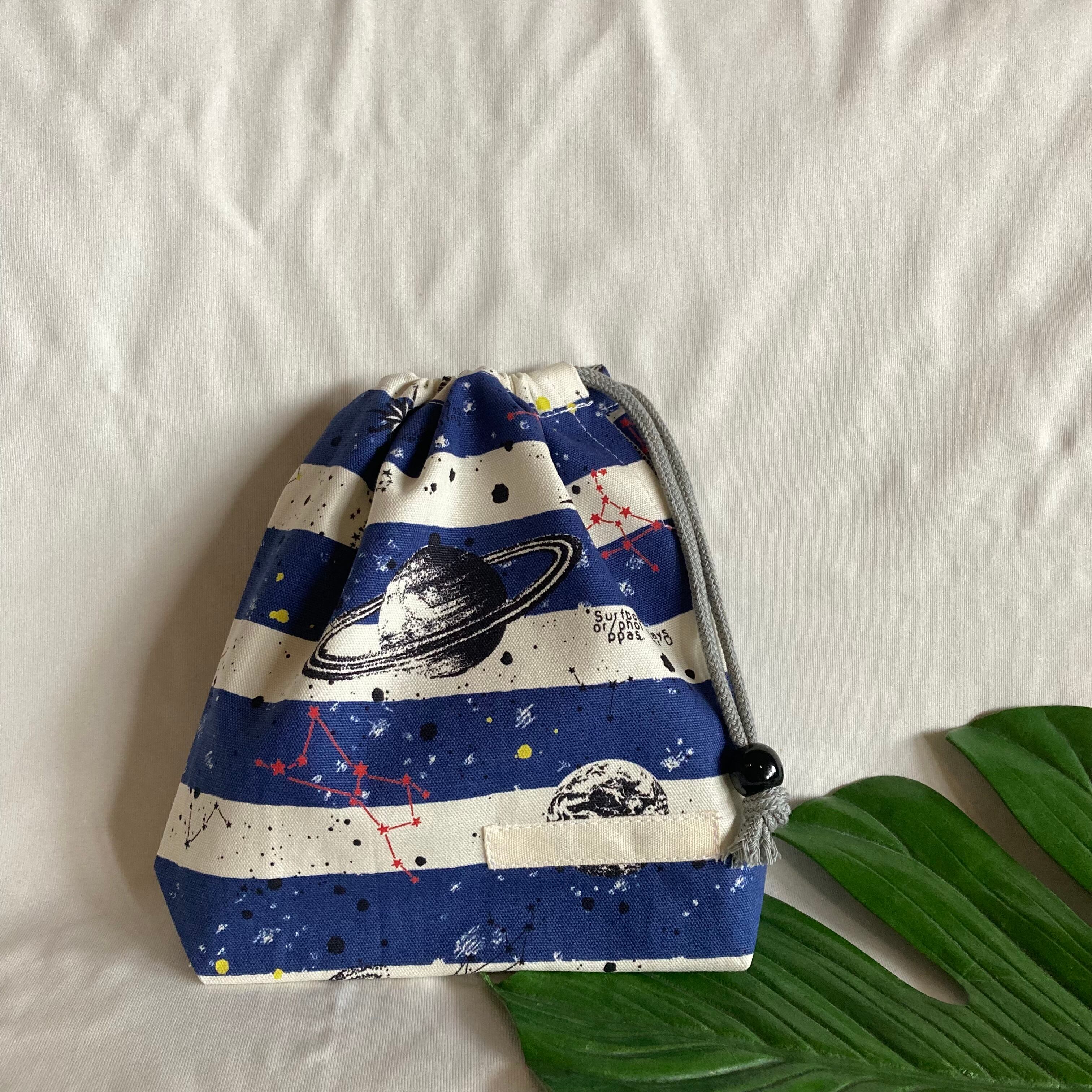 【オーダーOK】入園入学給食袋コップ入れ巾着27宇宙ボーダー惑星地球男の子片方から紐を引く巾着マチ