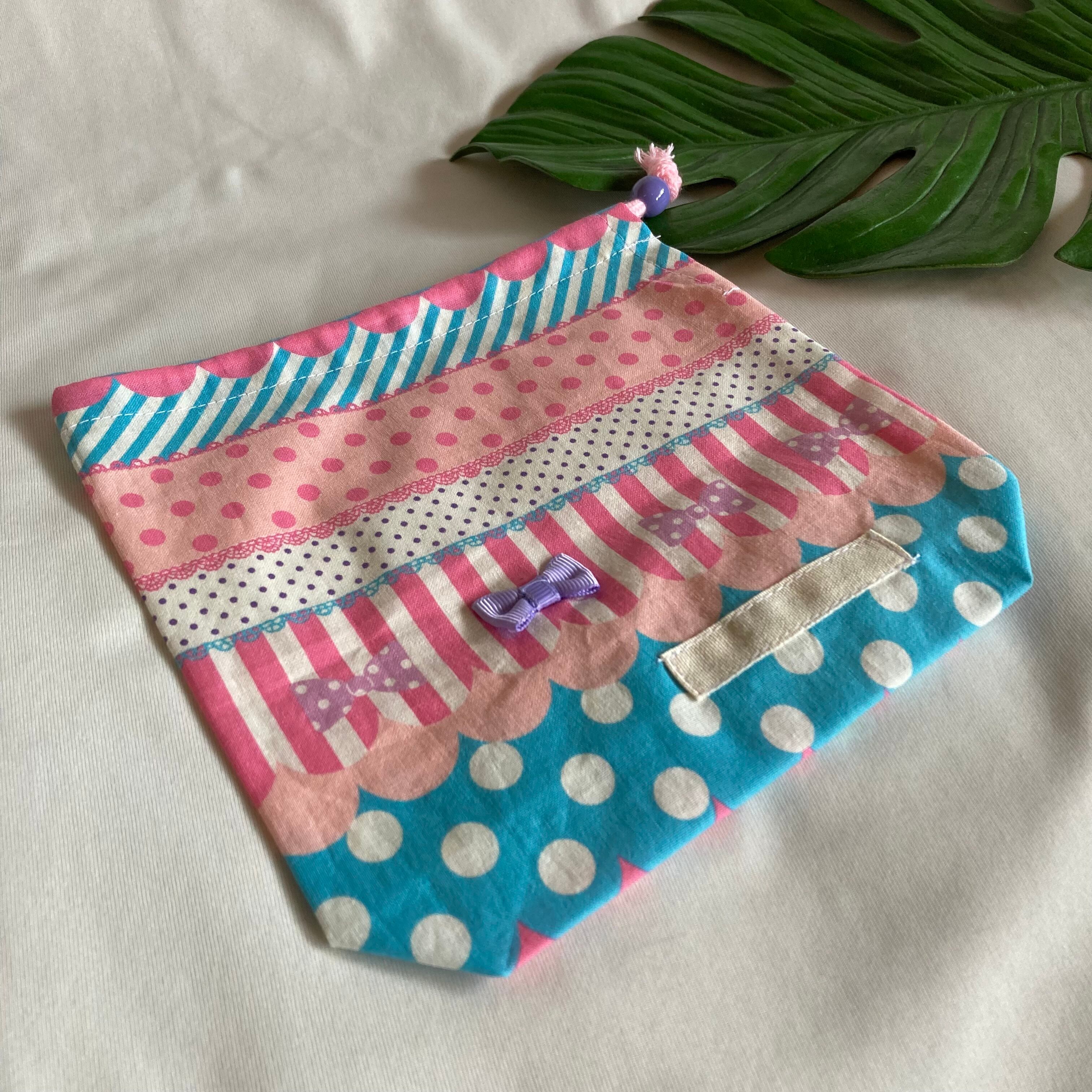 入園入学給食袋コップ入れ巾着07リボン&ドットパステル