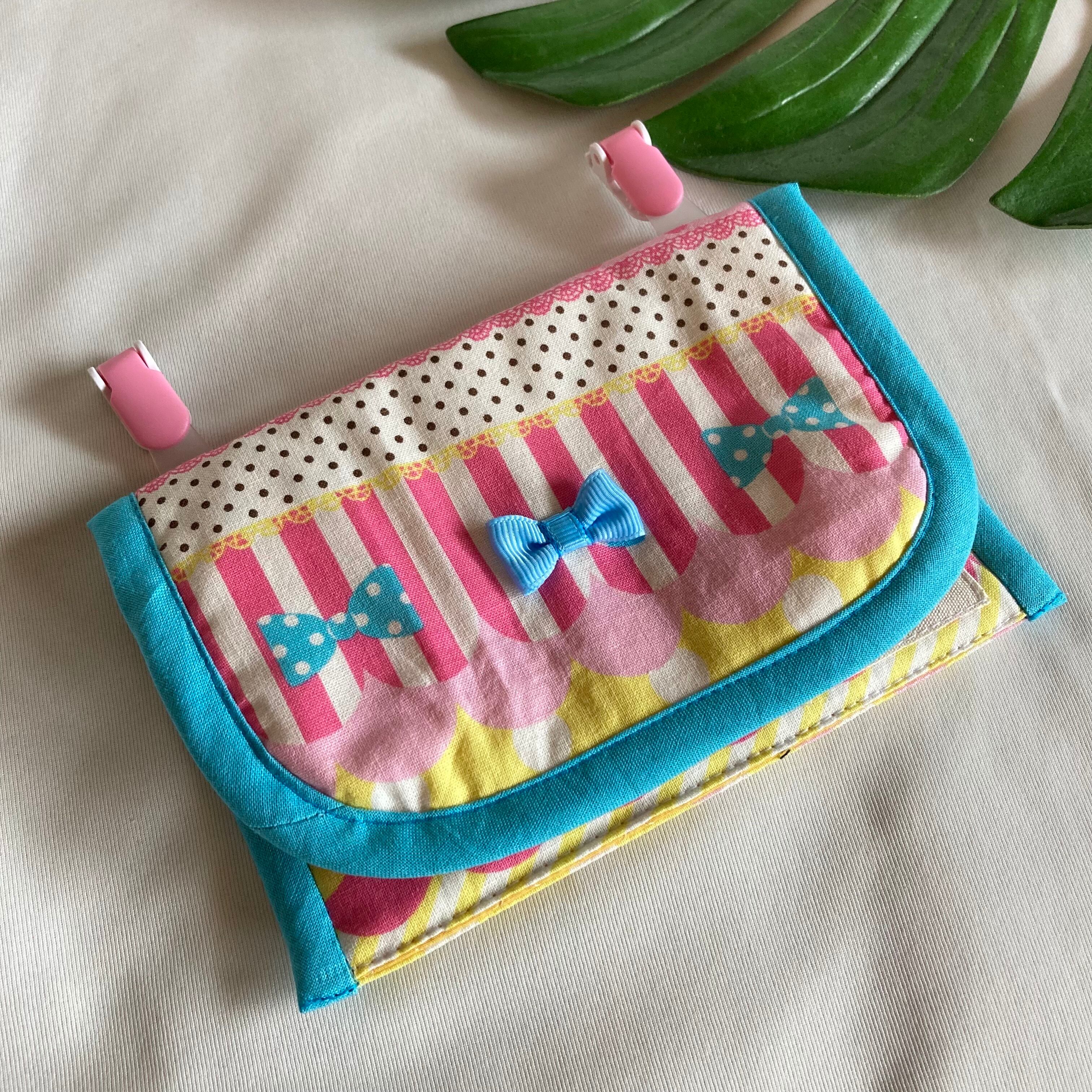 裏キルティング移動ポケット07リボン&ドットパステル★マスクケース入園入学ハンカチティッシュ