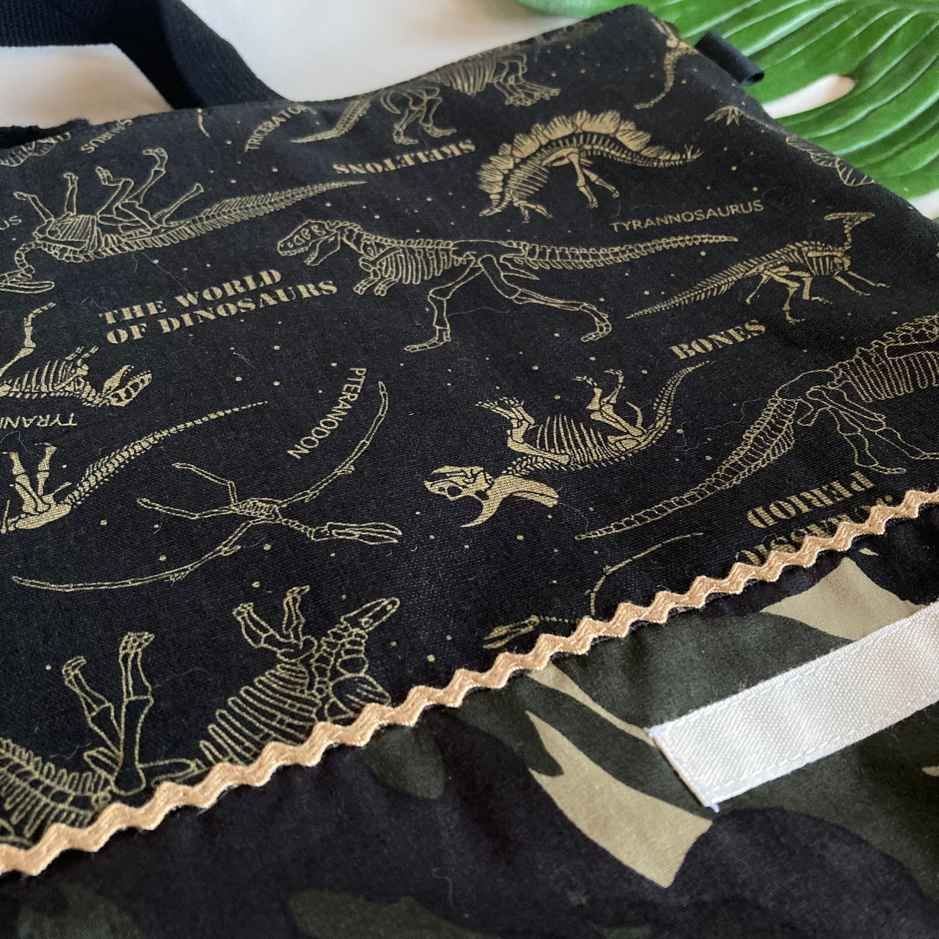 床につかない!入園入学レッスンバッグ手提げ絵本袋リバーシブル65恐竜化石骨★縫い付けお名前小学校マチキルティングポケット男の子持ち手