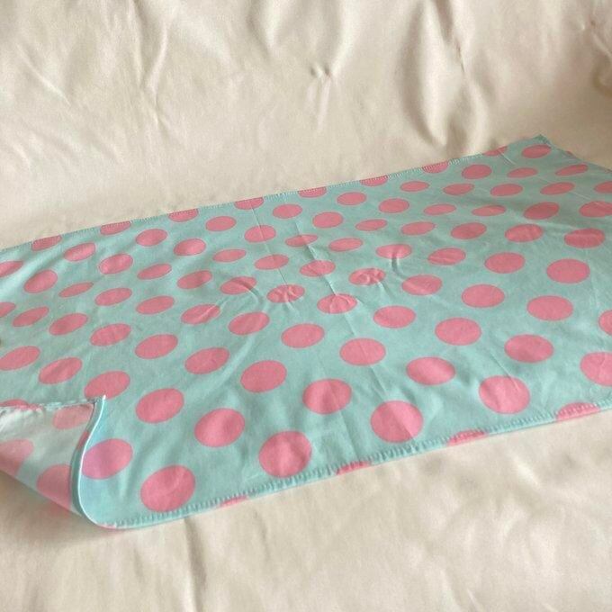 【オーダーOK】入園入学大きいランチョンマット60×40㎝★08パステル水色にドットピンク★給食ナフキンお弁当ランチクロス40×60小学校机くすみニュアンス