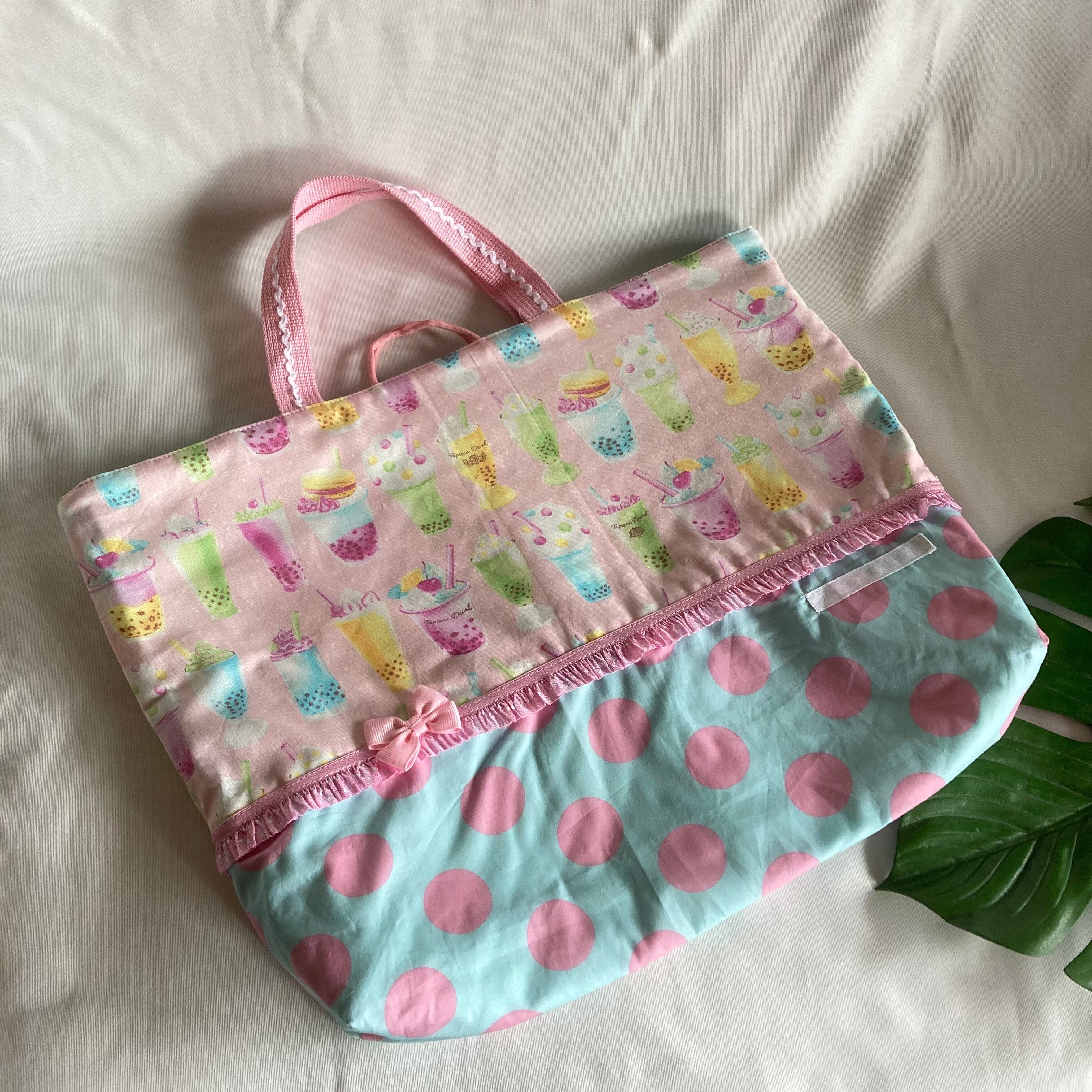 【床につかない!】入園入学レッスンバッグ手提げ絵本袋リバーシブル08タピオカ