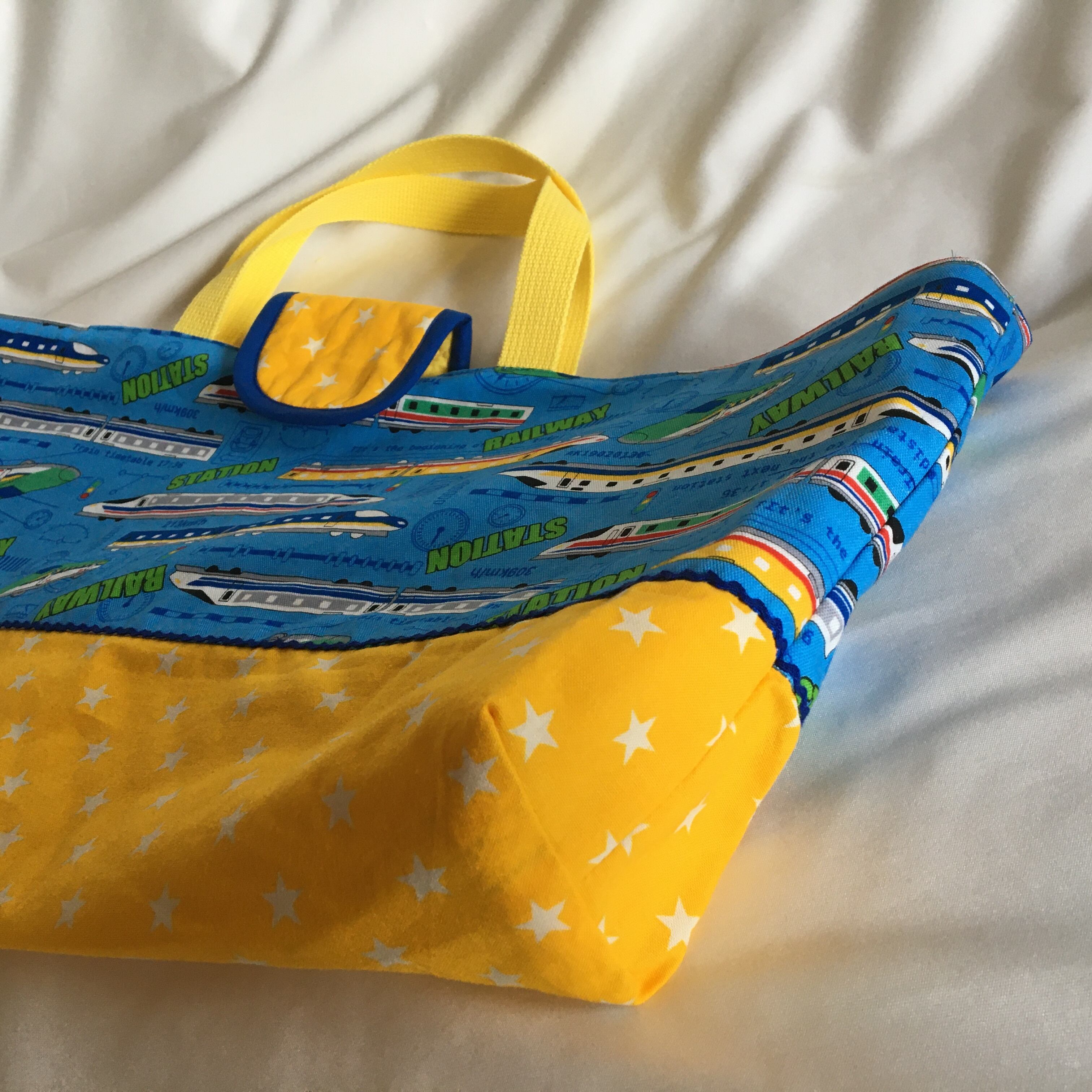 【素材】電車PT、星イエロー、キルティングイエロー、ブレードで飾りました。