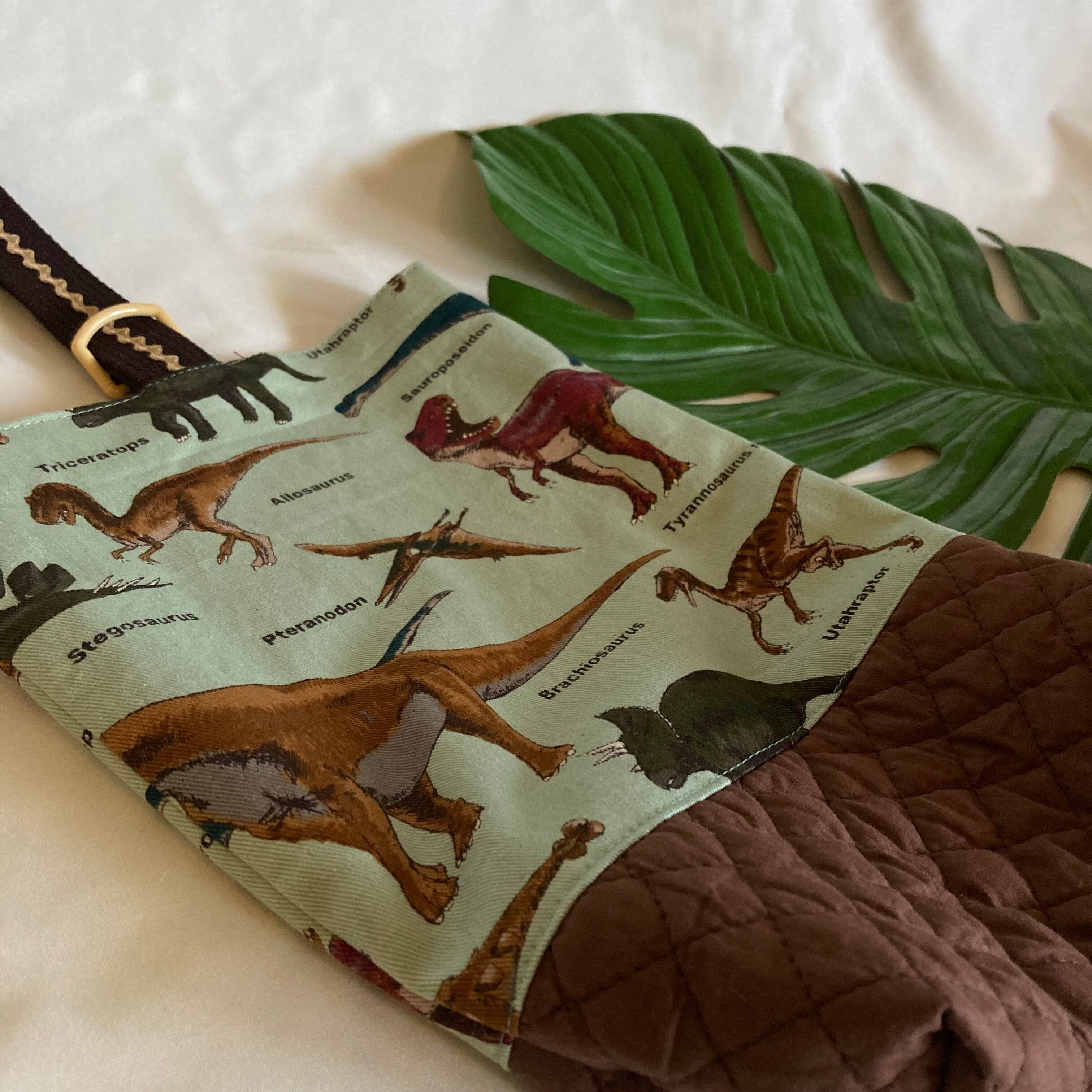 【オーダーOK】入園入学シューズケース上履き袋リバーシブル37恐竜大行進★縫い付けお名前小学校キルティングマチ★ラッピングプレゼント誕生日クリスマスDカン持ち手くすみニュアンス
