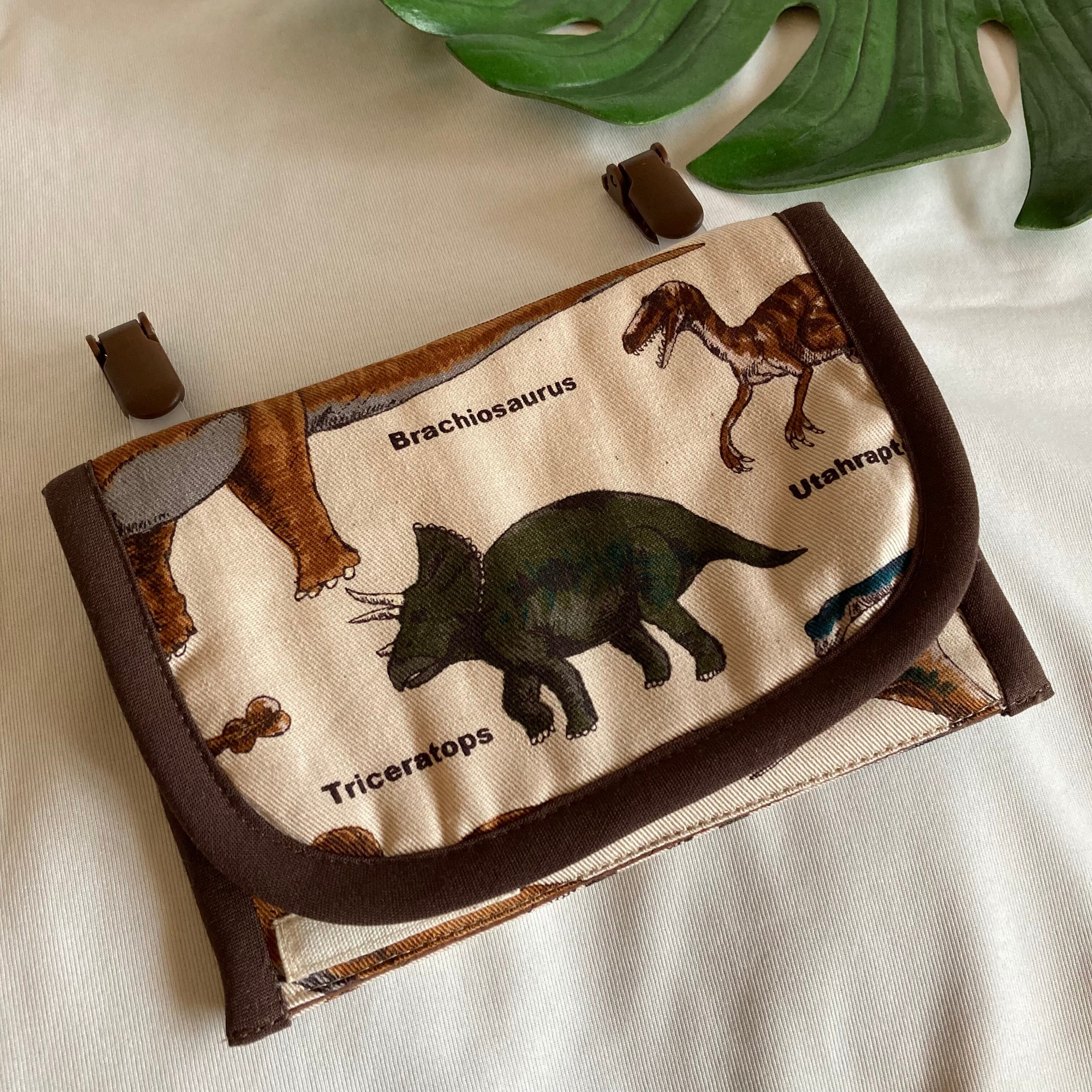 【オーダーOK】裏キルティング移動ポケット37恐竜大行進ティラノサウルスアロサウルス★入園入学マスクケースハンカチティッシュマルチポケット★縫い付けお名前小学校お出かけポーチ習い事クリップ安全ピンくすみニュアンスパステル