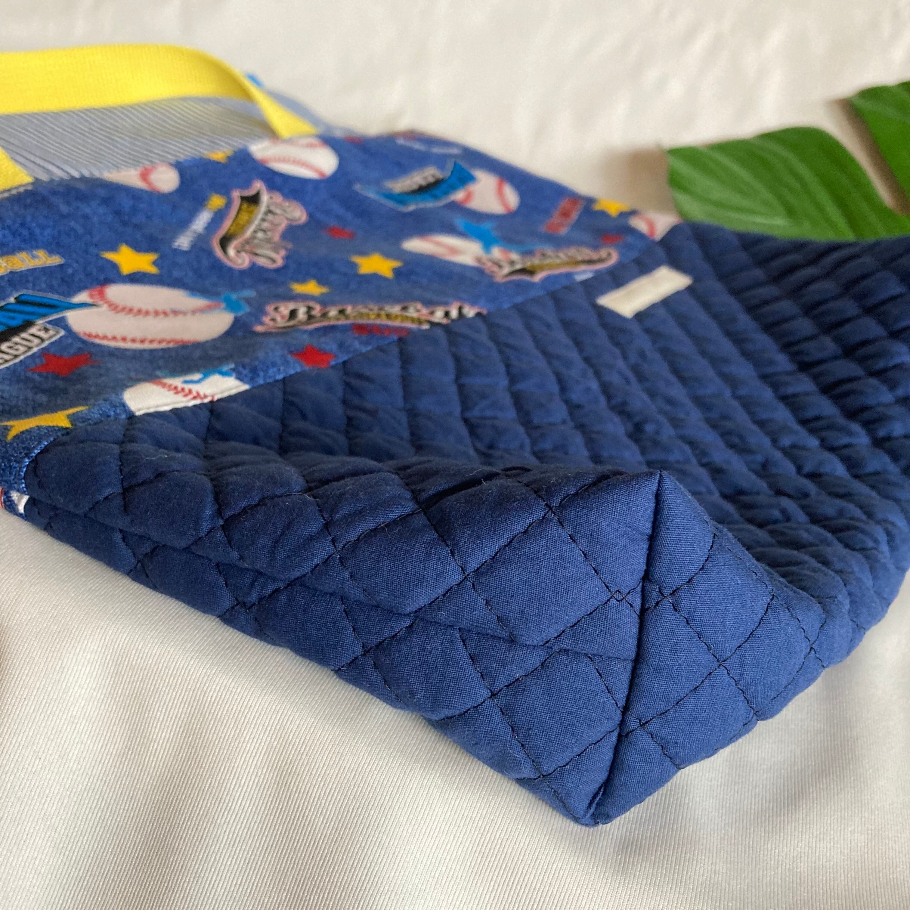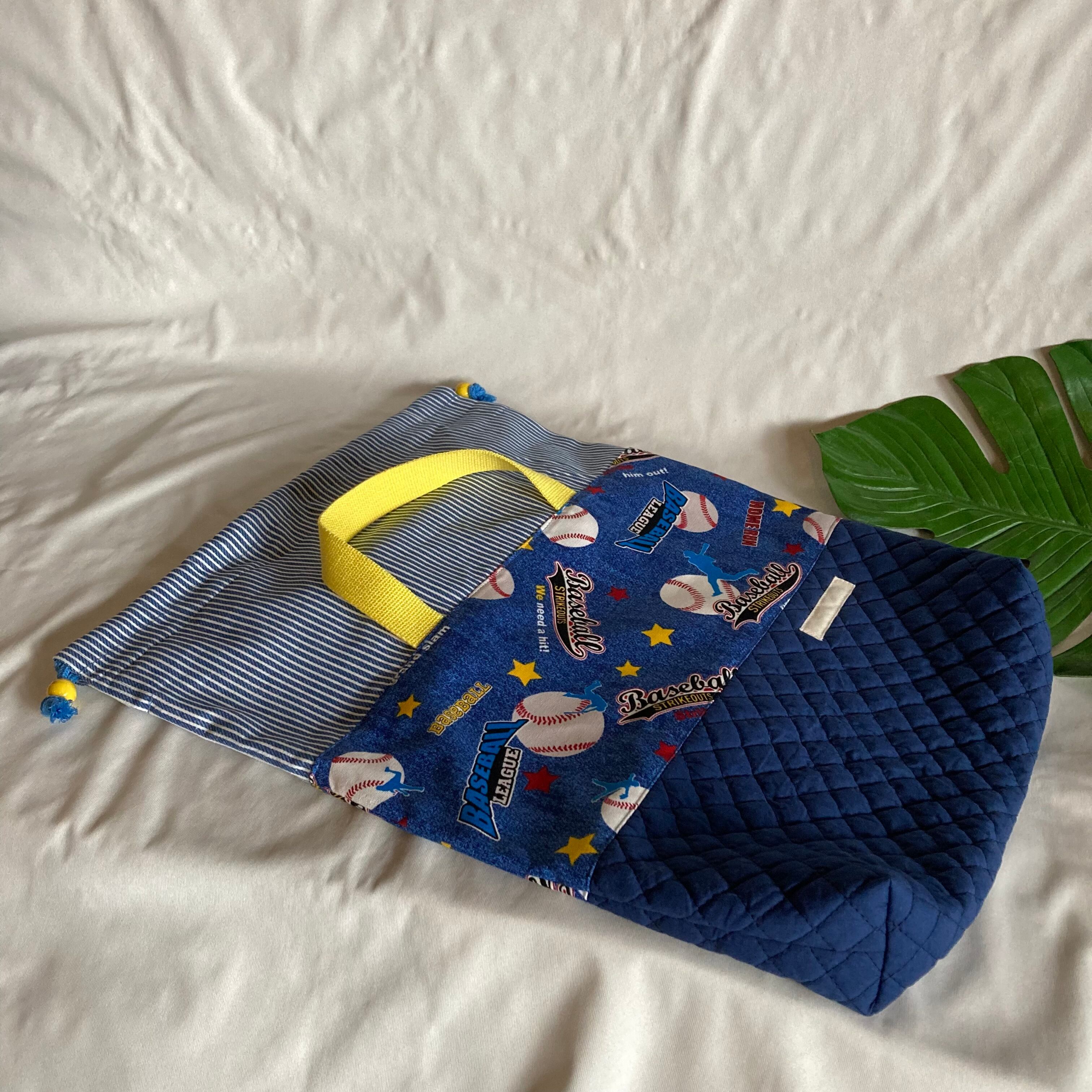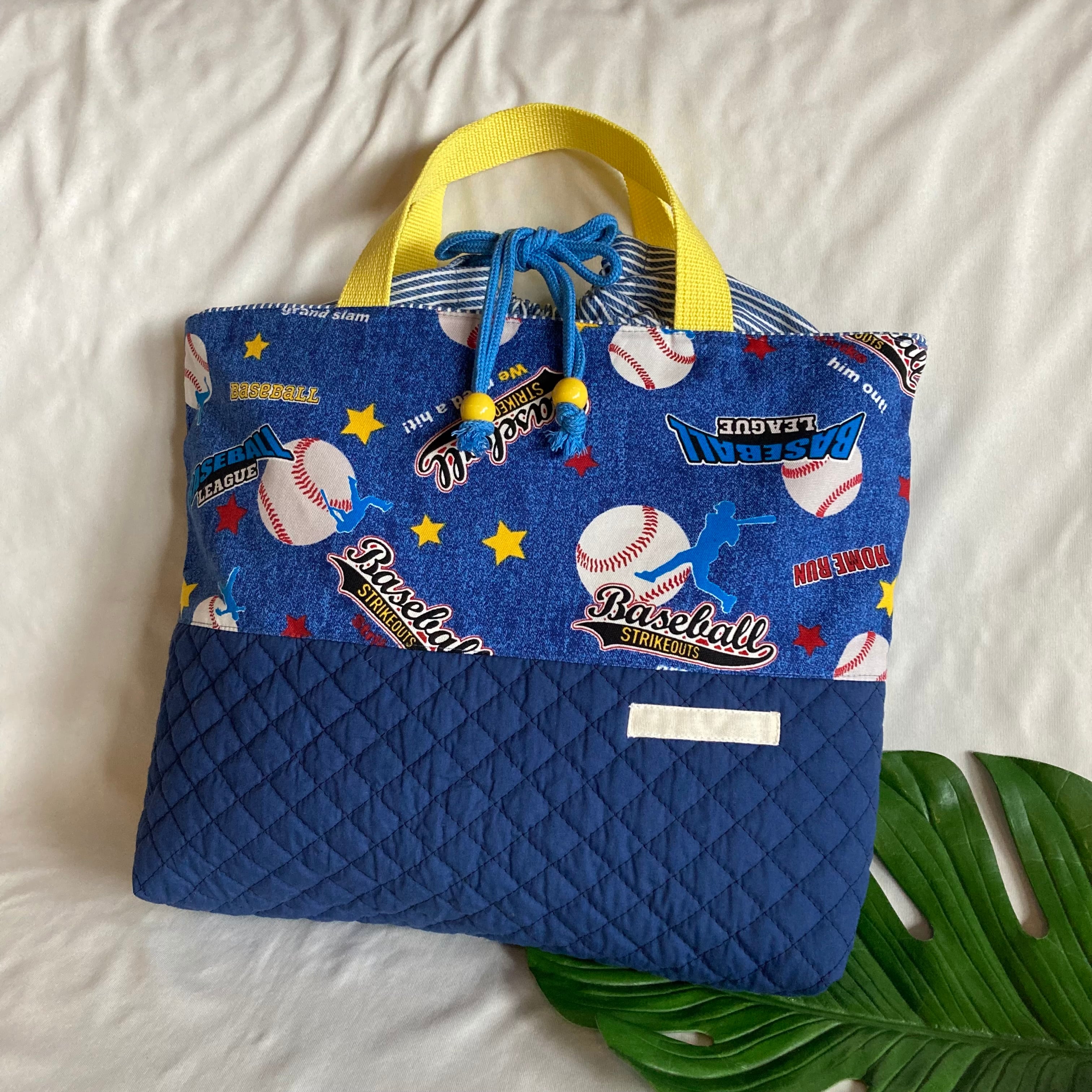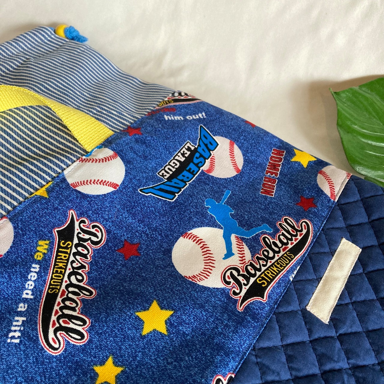 【オーダーOK】入園入学体操着お着替え袋持ち手内袋裏地巾着02野球スポーツ★縫い付けお名前幼稚園小学校キルティングマチヒッコリーデニムストライプ★ラッピングプレゼント誕生日クリスマス