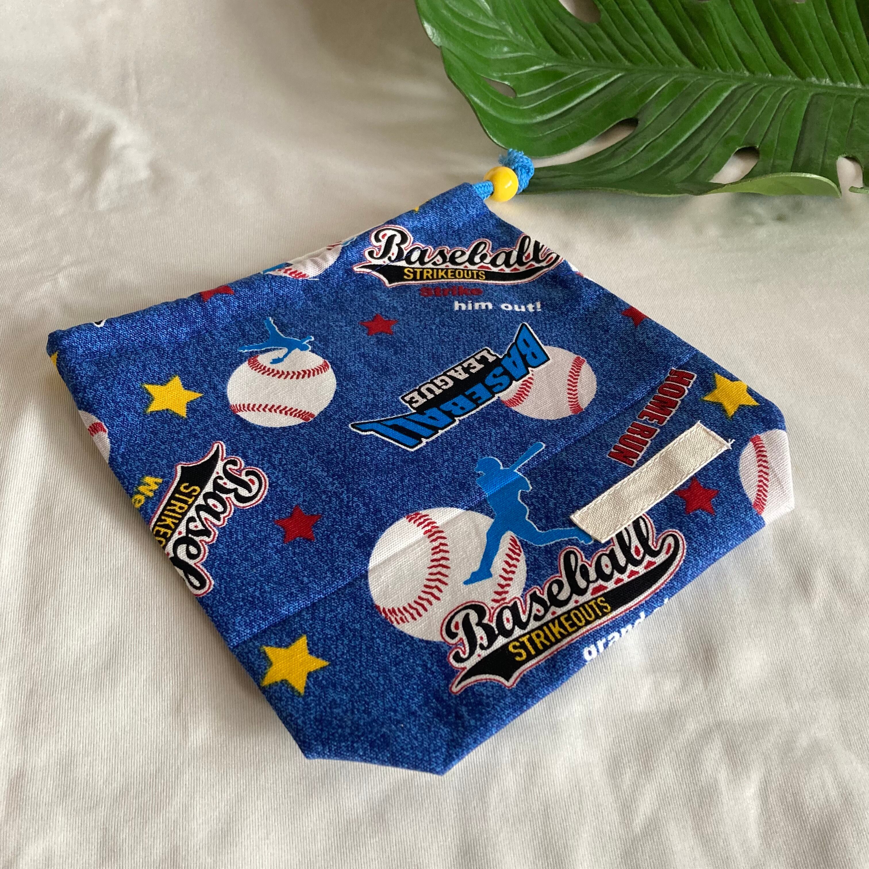 【オーダーOK】入園入学給食袋コップ入れ巾着マチ02野球スポーツ★サイズオーダー片方から紐を引く巾着お名前スペース男の子