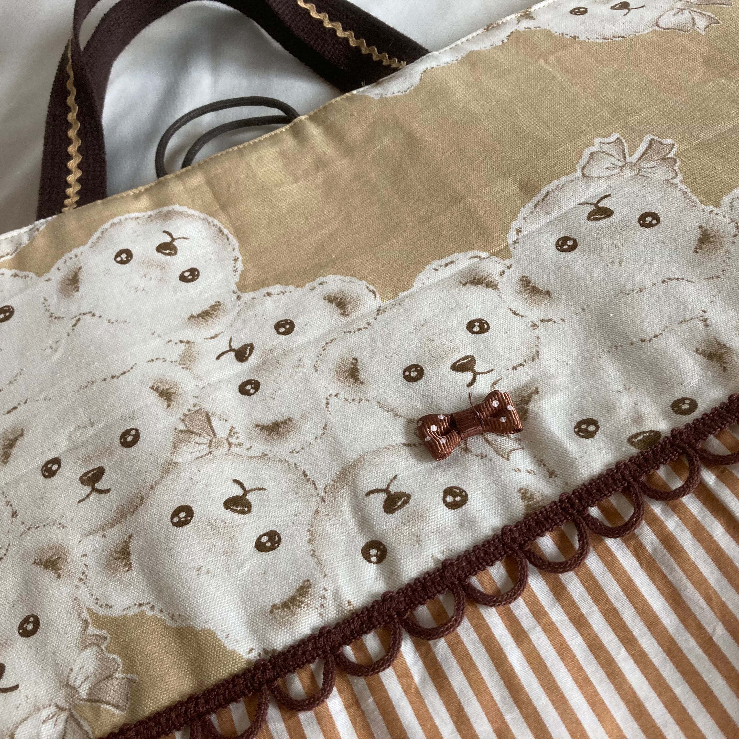【床につかない!!】入園入学レッスンバッグ手提げ絵本袋リバーシブル55テディベアくまちゃん