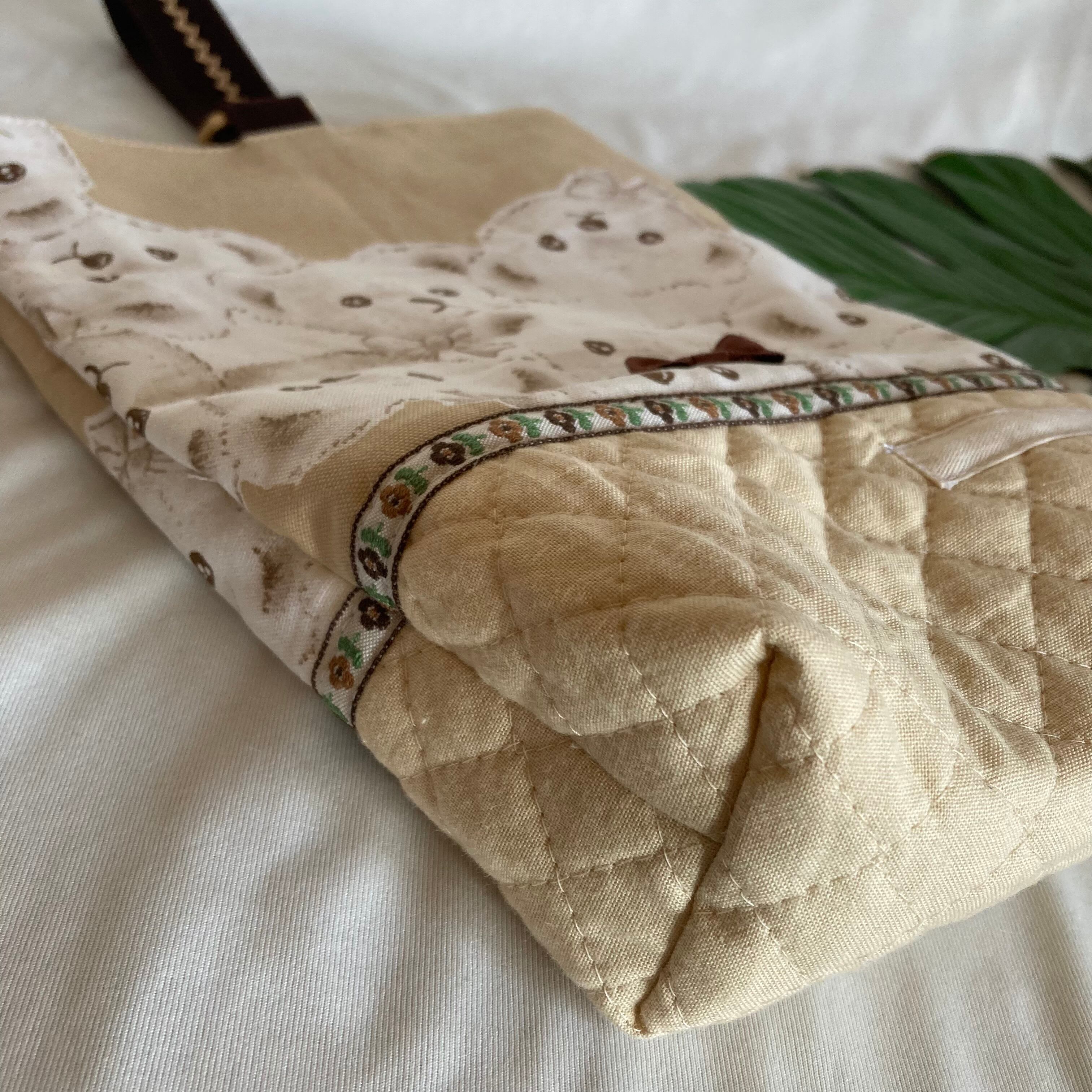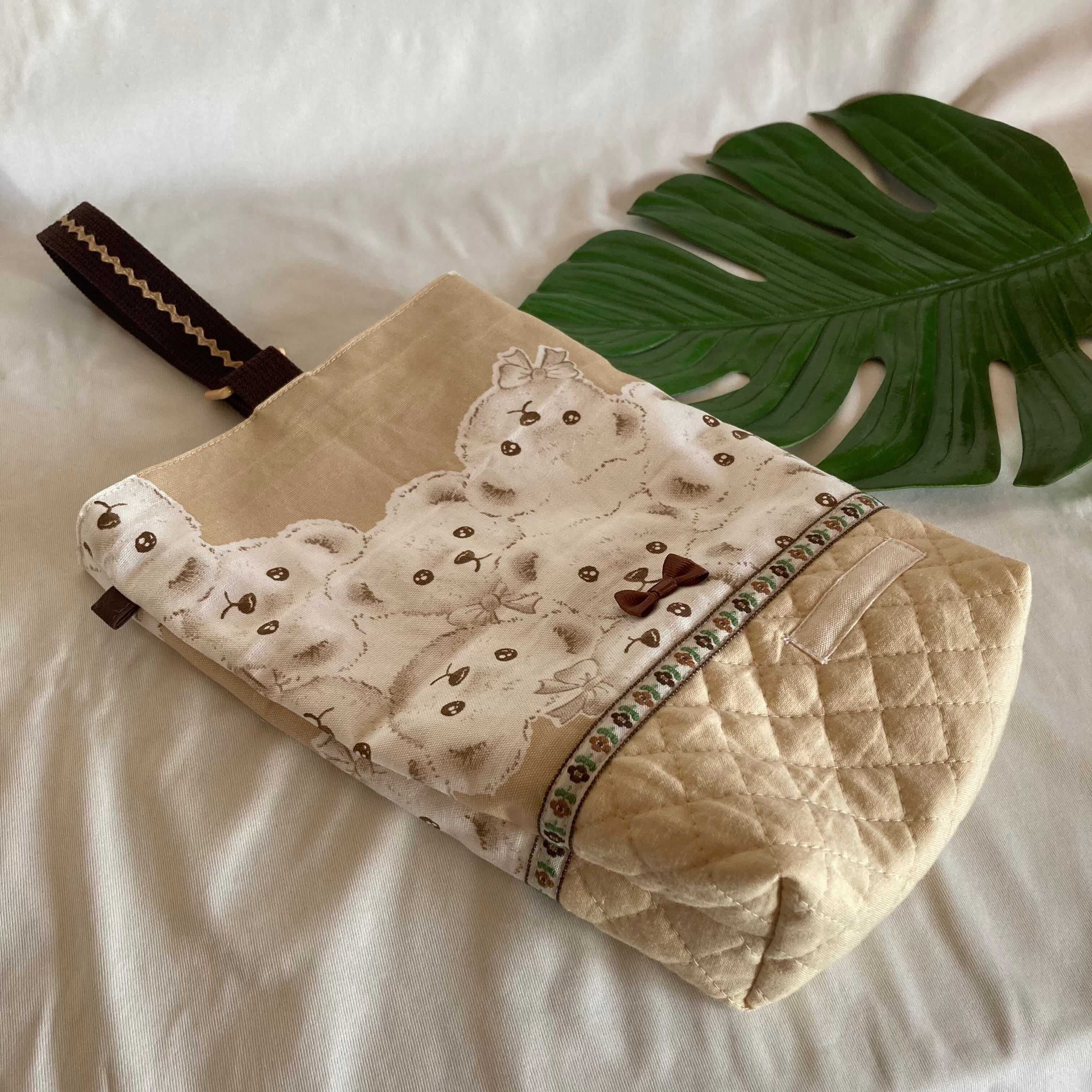 入園入学シューズケース上履き袋リバーシブル上靴55テディベアくまちゃん動物キルティングマチ切り替えリボン女の子くすみニュアンスパステル