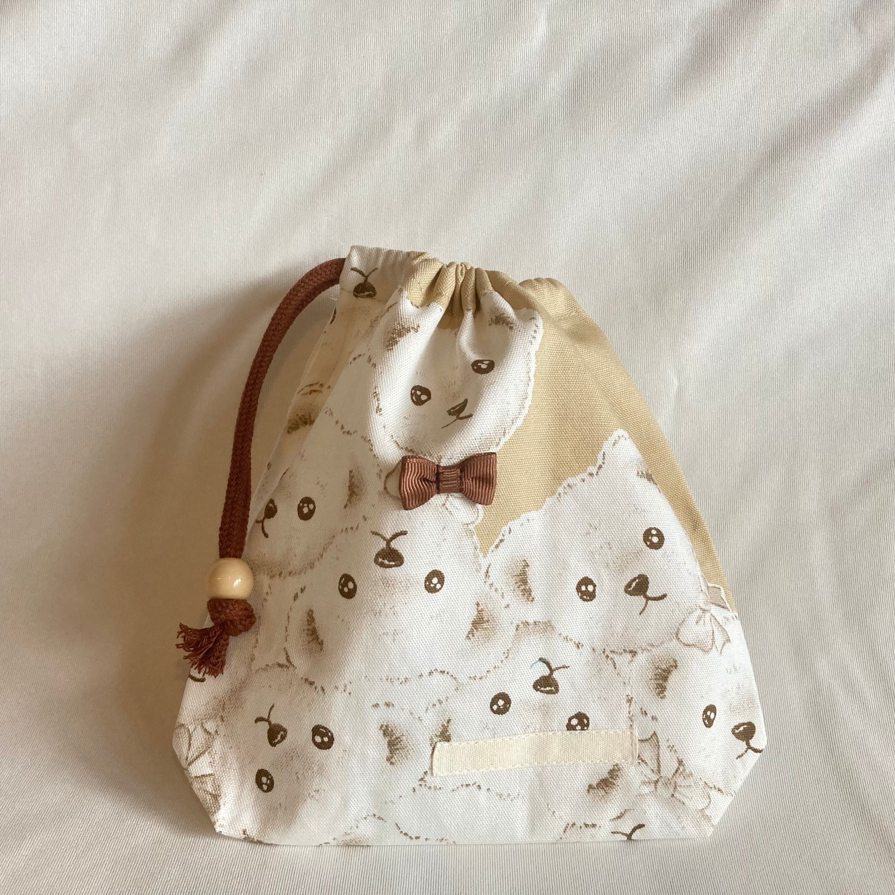 【オーダーOK】入園入学給食袋コップ入れ巾着55テディベアくまちゃん