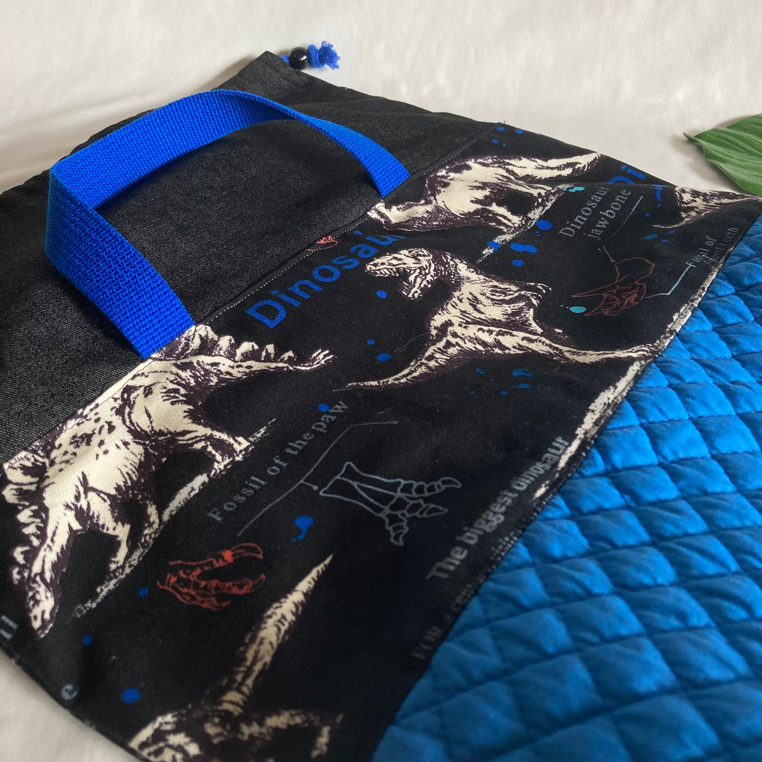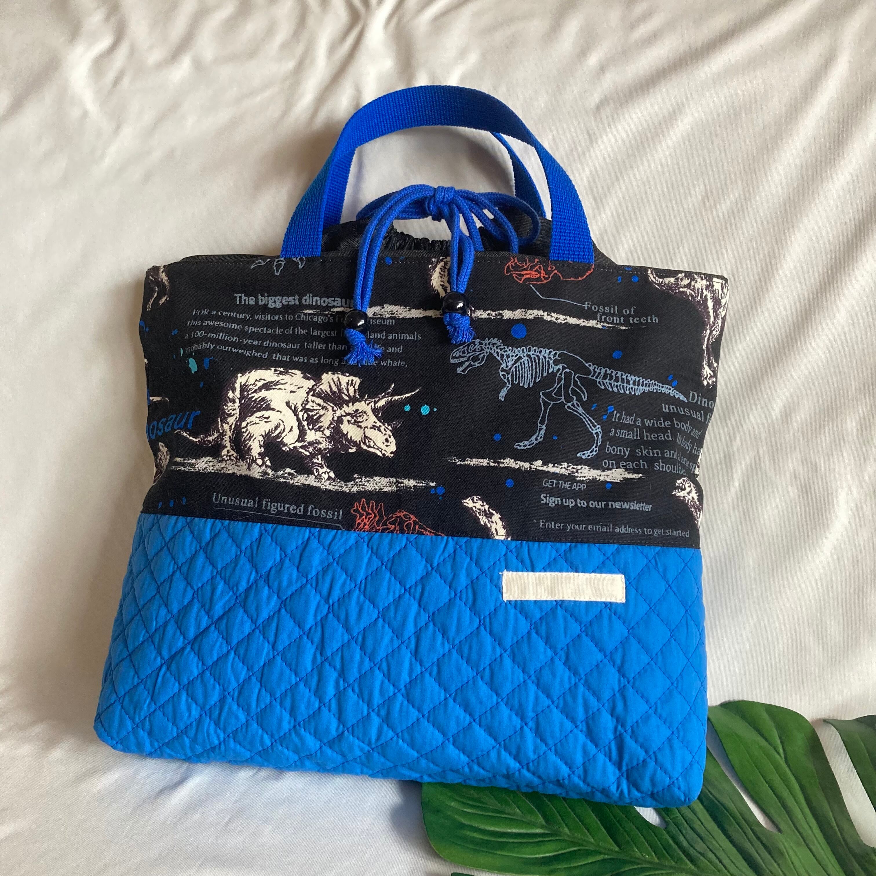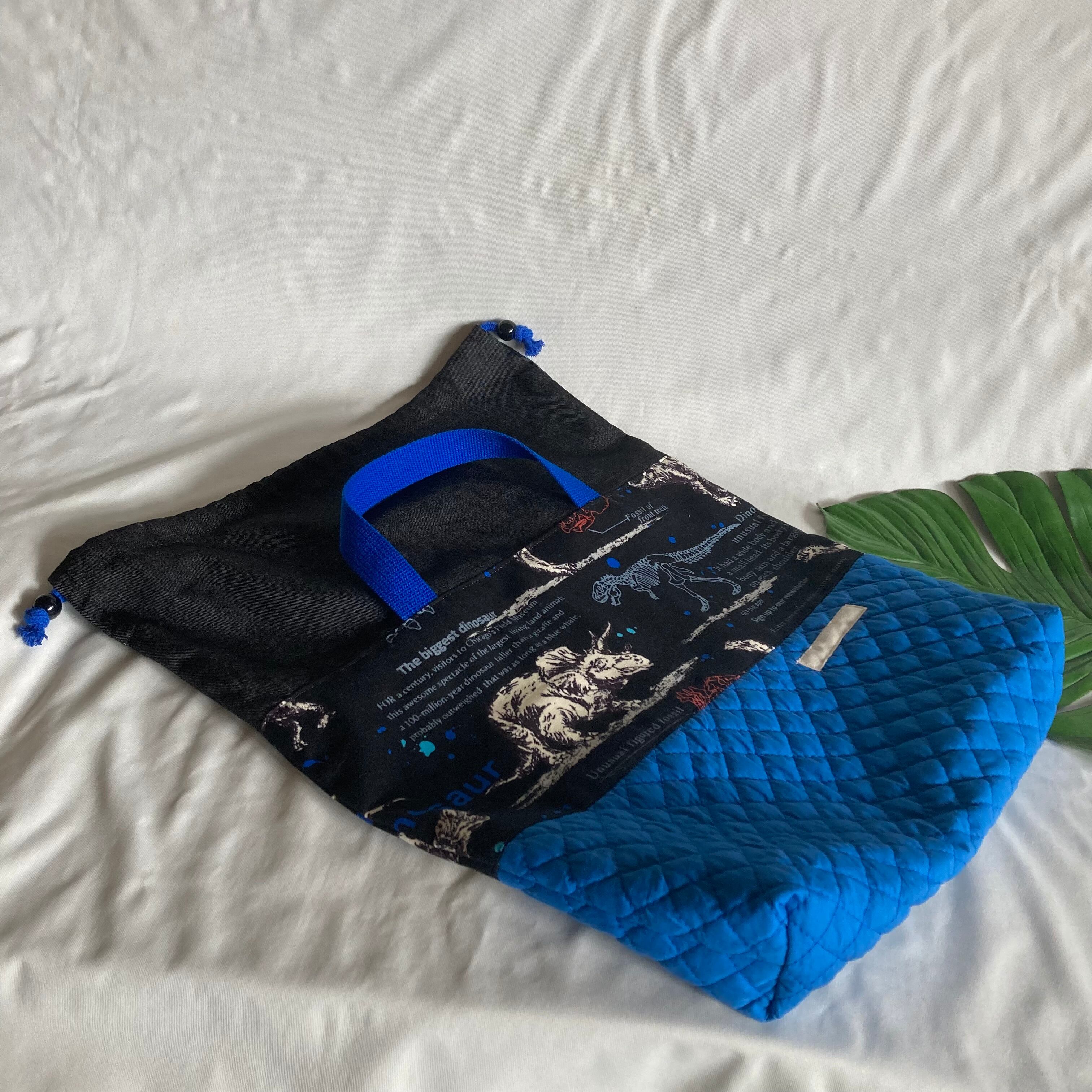 入園入学体操着お着替え袋持ち手内袋巾着44迫力の恐竜化石ティラノサウルストリケラトプスアロサウルス★縫い付けお名前小学校キルティングマチ★ラッピングプレゼント誕生日クリスマスカラーデニム小学校