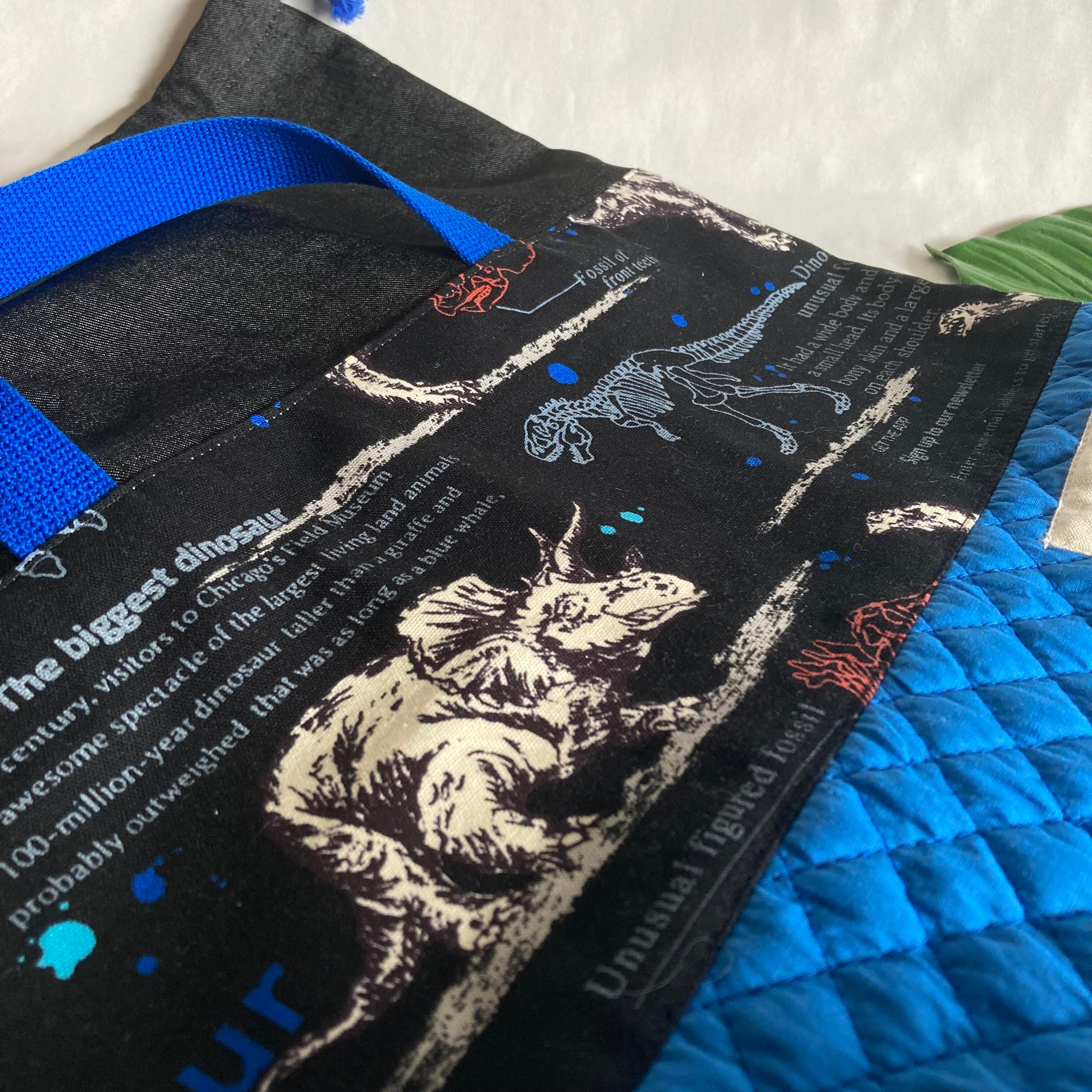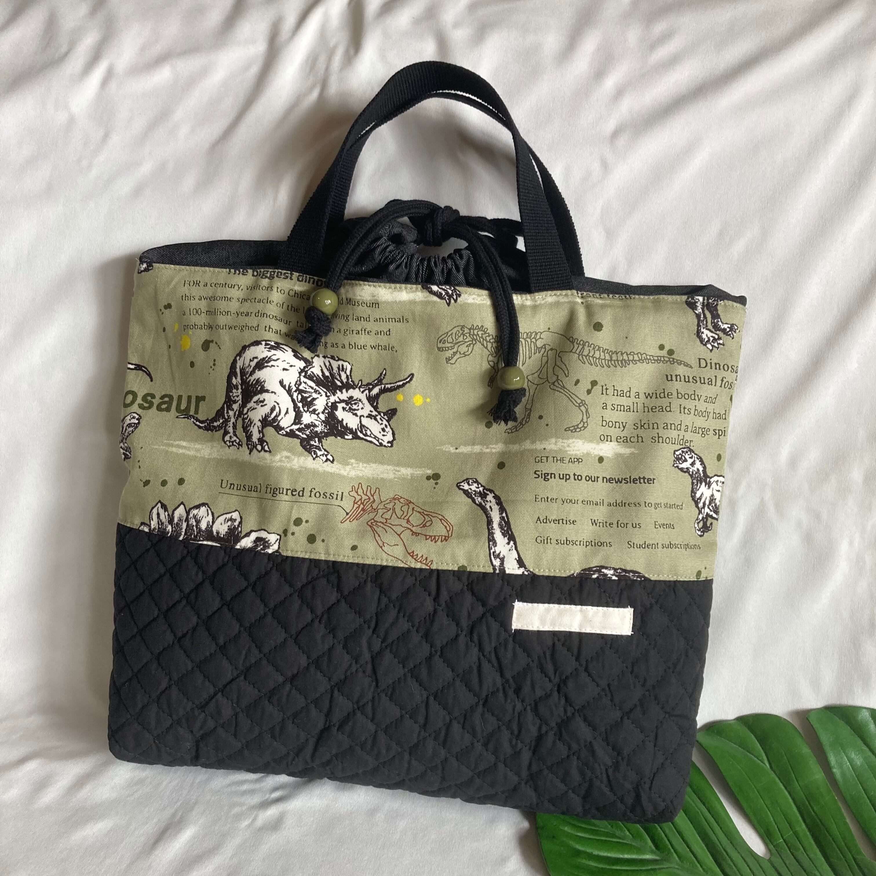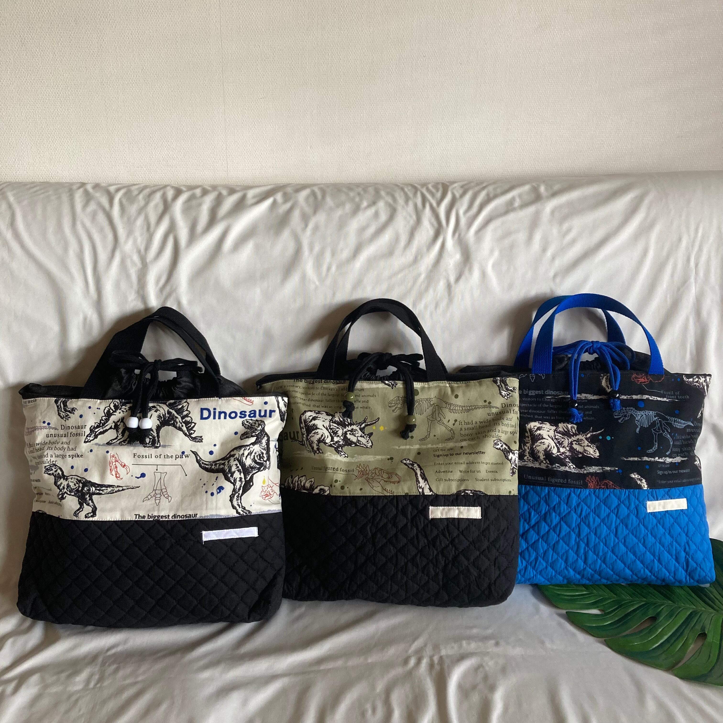 入園入学体操着お着替え袋持ち手内袋巾着44迫力の恐竜化石ティラノサウルストリケラトプスアロサウルス★縫い付けお名前小学校キルティングマチ★ラッピングプレゼント誕生日クリスマスカラーデニム小学校