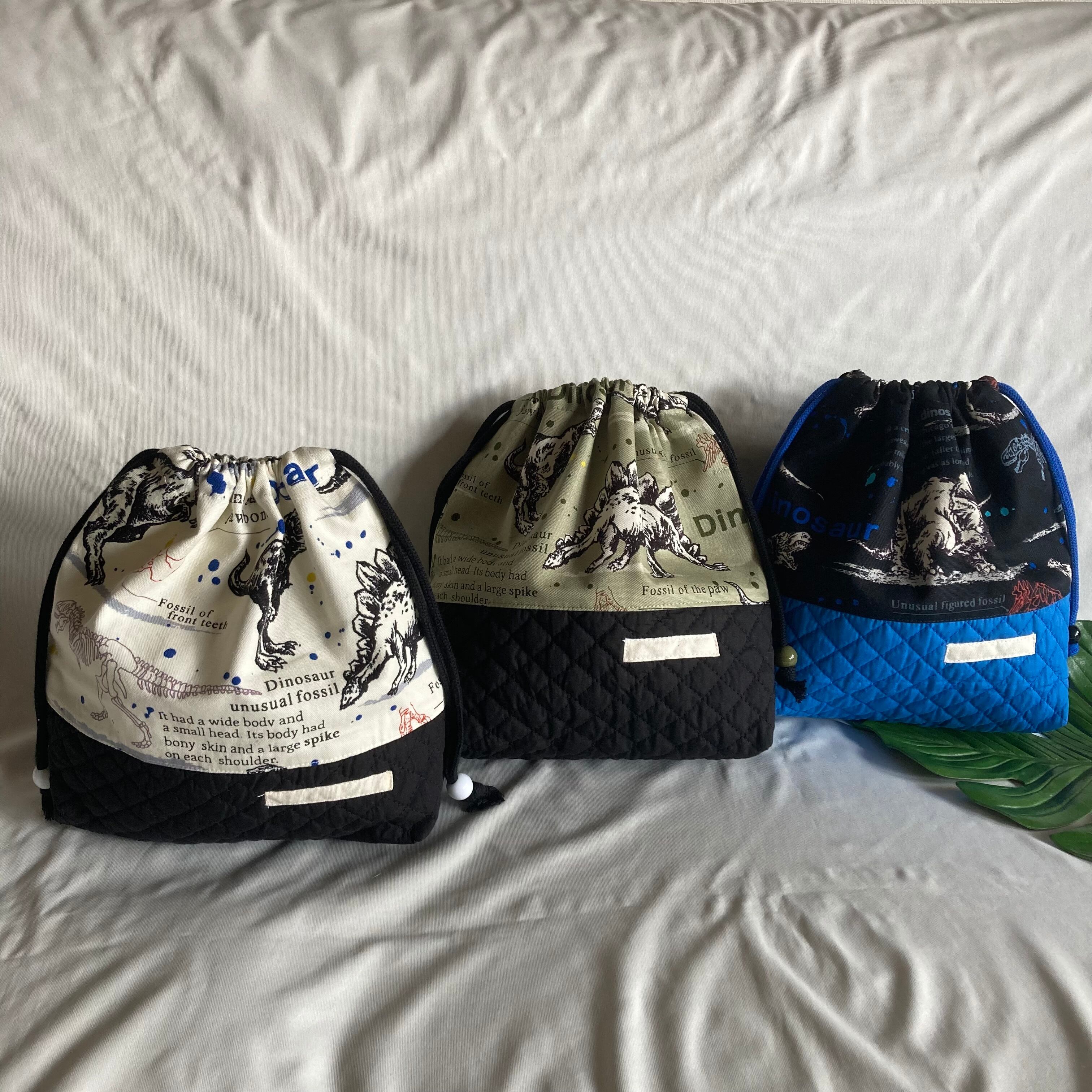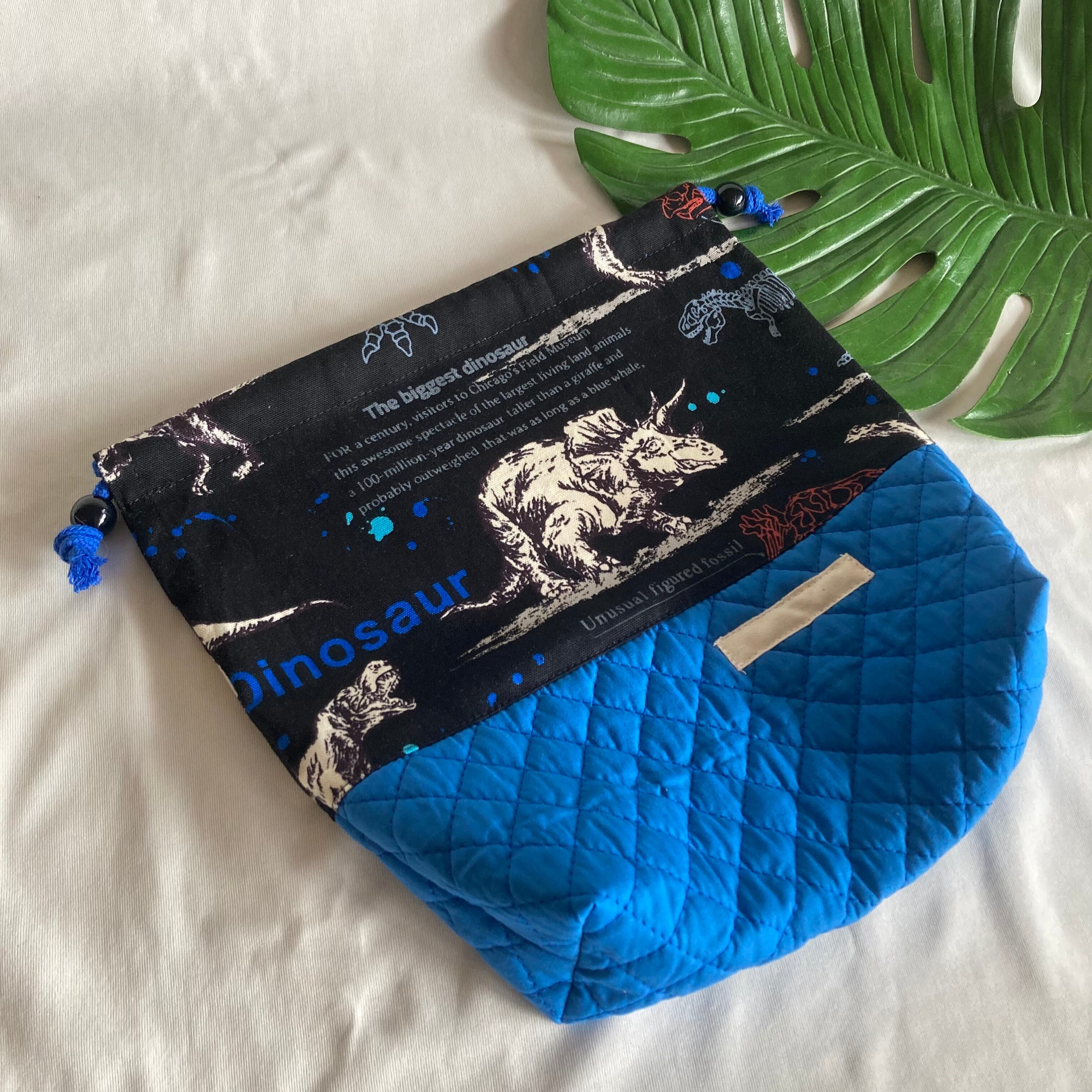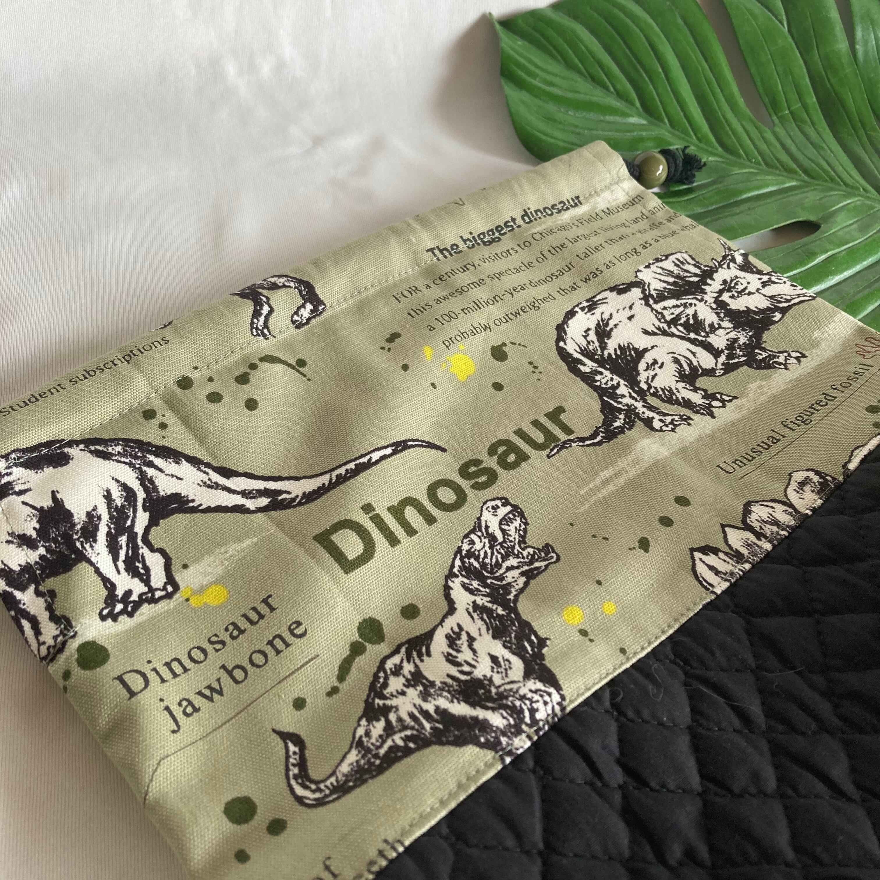 【オーダーOK】入園入学ランチバッグお弁当入れ巾着44迫力の恐竜化石ティラノサウルストリケラトプスアロサウルス★縫い付けお名前小学校キルティングマチ★ラッピングプレゼント誕生日クリスマス男の子小学校
