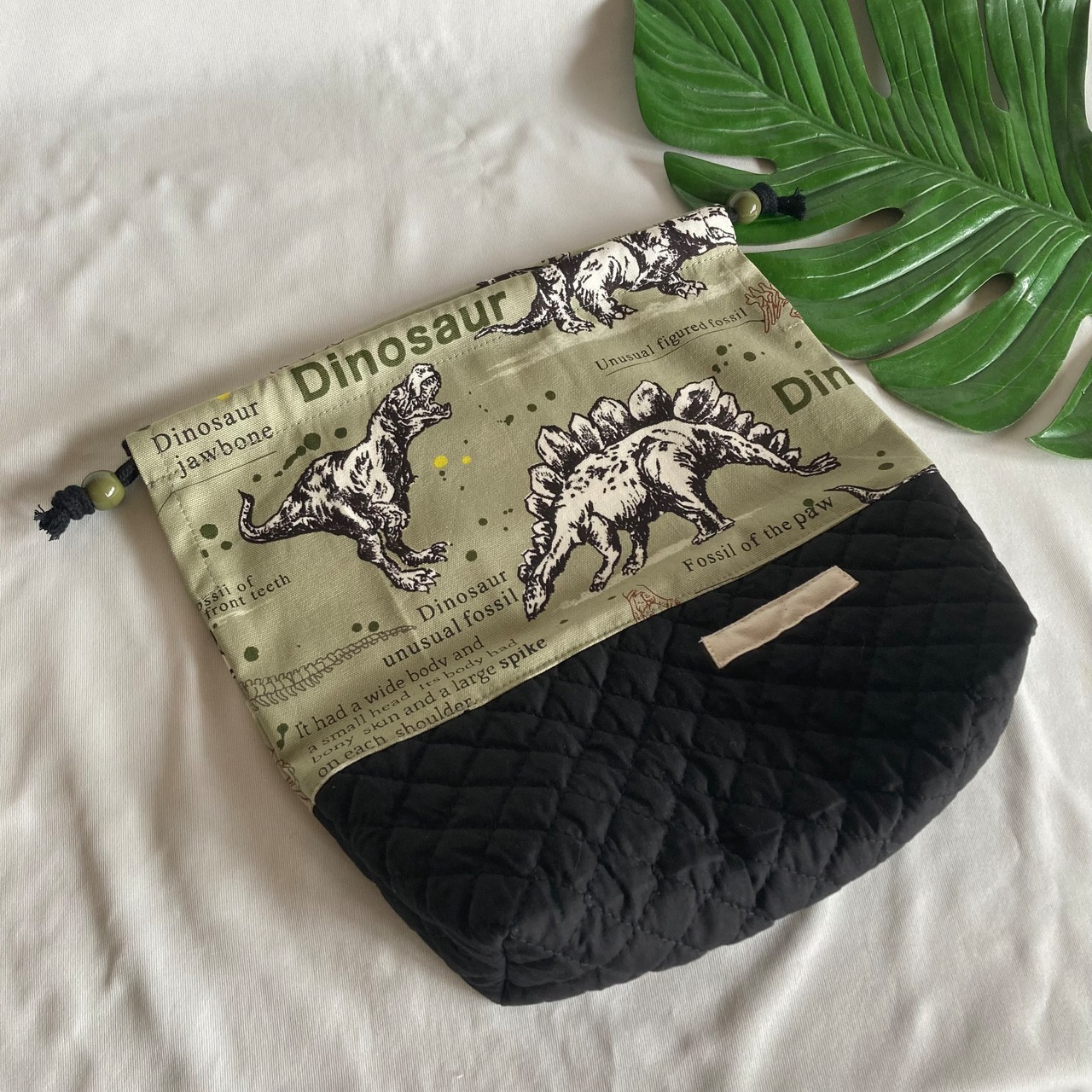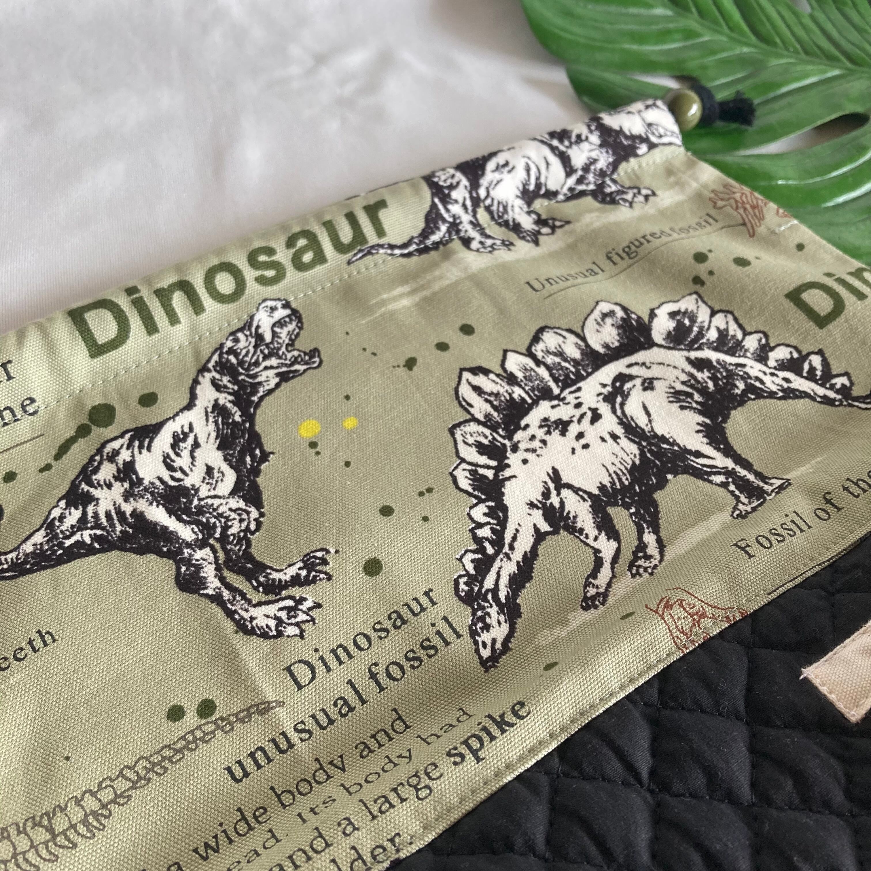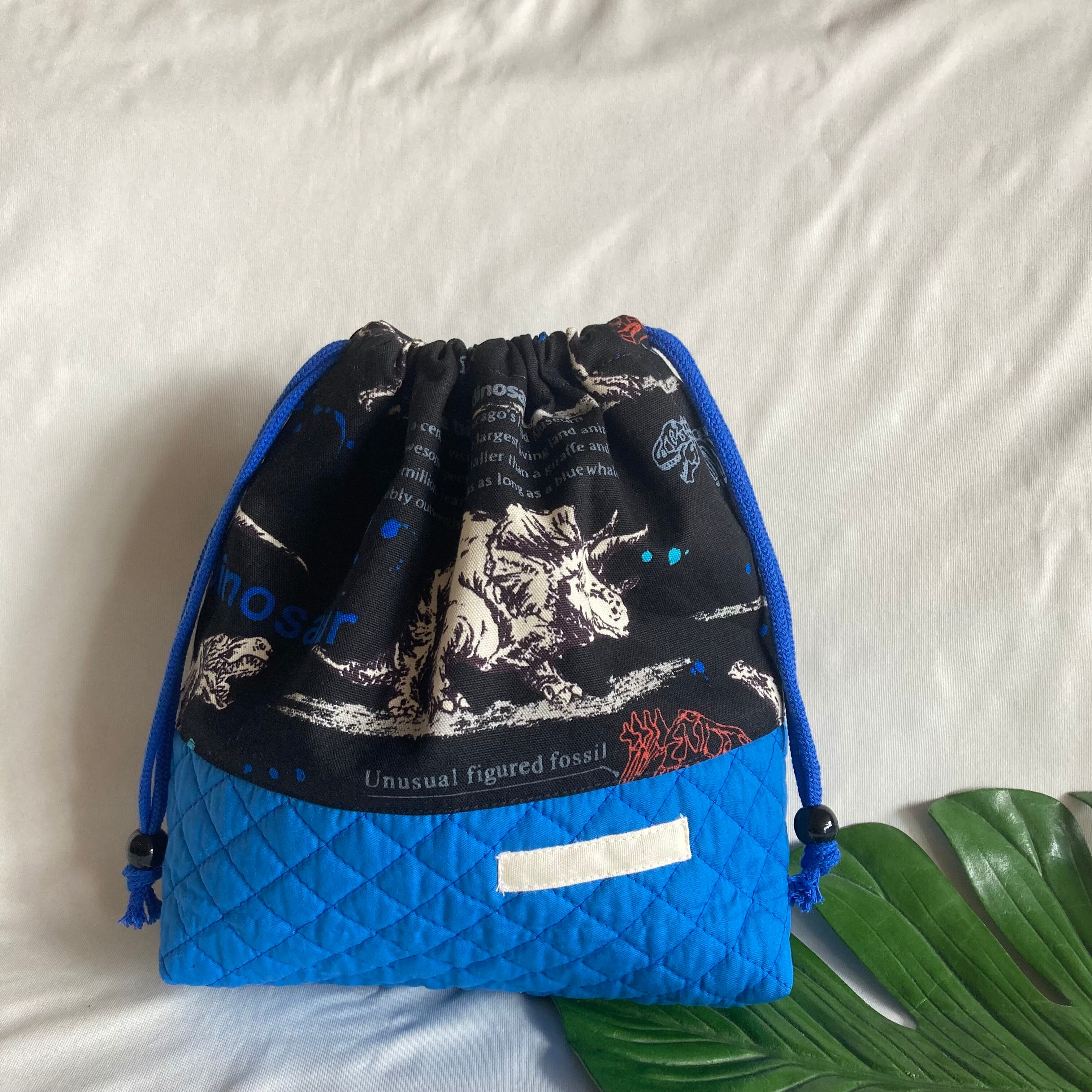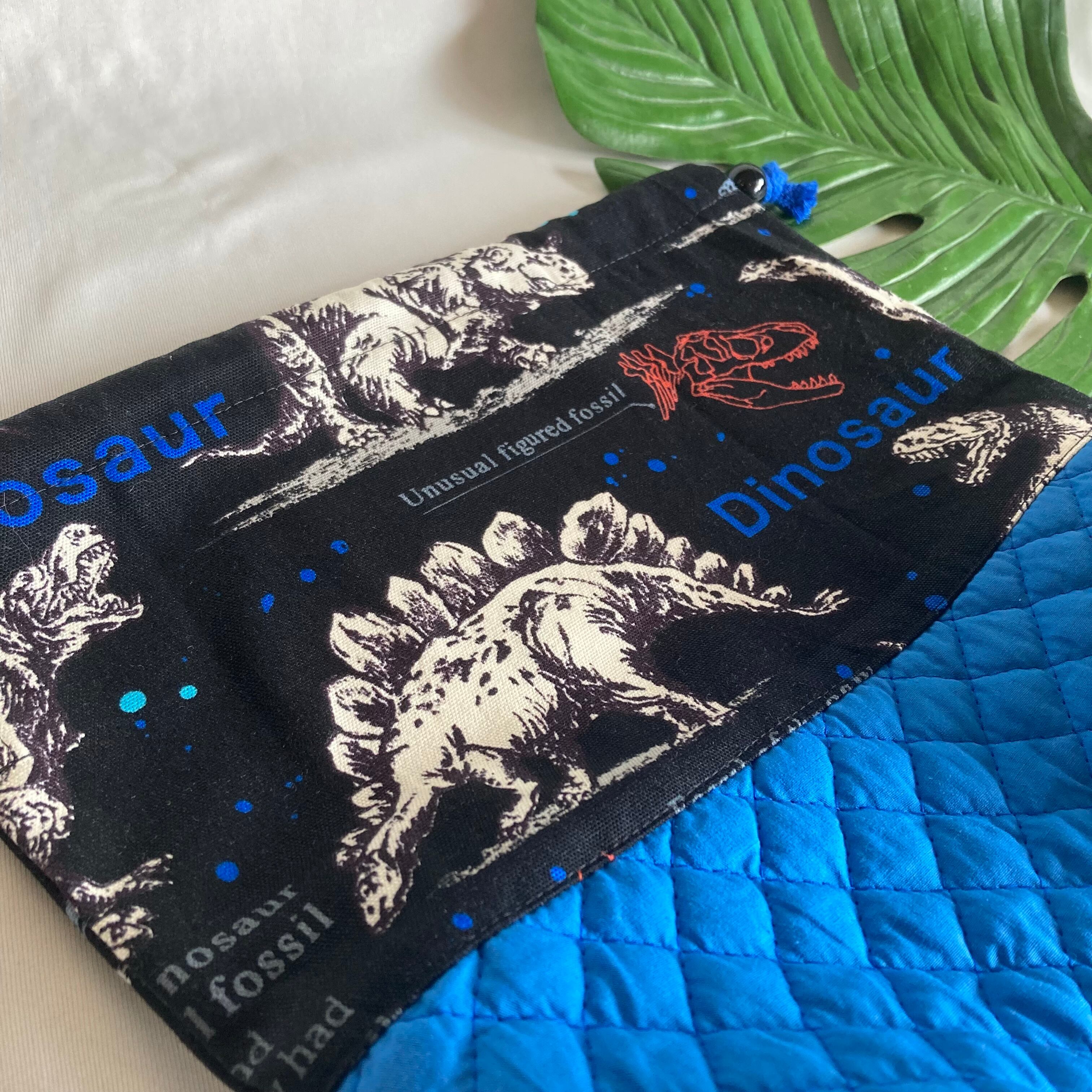 【オーダーOK】入園入学ランチバッグお弁当入れ巾着44迫力の恐竜化石ティラノサウルストリケラトプスアロサウルス★縫い付けお名前小学校キルティングマチ★ラッピングプレゼント誕生日クリスマス男の子小学校